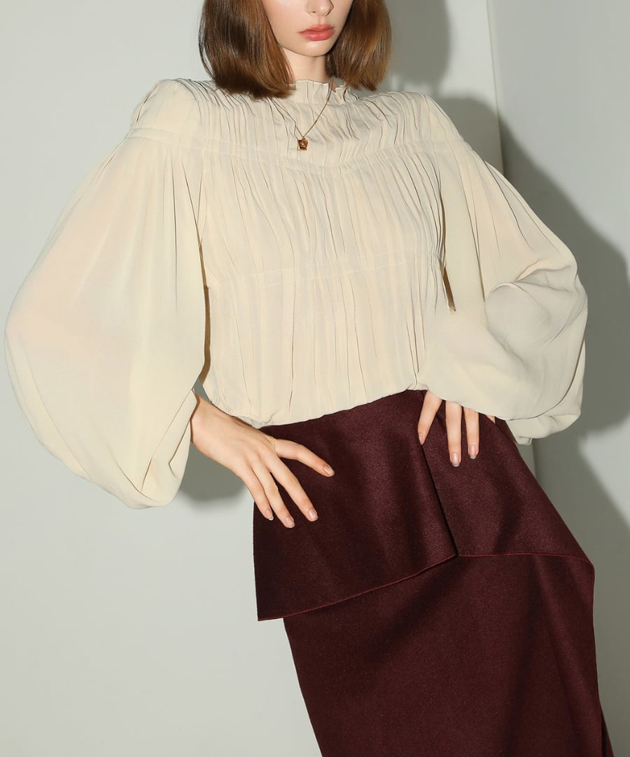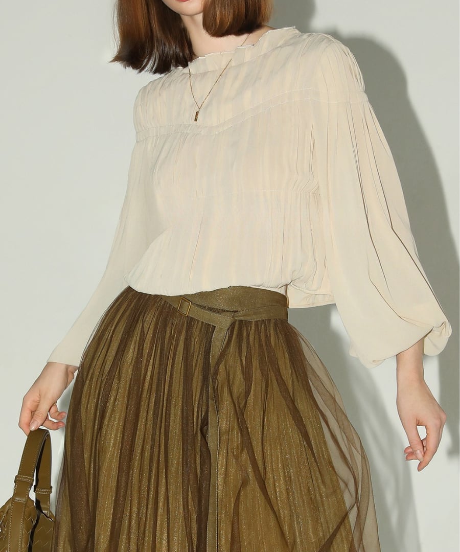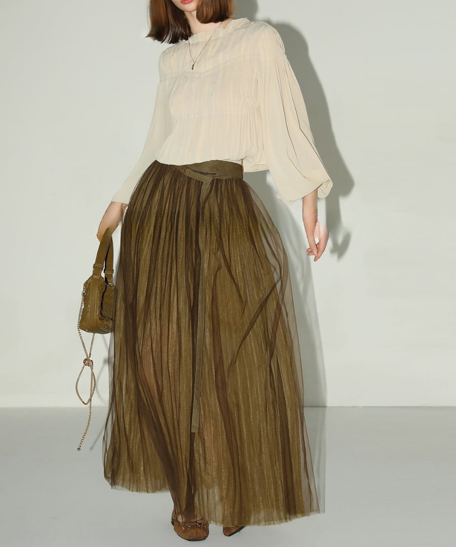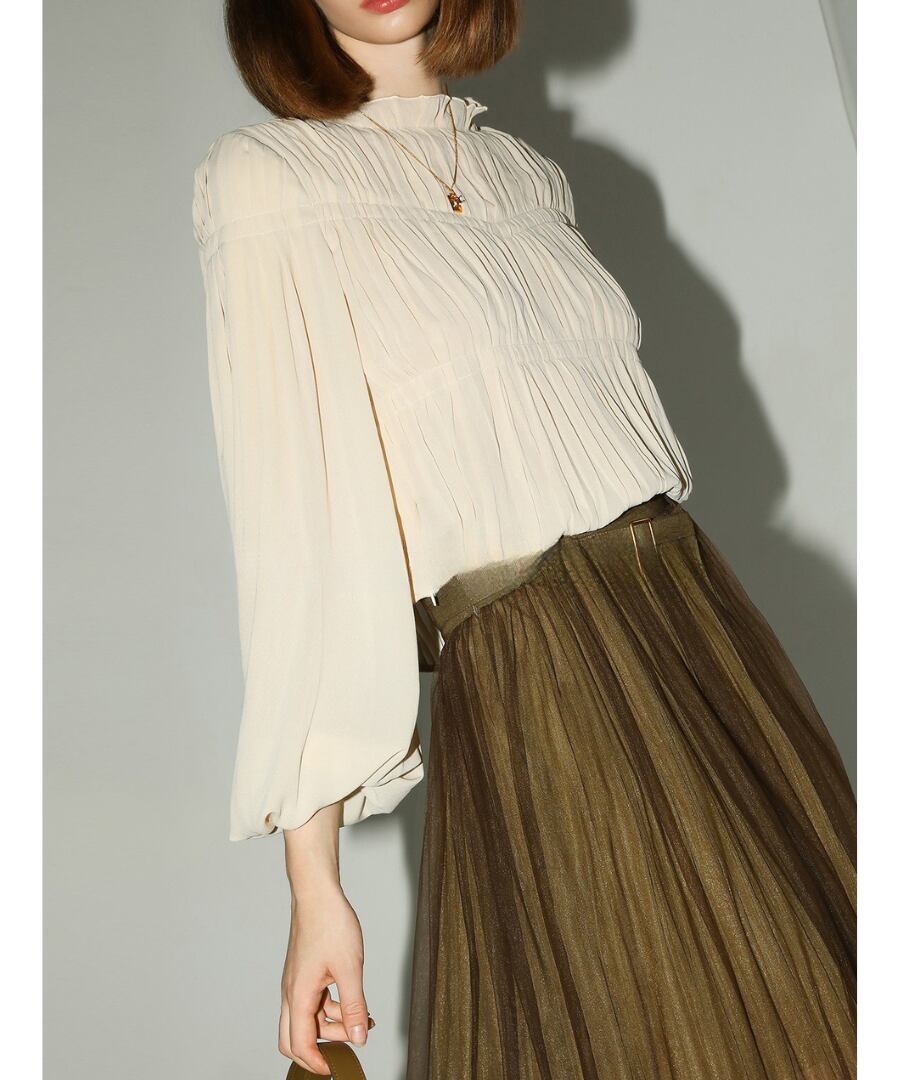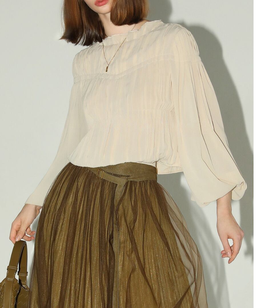 動くたびに表情豊かに揺れるプリーツが、上品さを演出します。