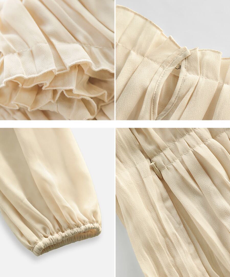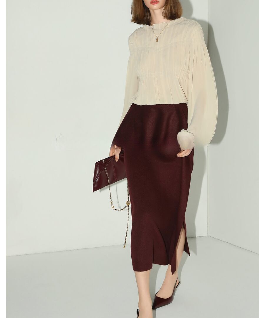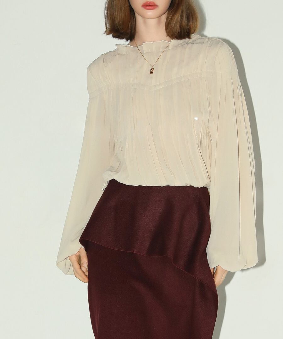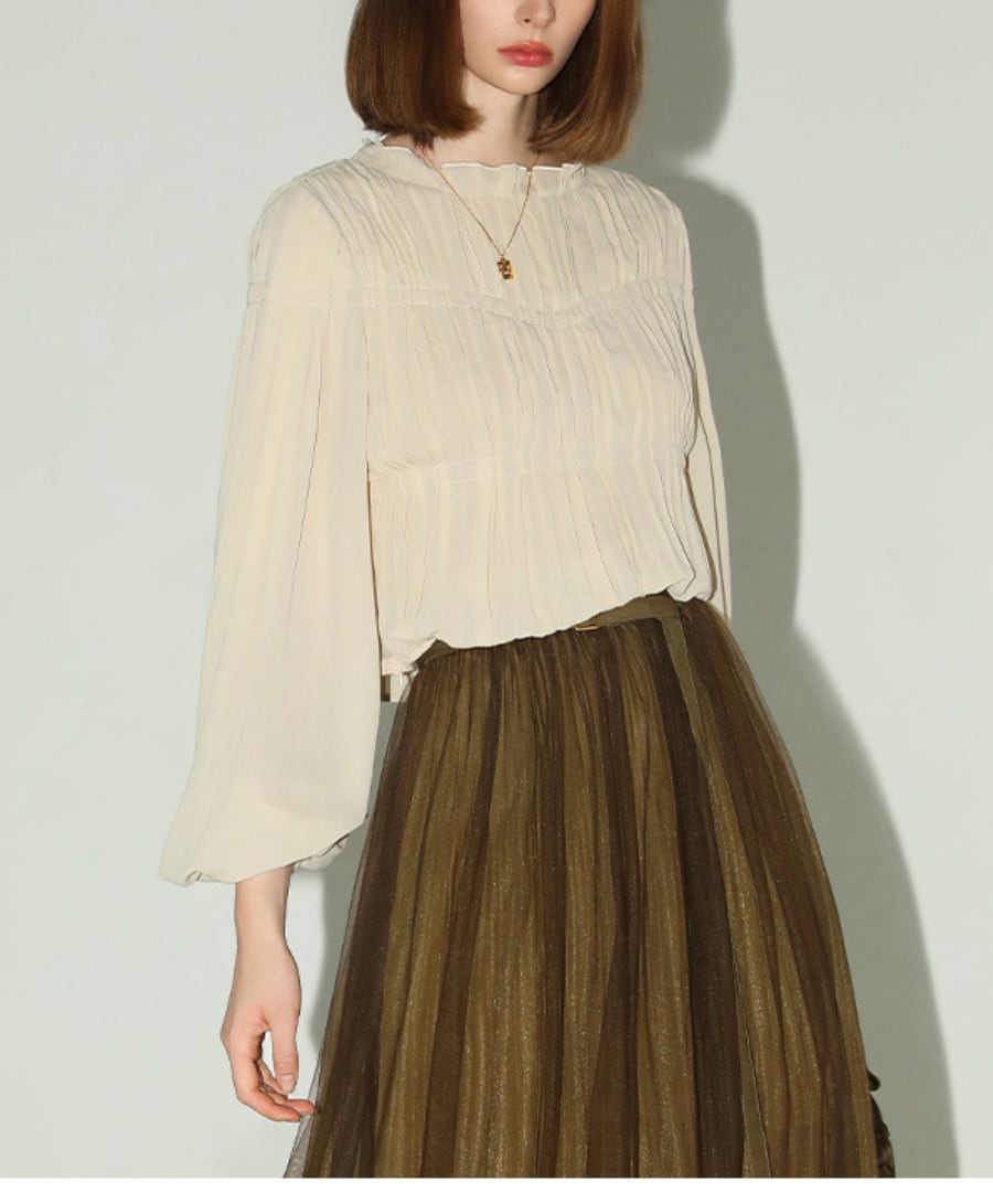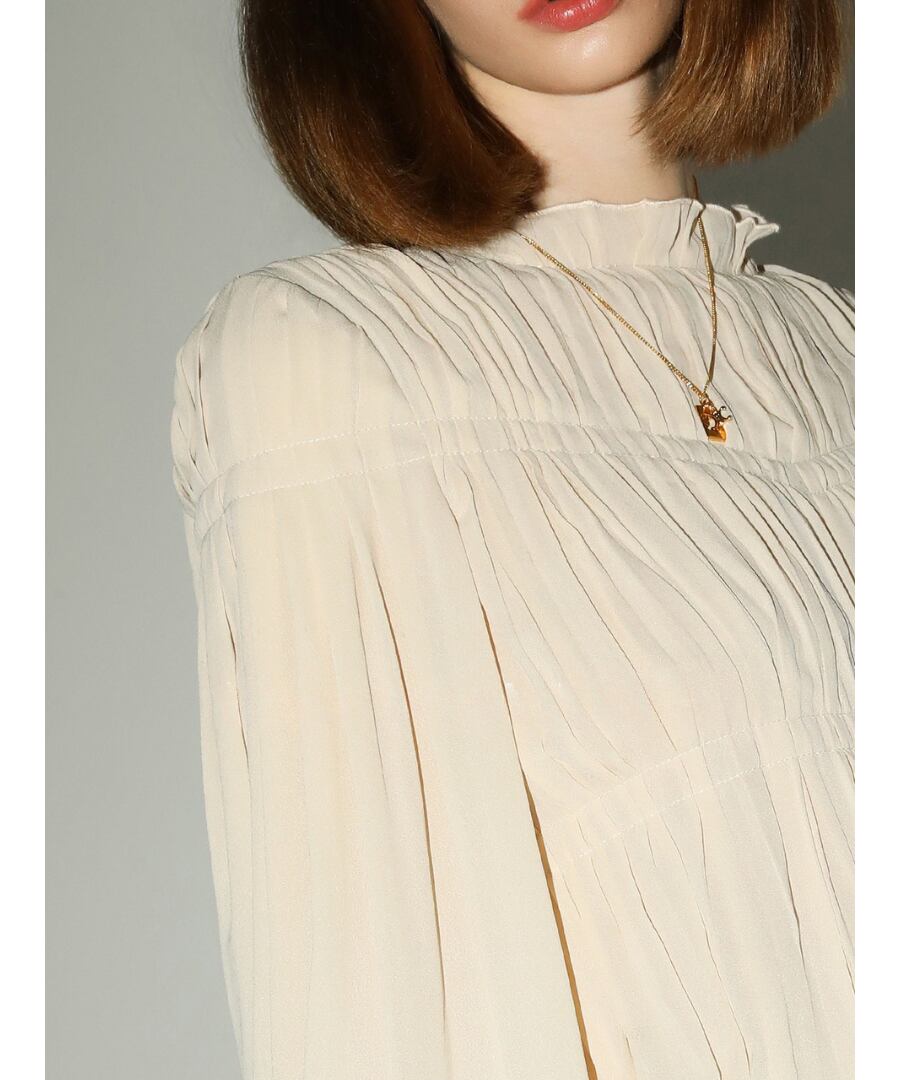 動くたびに表情豊かに揺れるプリーツが、上品さを演出します。