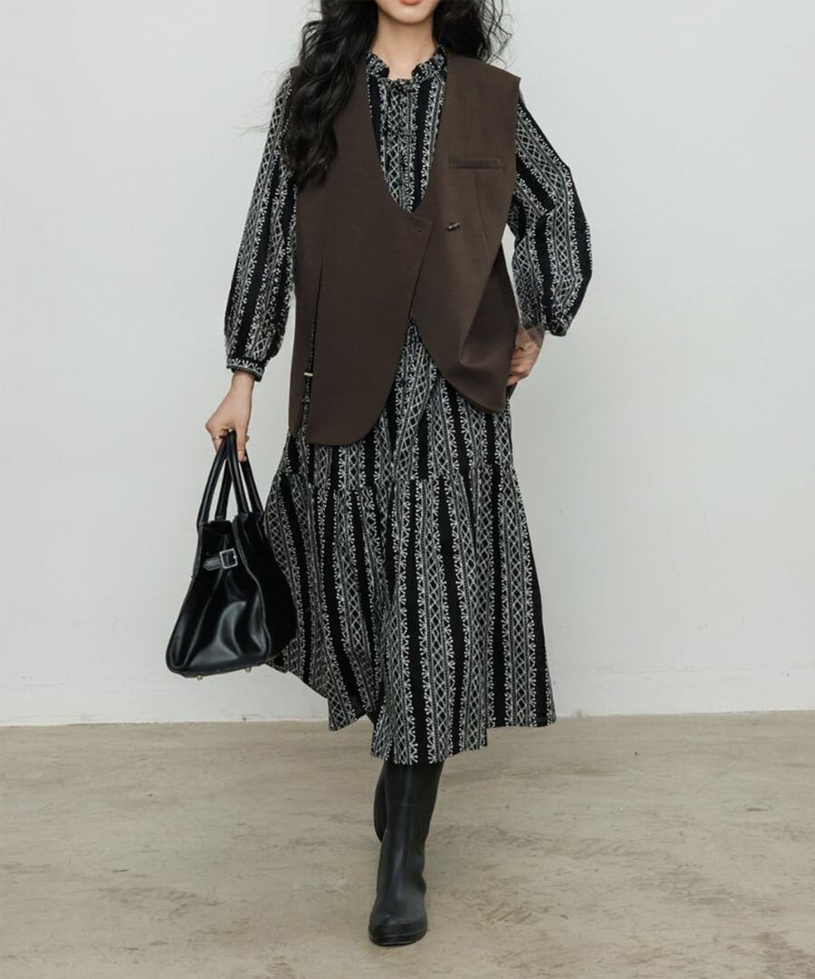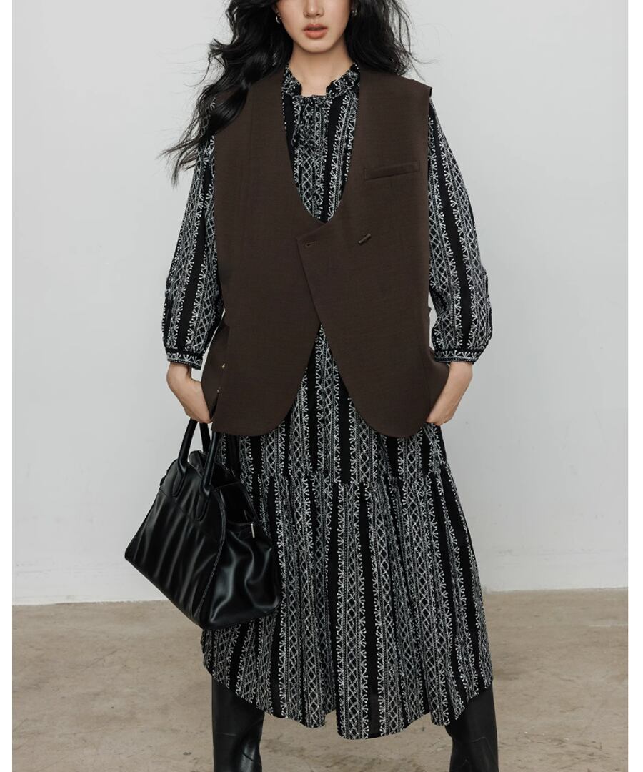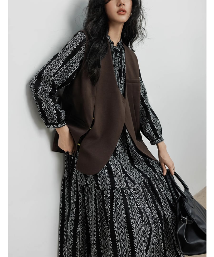 洗練されたVネックデザインのベスト。