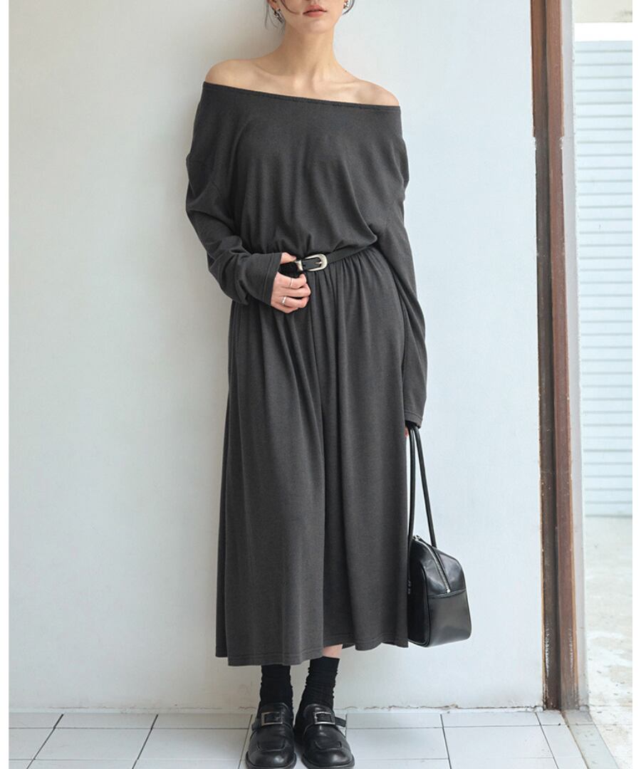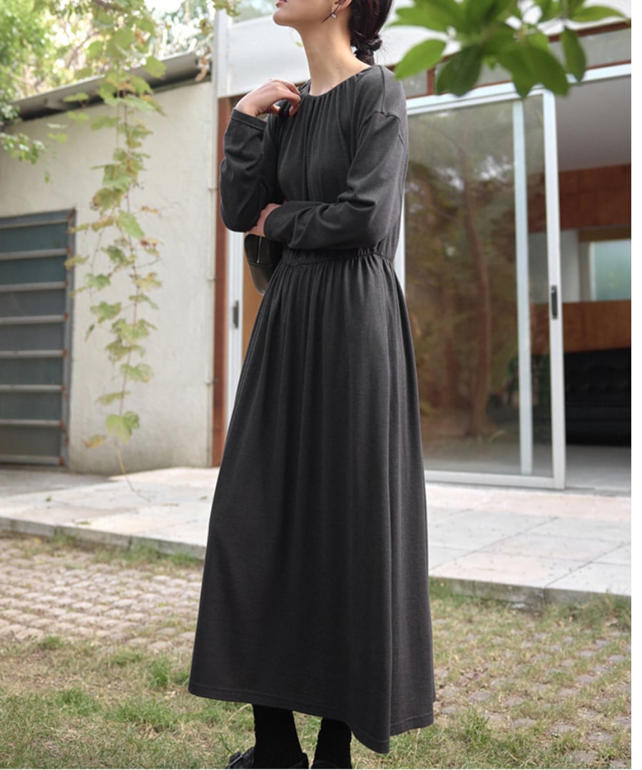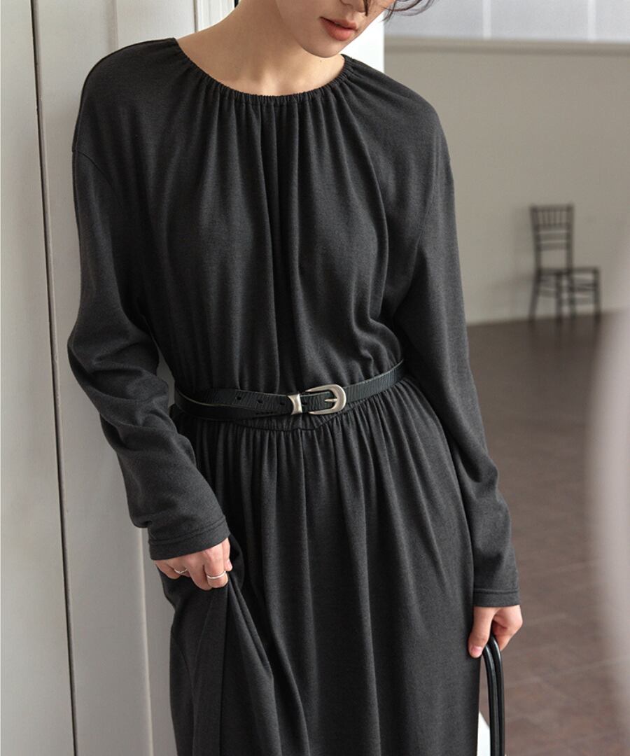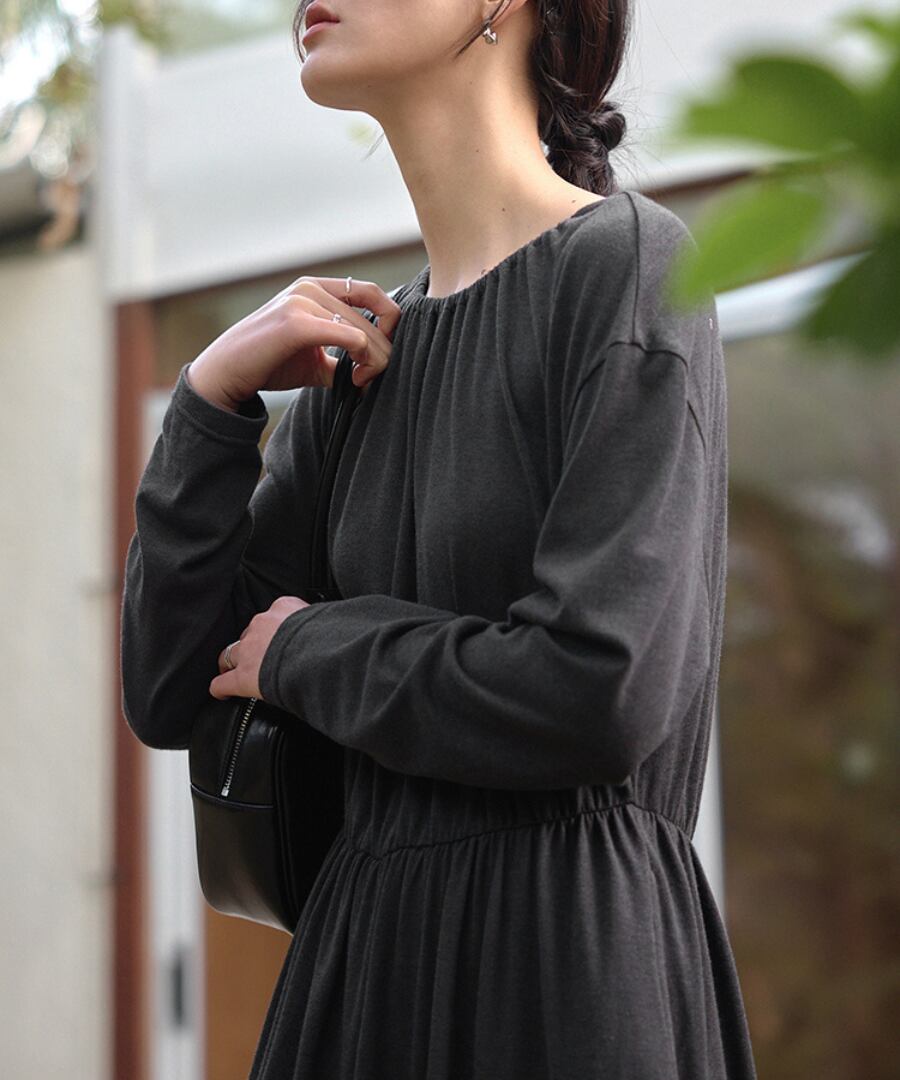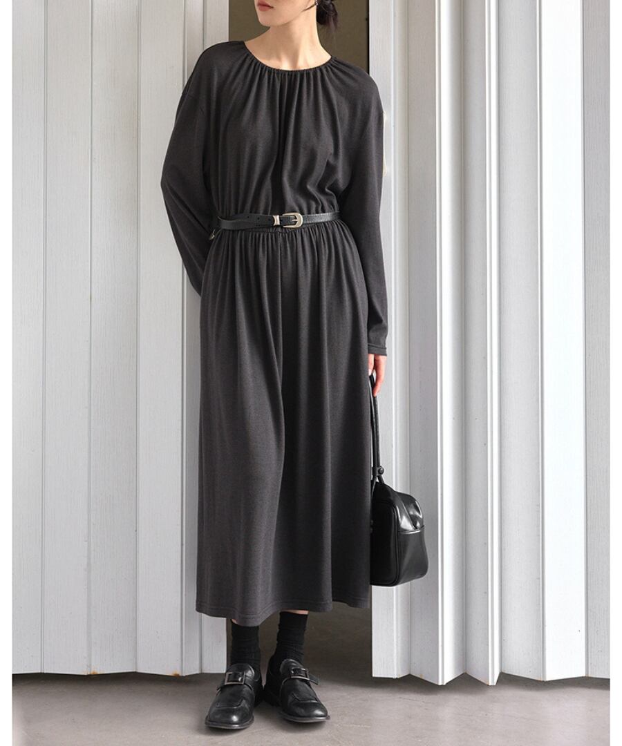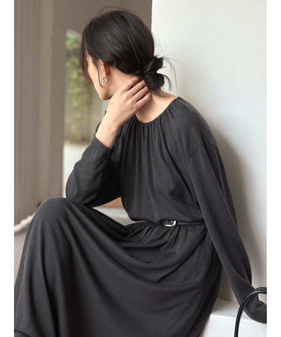 シルク混素材を使用した、ゆったりとしたシルエットのワンピース。