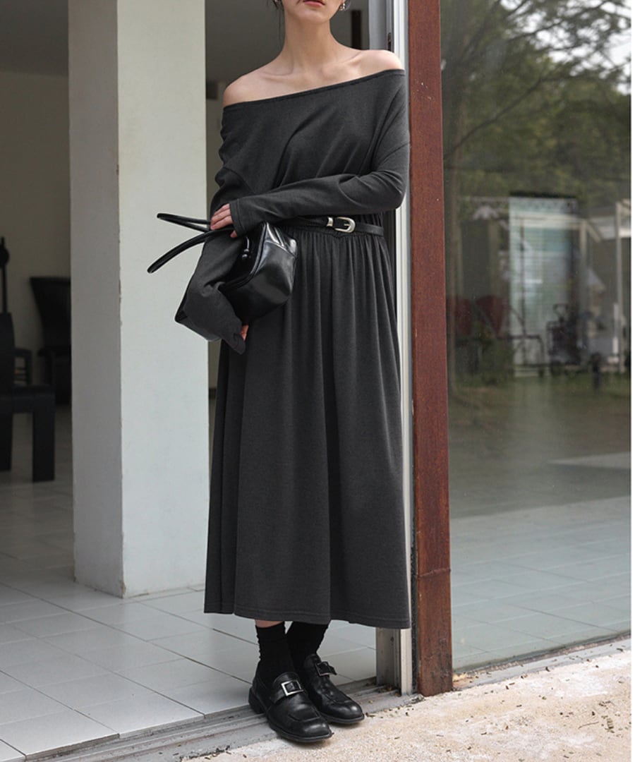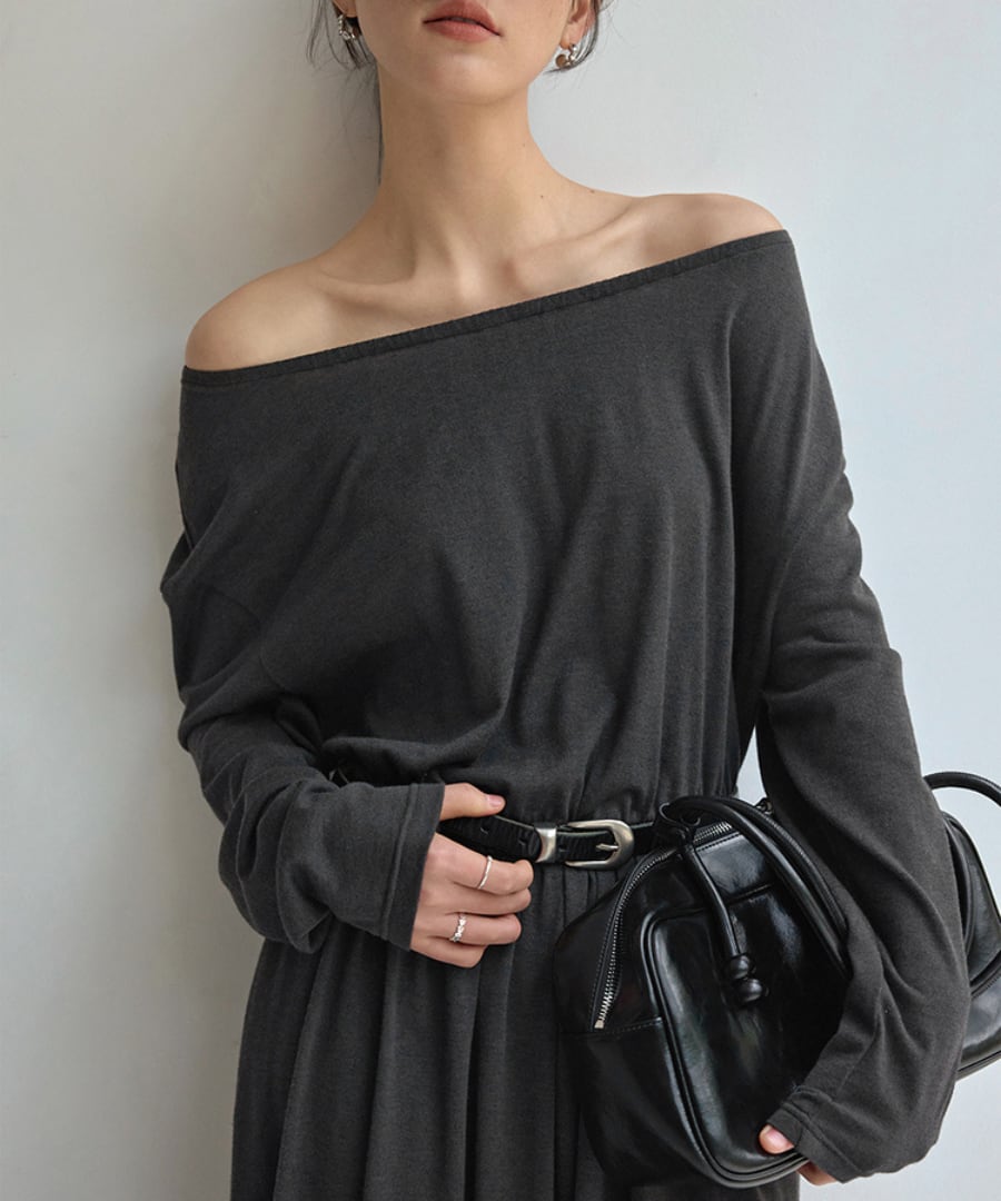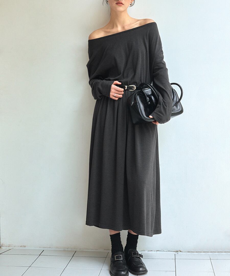 流れるようなラインが体型を美しく見せ、贅沢な素材使いが大人の女性にふさわしいエレガントさを演出。