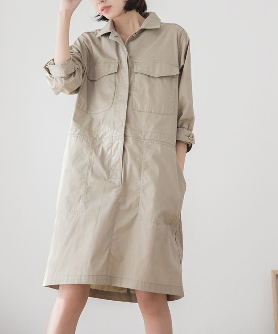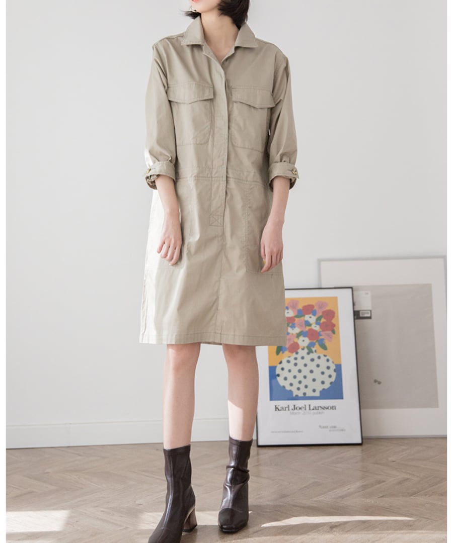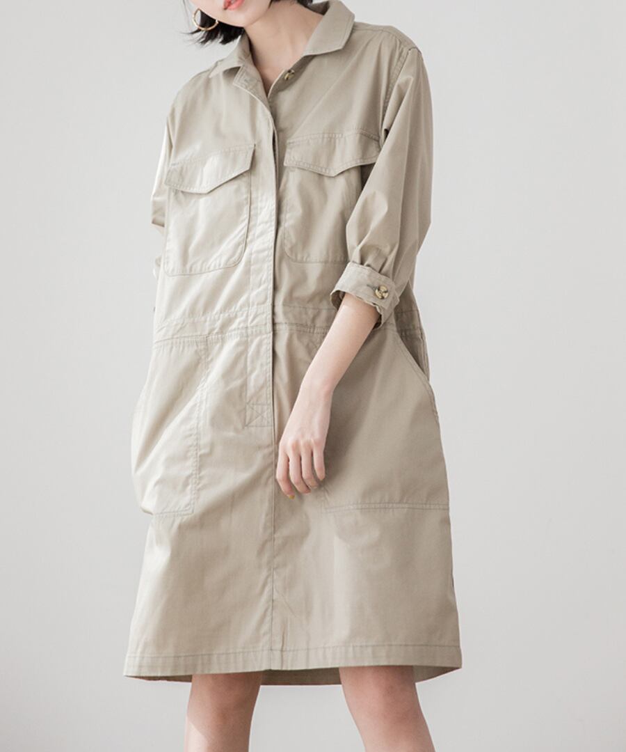 カジュアルながらも、力強さを感じさせるミリタリーシャツワンピース。