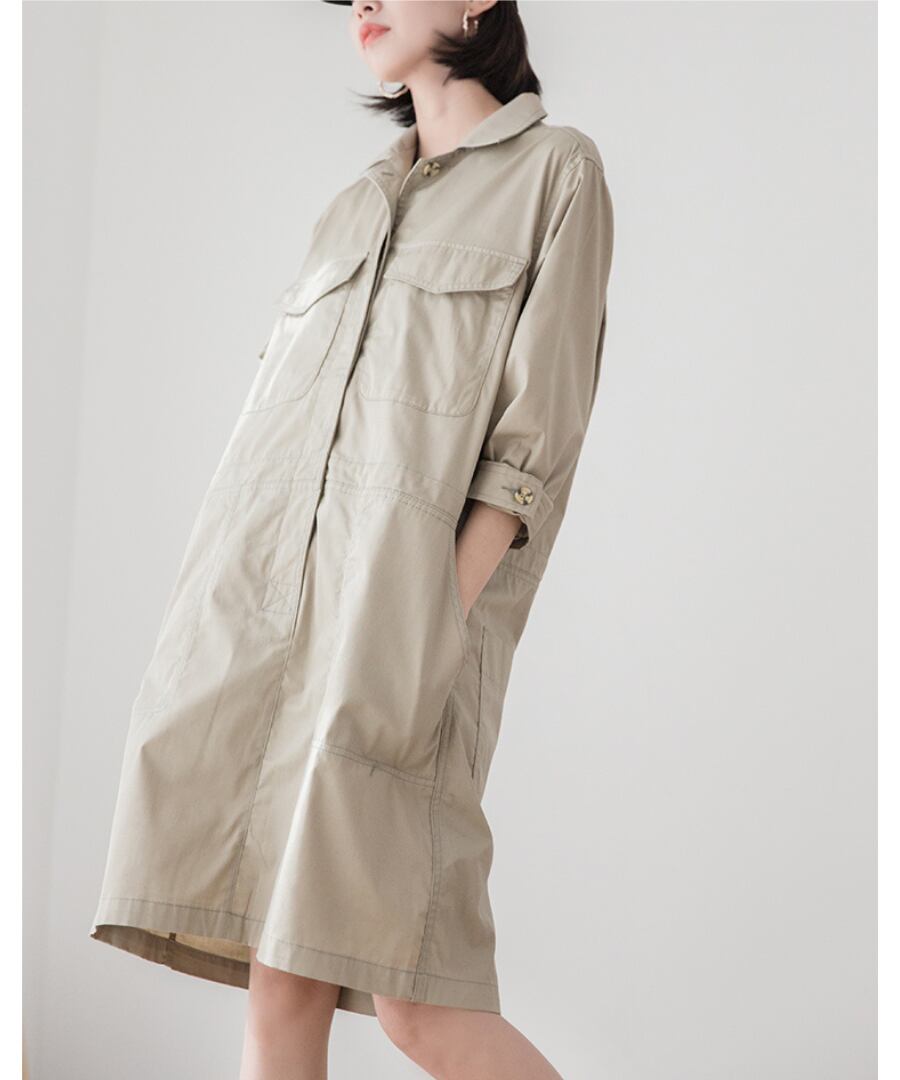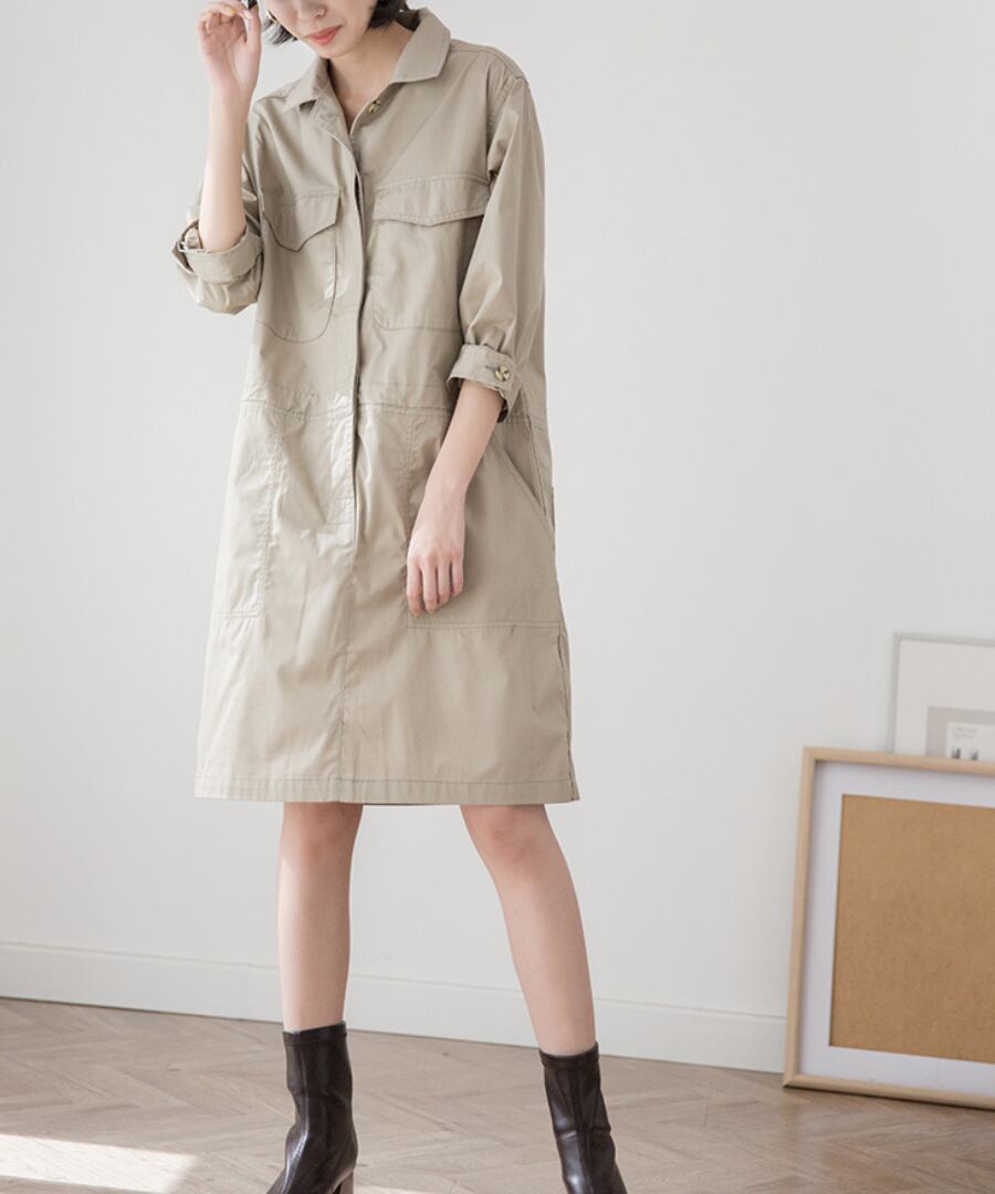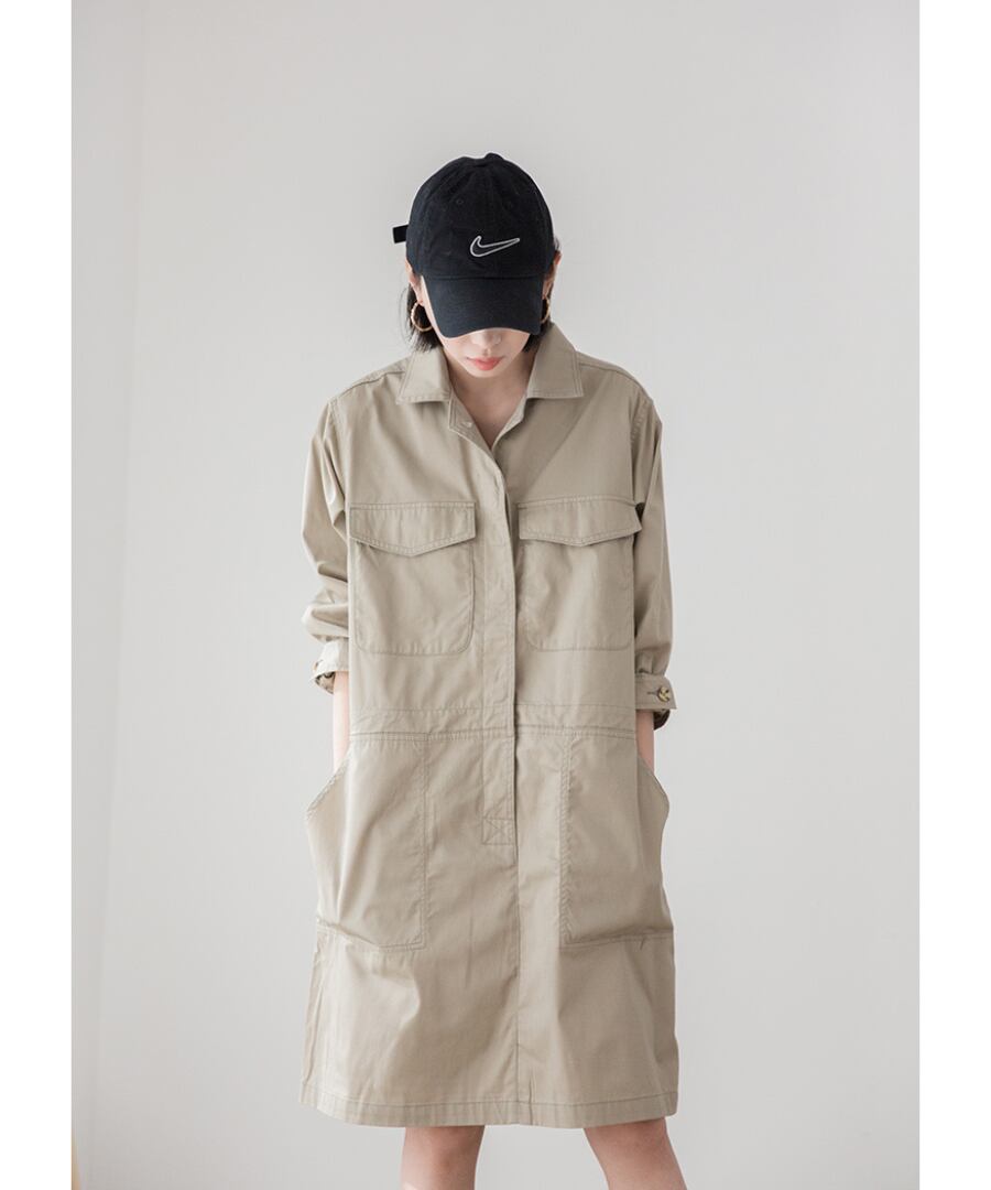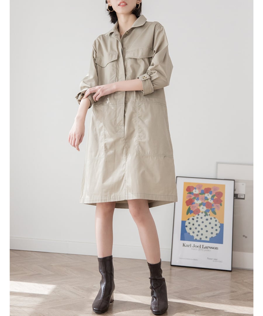 カジュアルながらも、力強さを感じさせるミリタリーシャツワンピース。