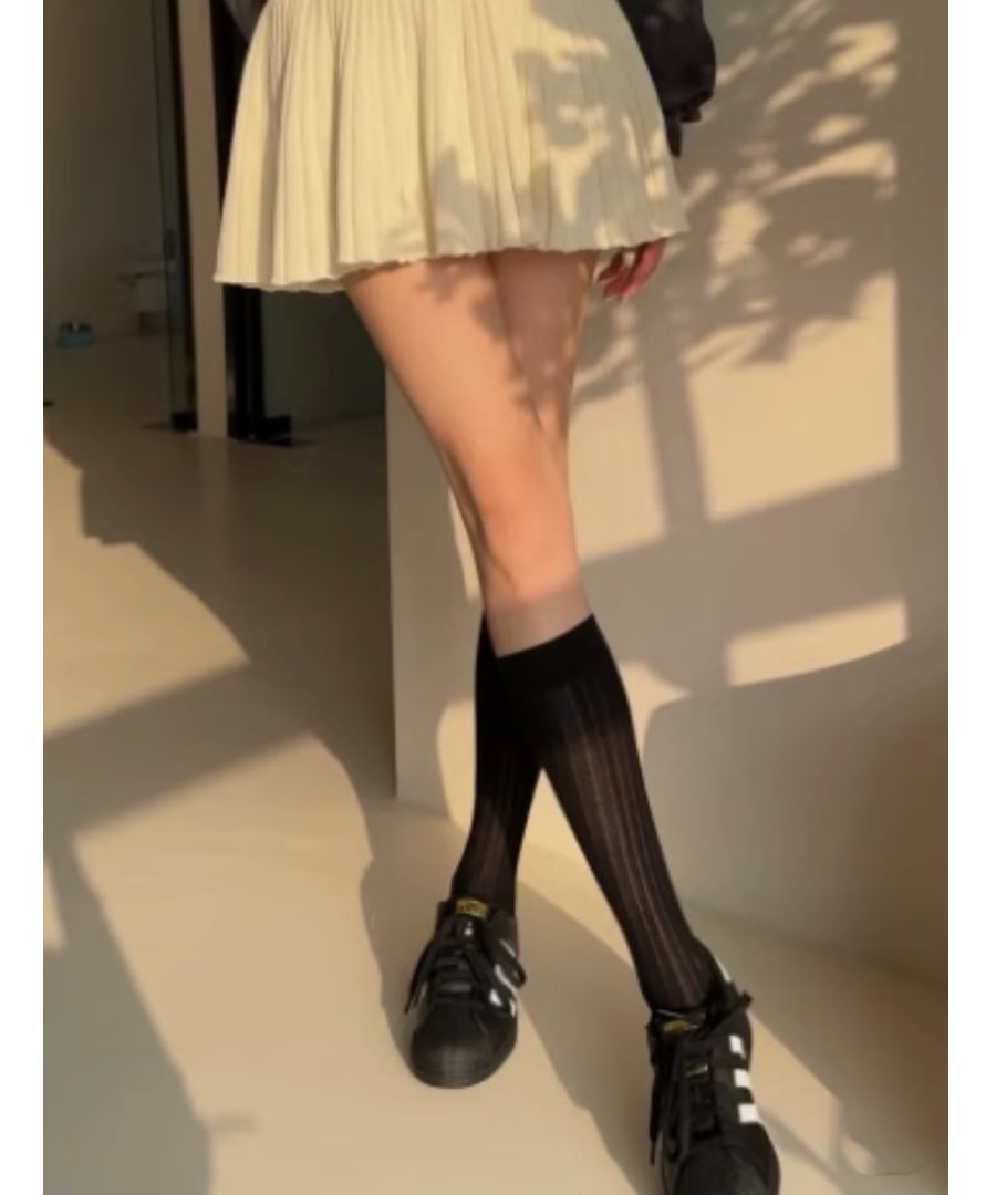 スタイリッシュで軽やかな印象のシアーリブハイソックス。