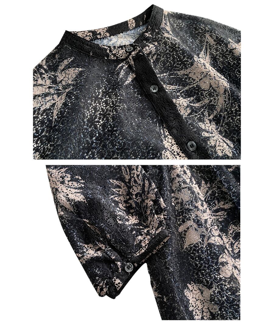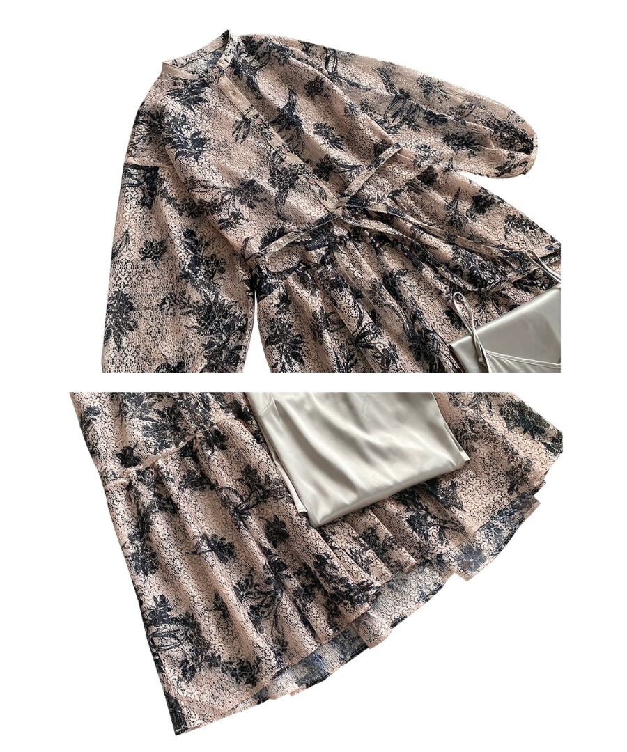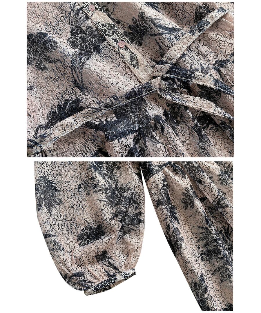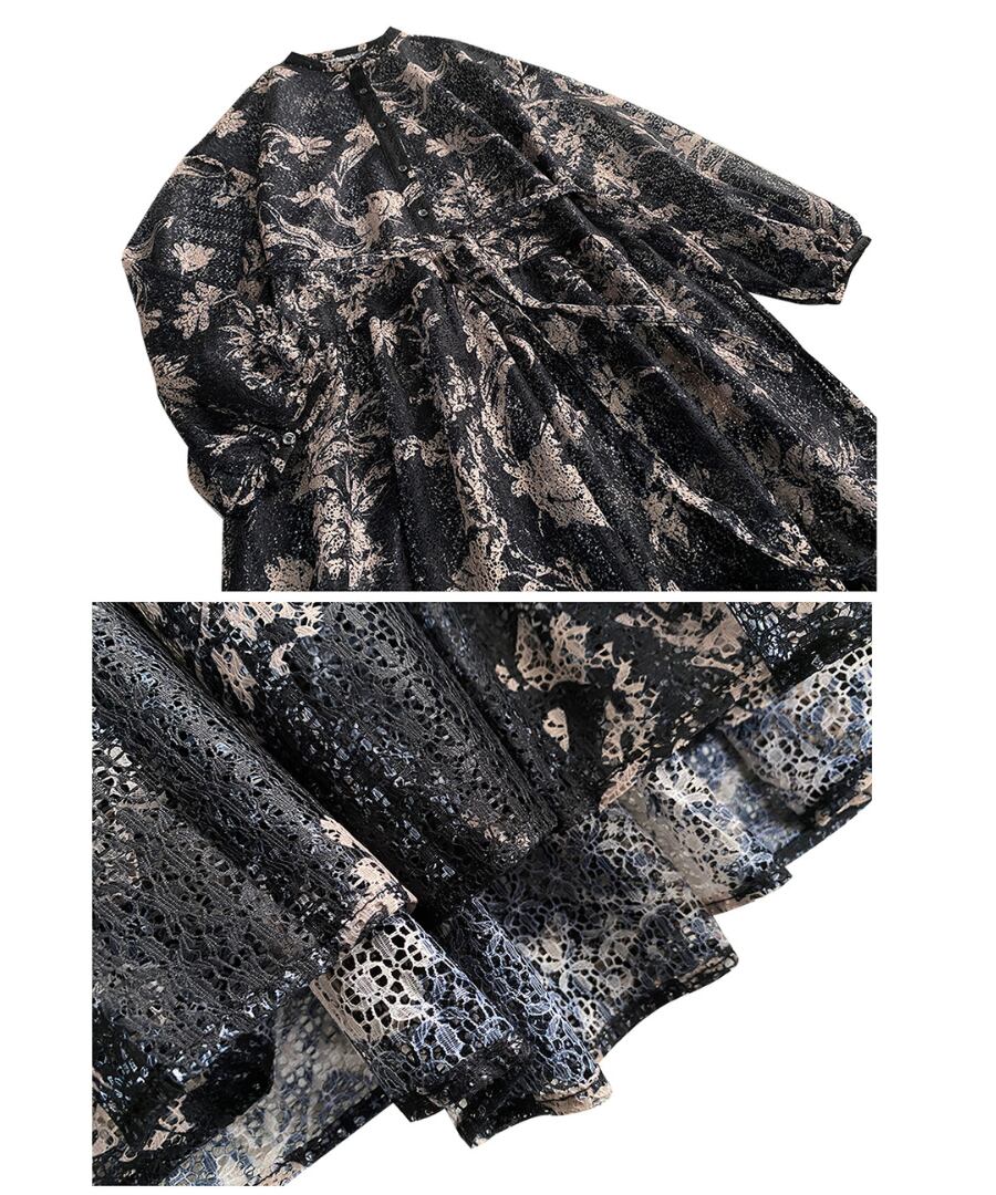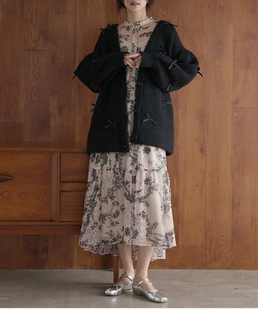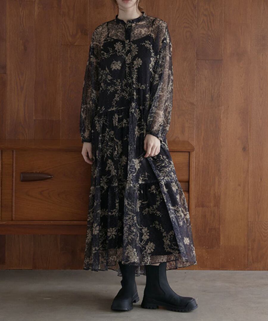 美しいリーフプリントと繊細なレースが大人の魅力を引き立てるワンピース。