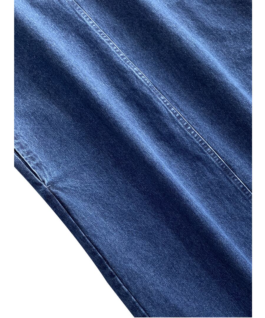 デニム素材のカジュアルさと、上品なシルエットが絶妙にミックスされ、スタイルを選ばずさまざまなシーンで活躍します。