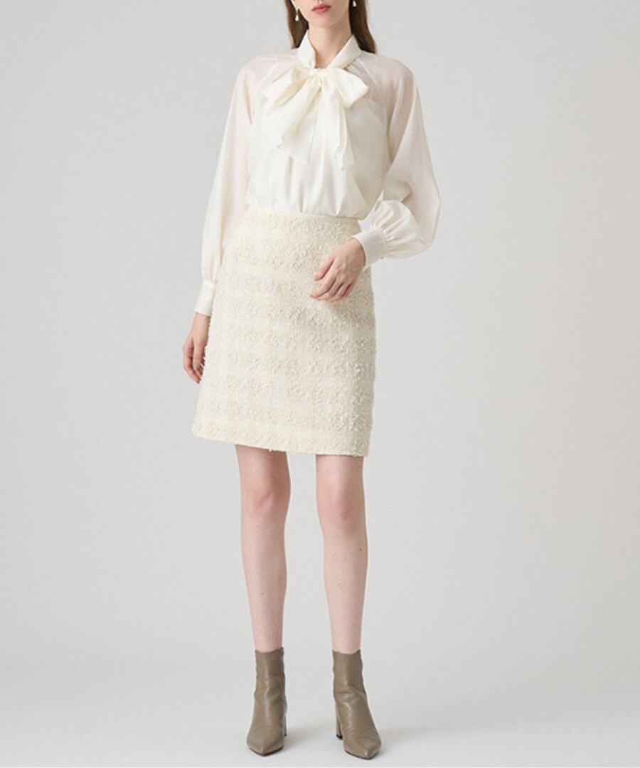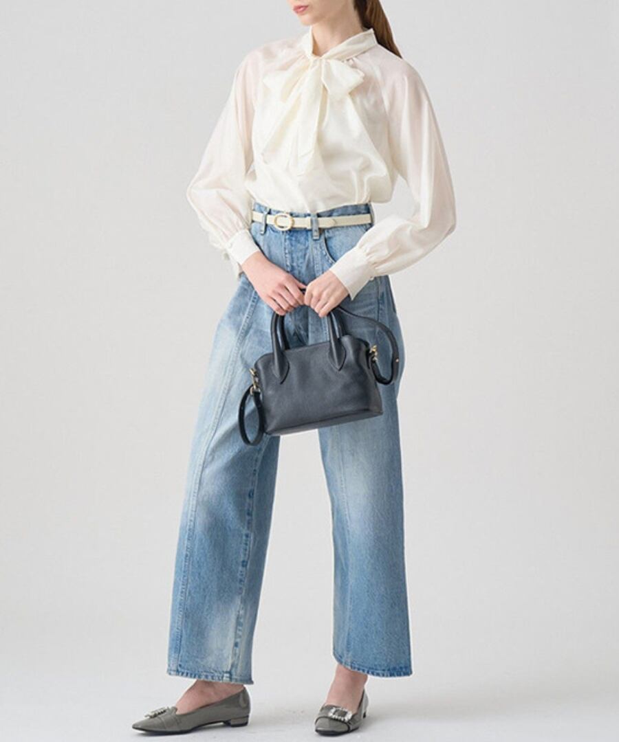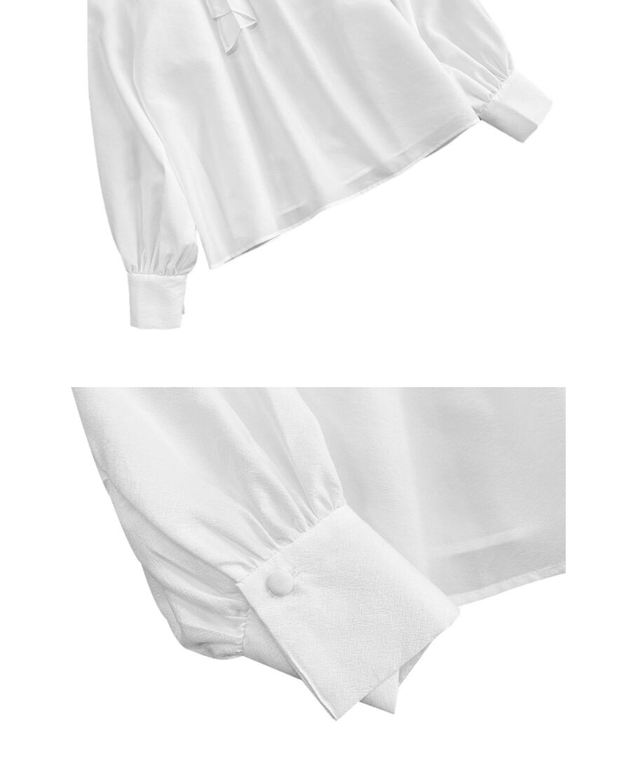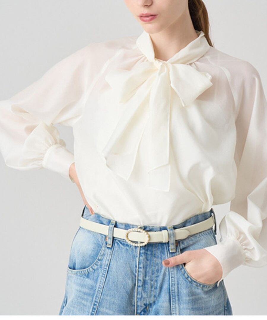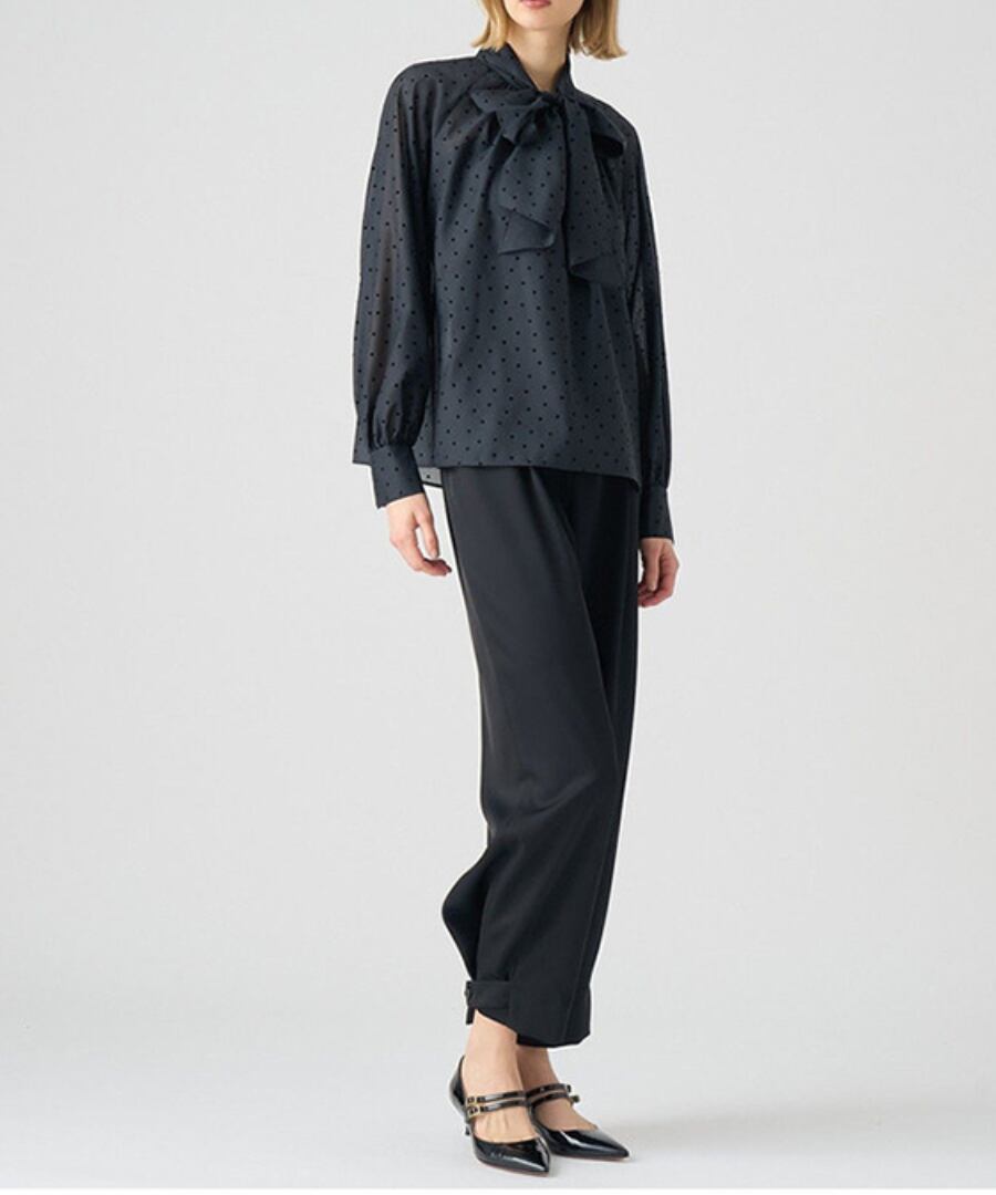 程よいボリュームのスリーブとエレガントなリボンタイがポイントです。