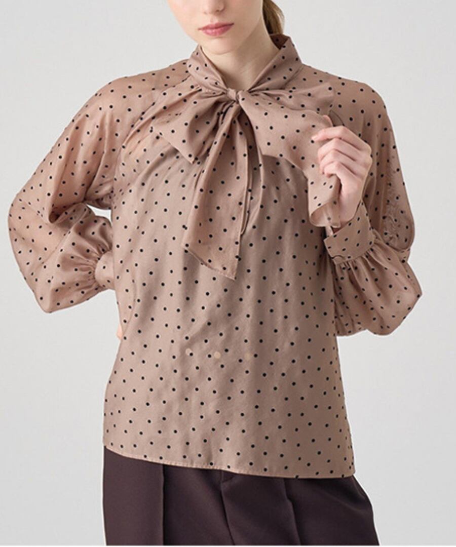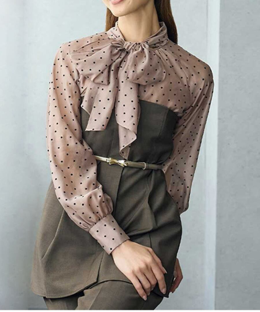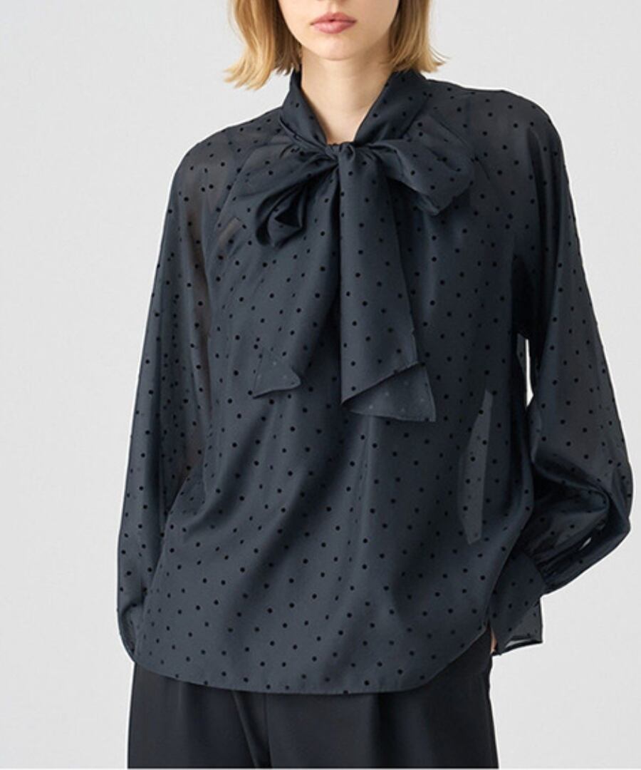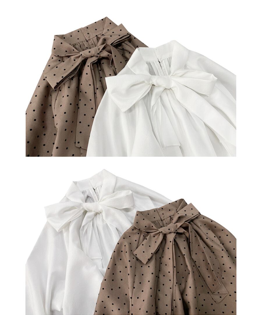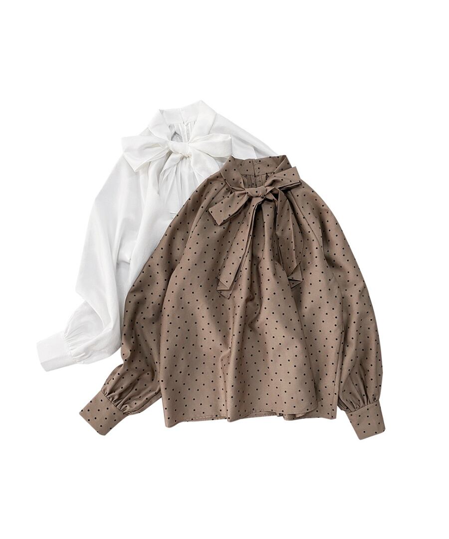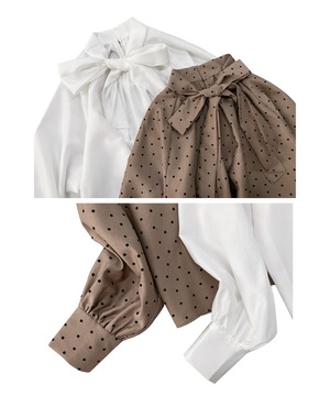 ドット柄◆リボンタイブラウス・3color【t-11131】