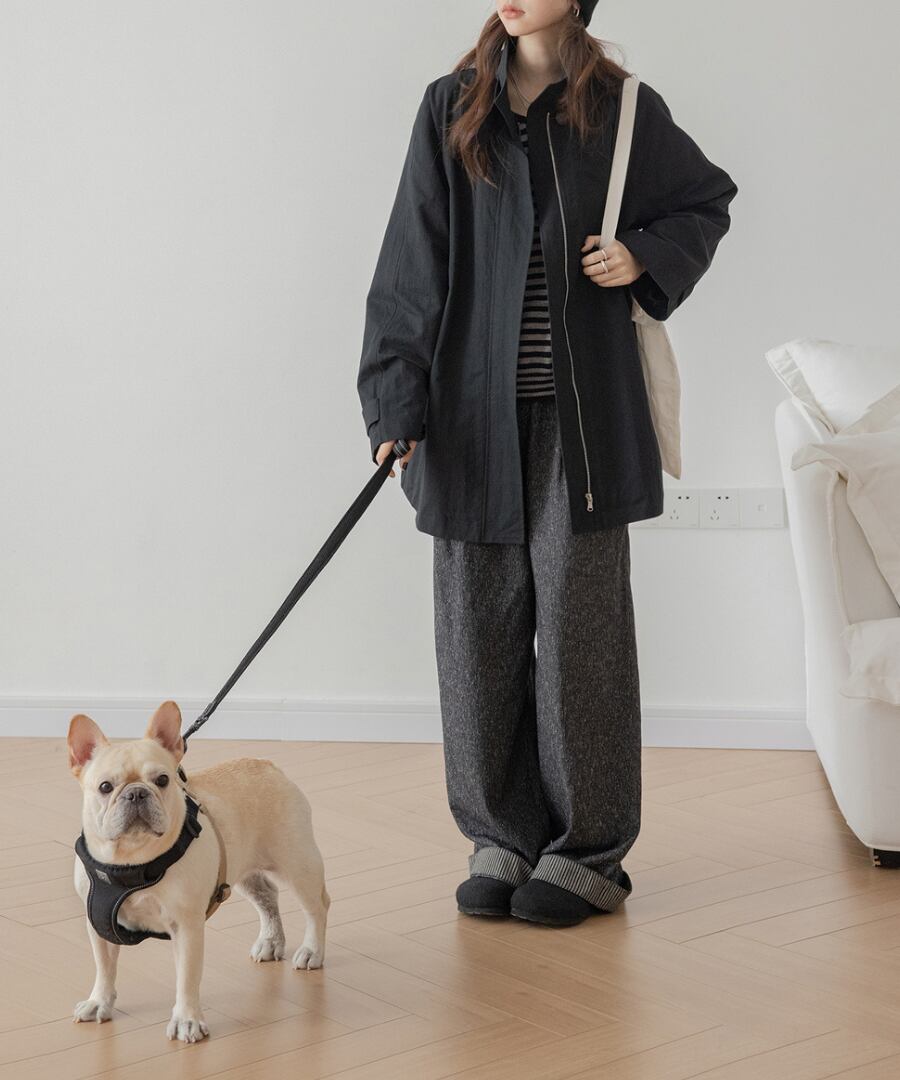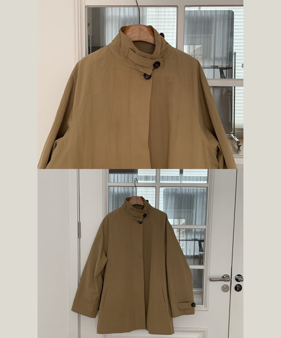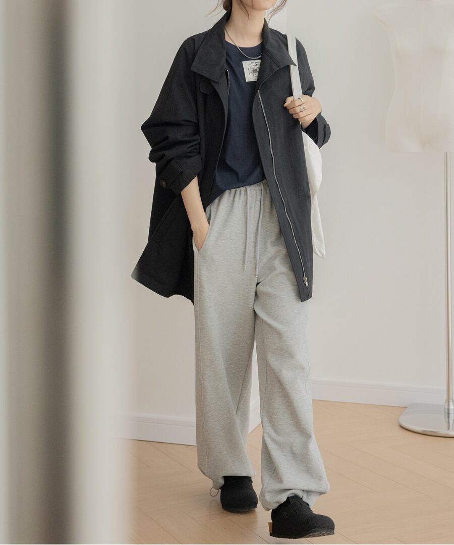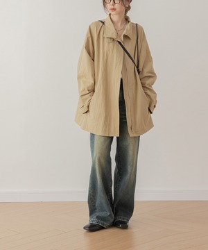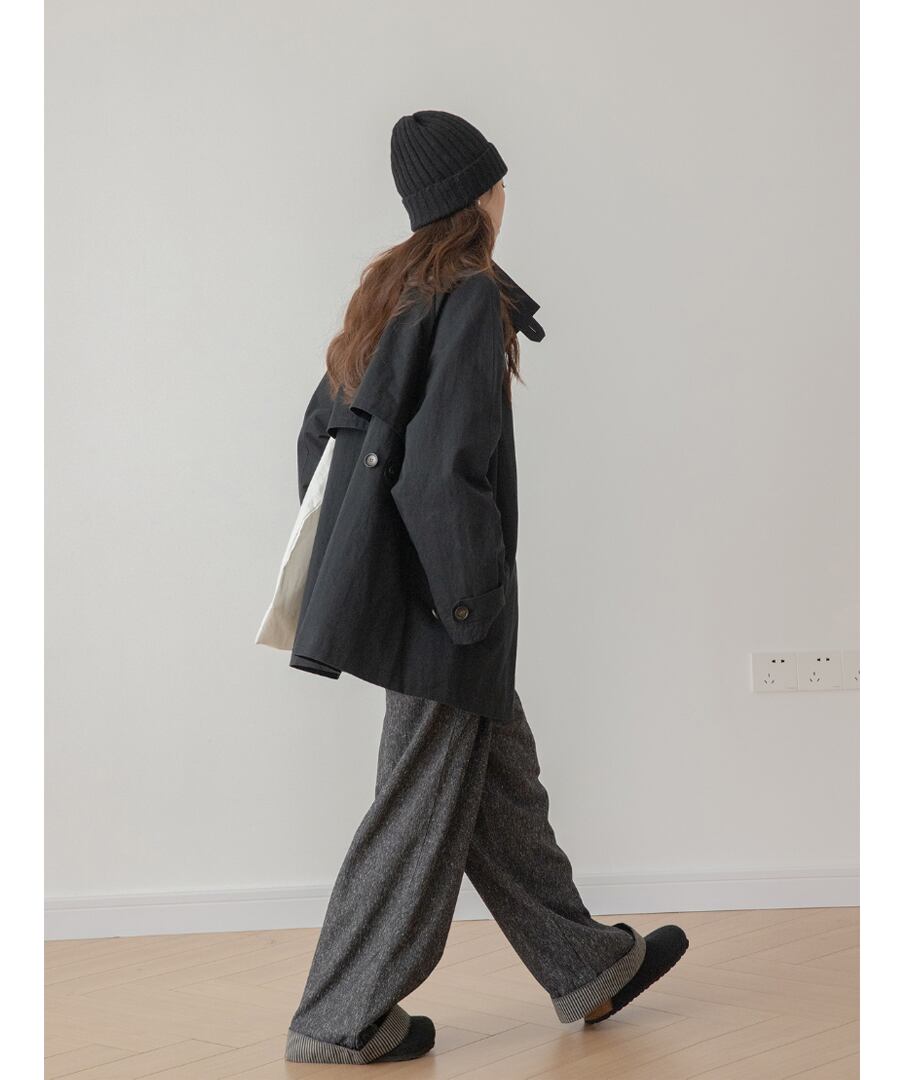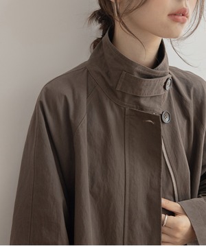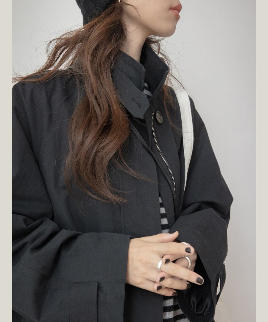 さりげないトレンチディテールが、シンプルながらも洗練された雰囲気を醸し出します。