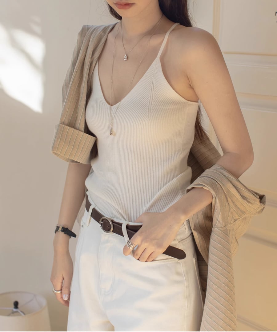 肩周りの開放感が心地よく、着心地の良さとデザイン性を兼ね備えたタンクトップ。