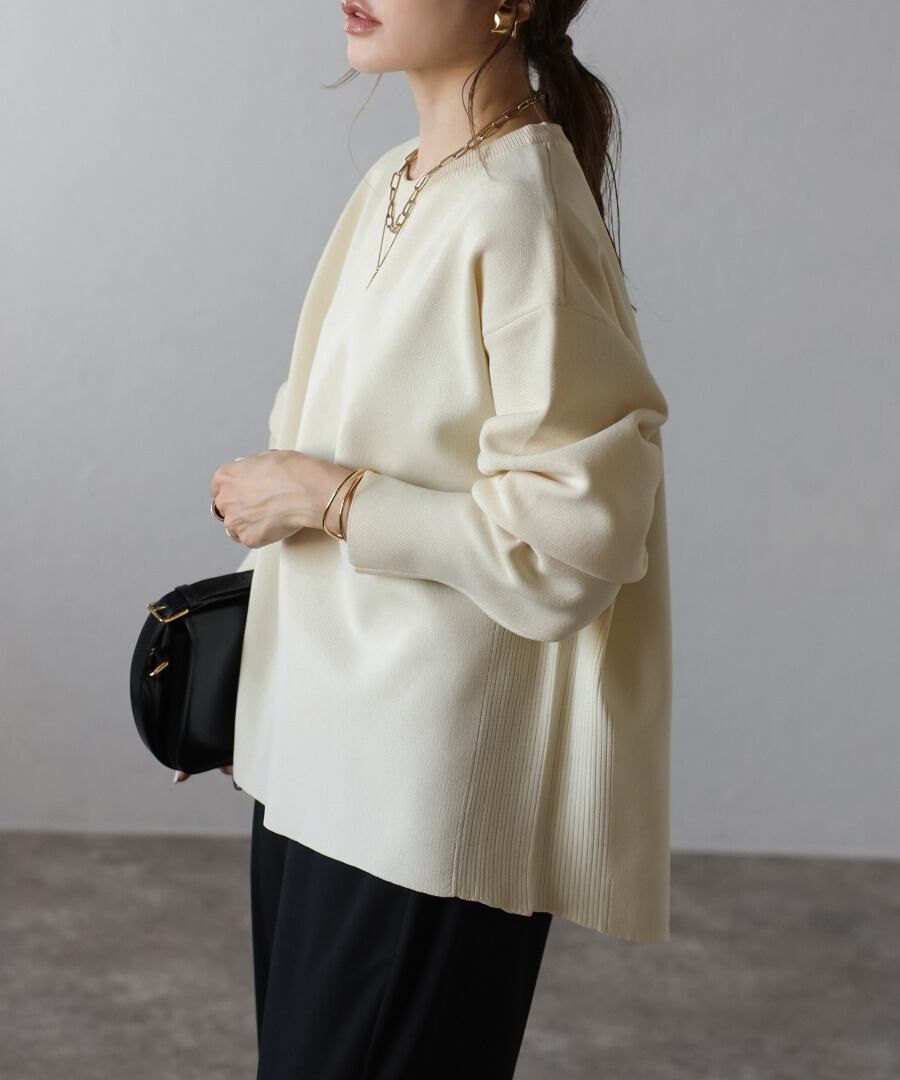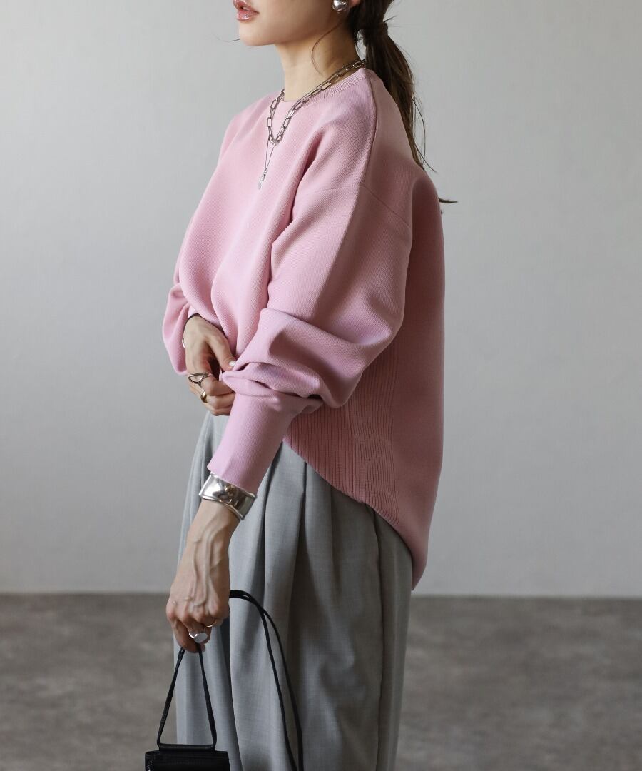 バレルスリーブサイドリブニットプルオーバー【t-11209】.