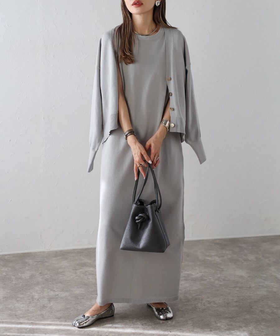 柔らかな肌触りのニット素材を使用したセットアイテム。
