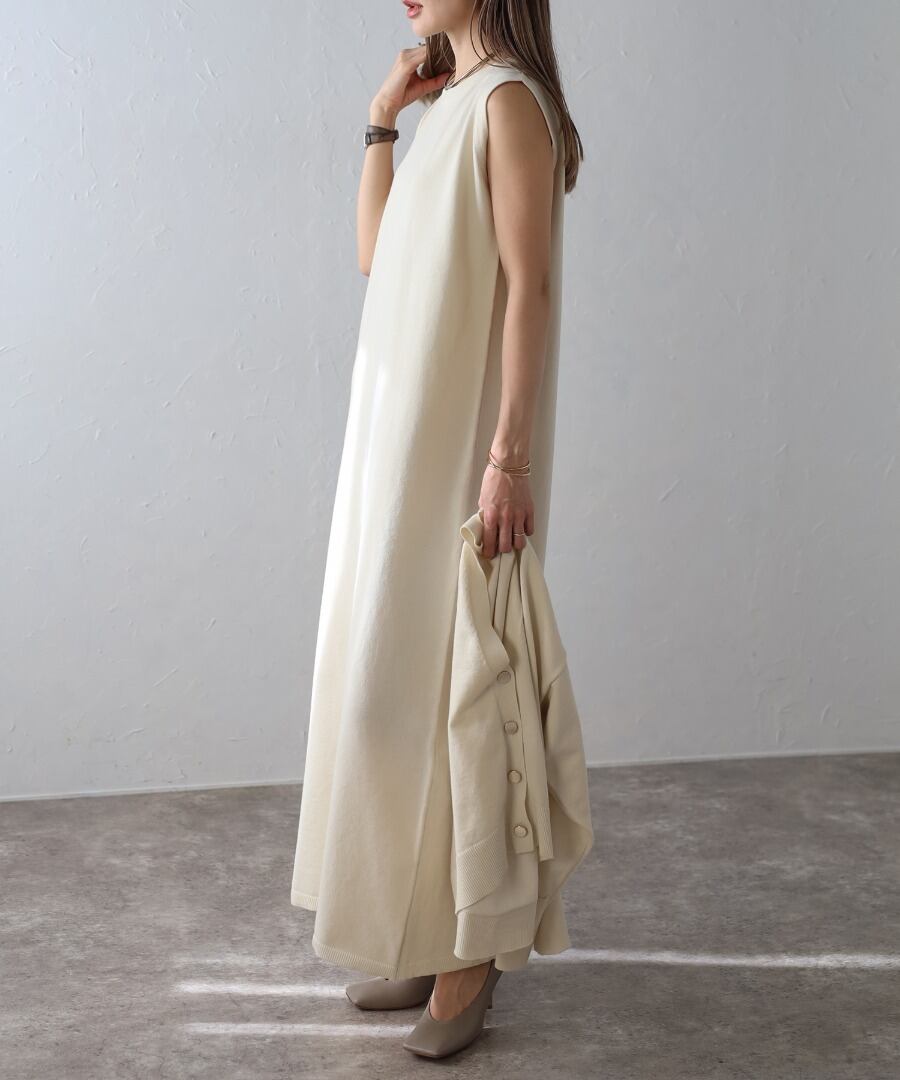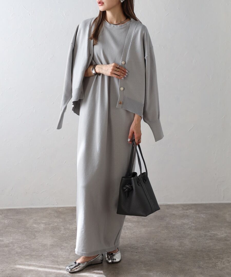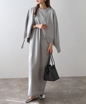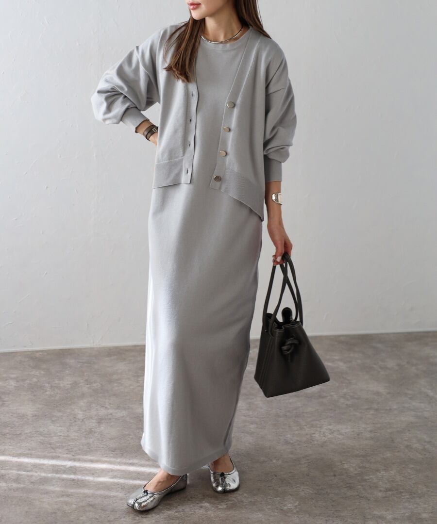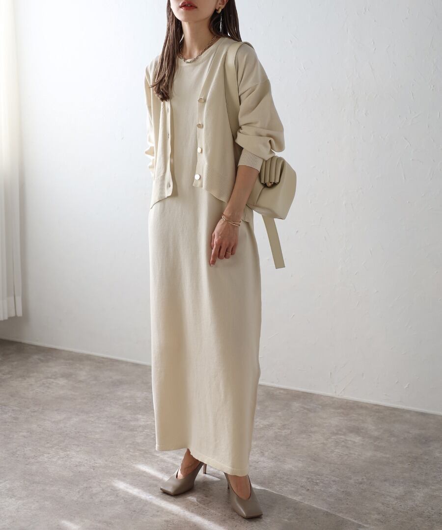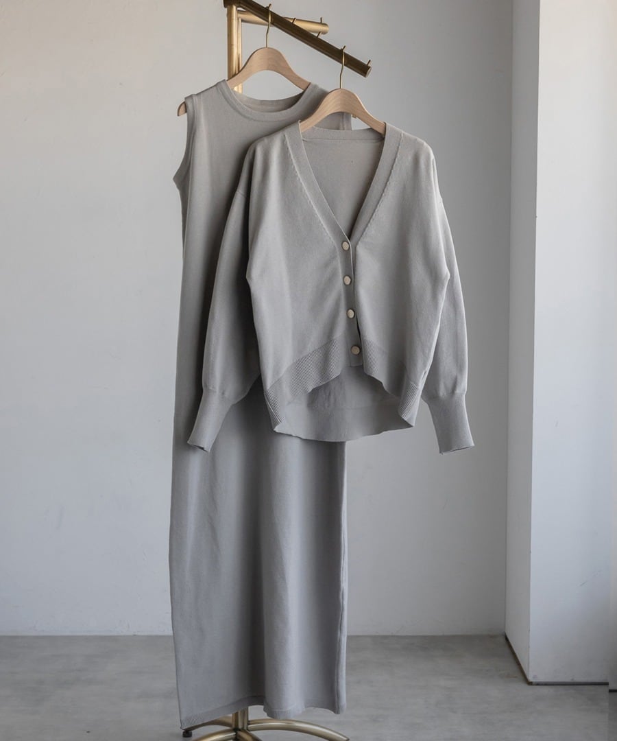 Vネックカーディガン×ノースリーブIラインワンピースセット【s-40083】.