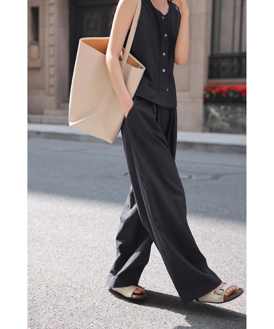 トレンドのワイドレッグで、快適なカジュアルスタイルを実現。