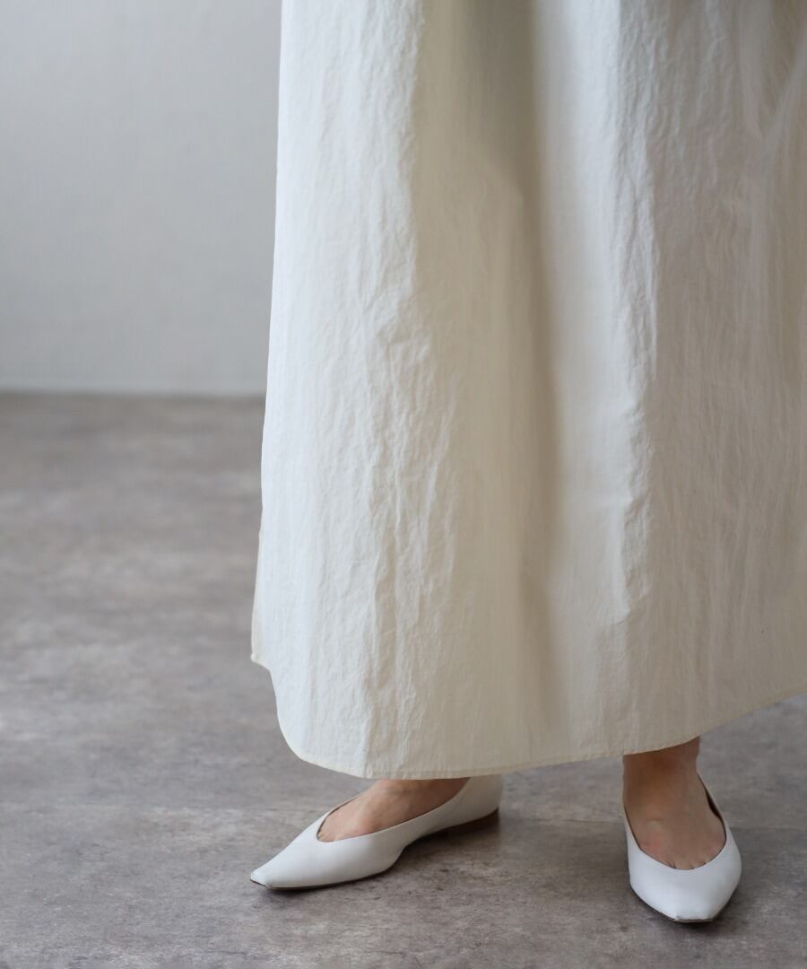 ウエストからふんわり広がるコクーンシルエットのスカートが、洗練されたモードな印象をプラス。