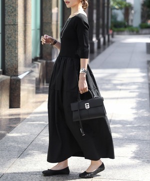異素材ミックスで魅せる、洗練スクエアネックワンピース