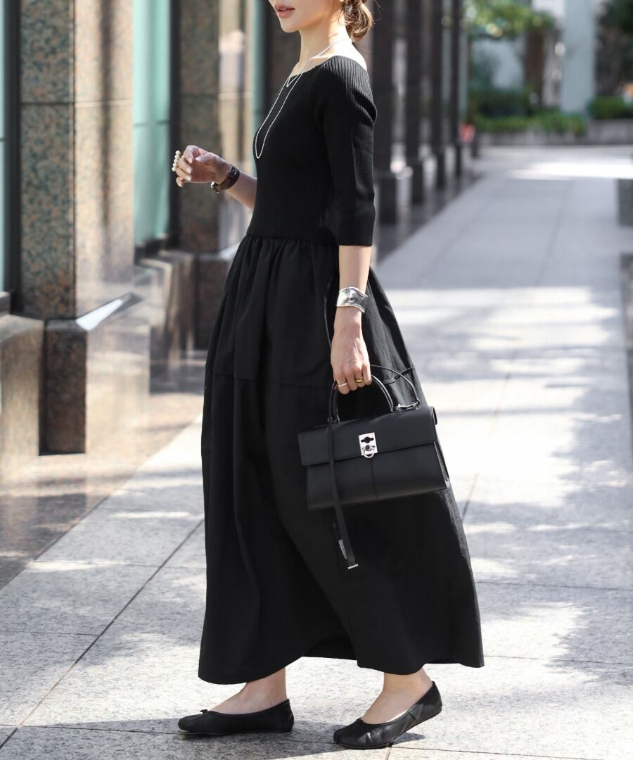 異素材の切り替えがアクセントになり、メリハリのある大人スタイルを叶えます。