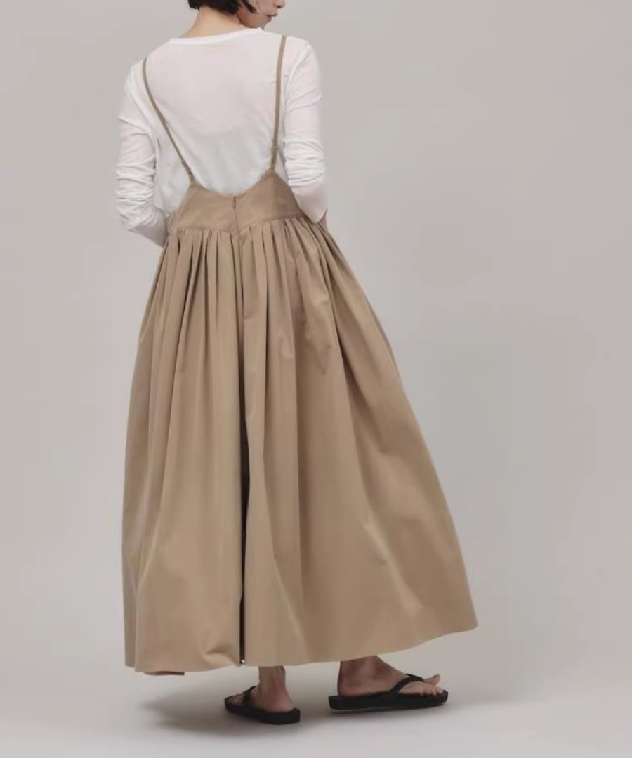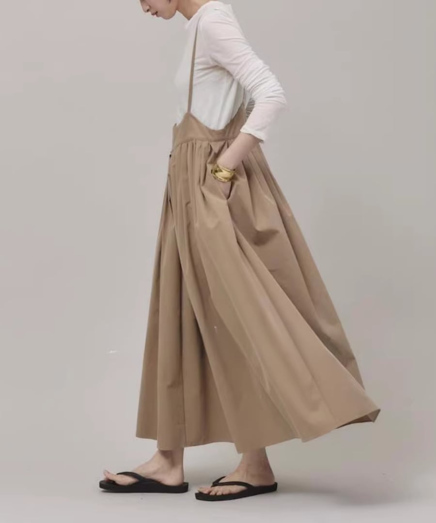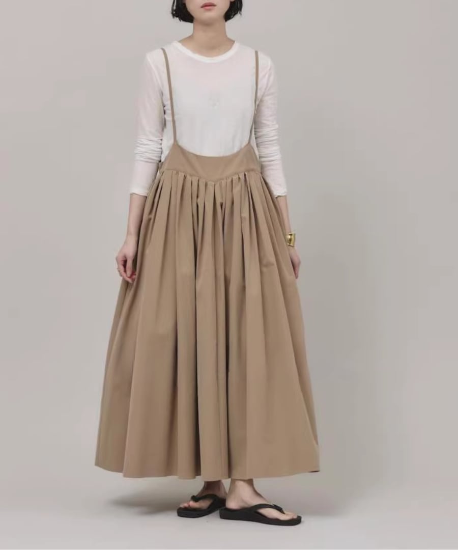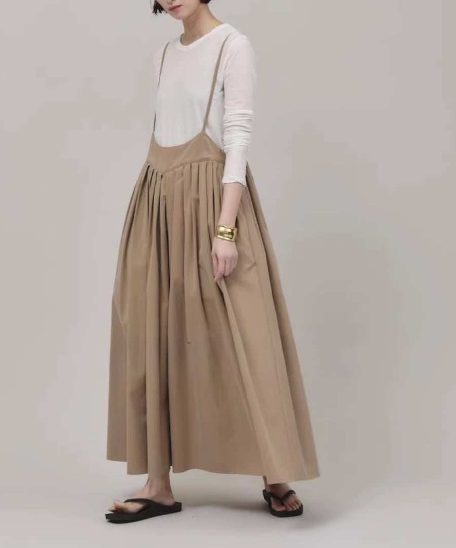 柔らかな生地感と優雅なシルエットが魅力のストラップスカート。