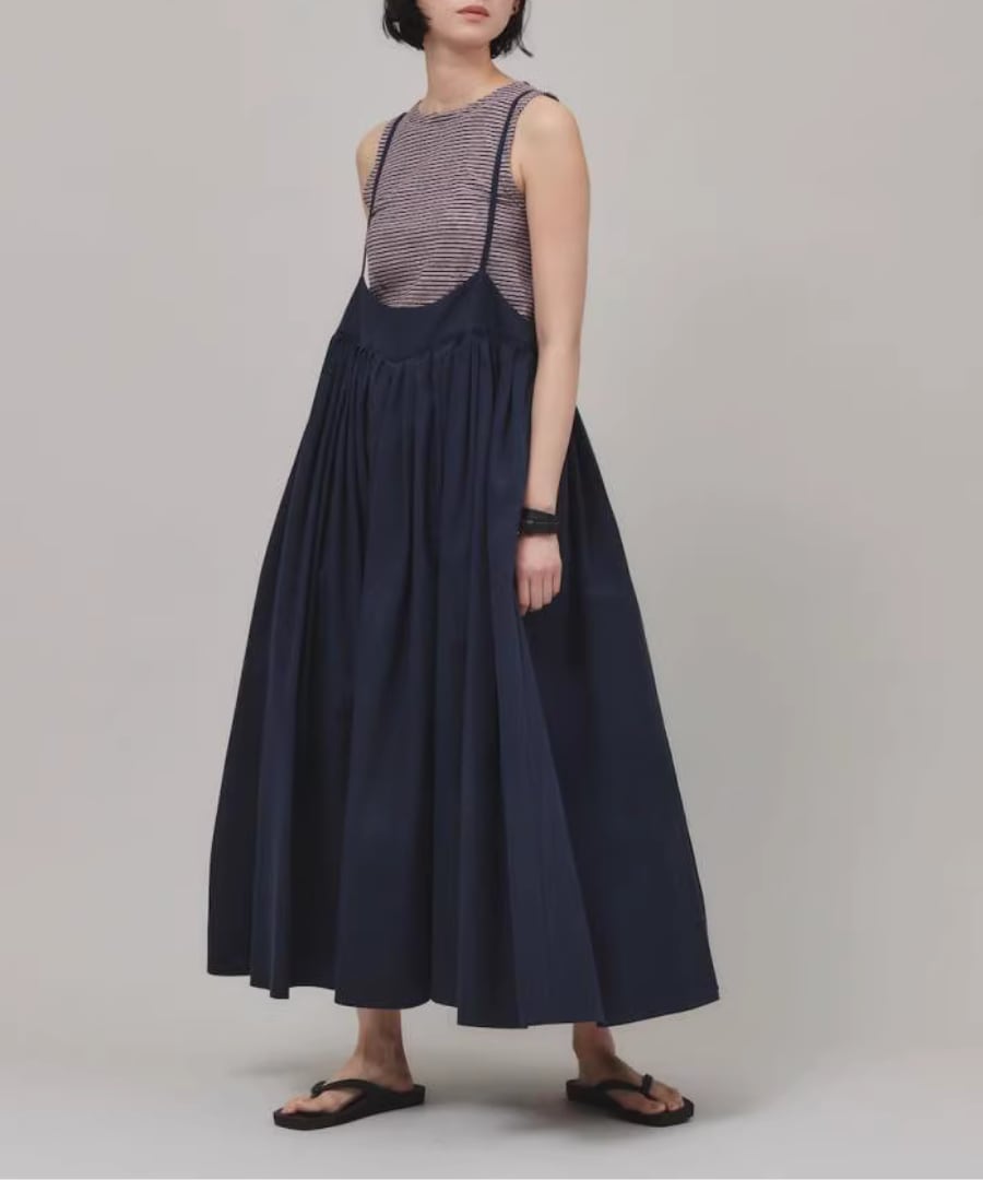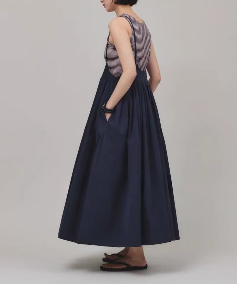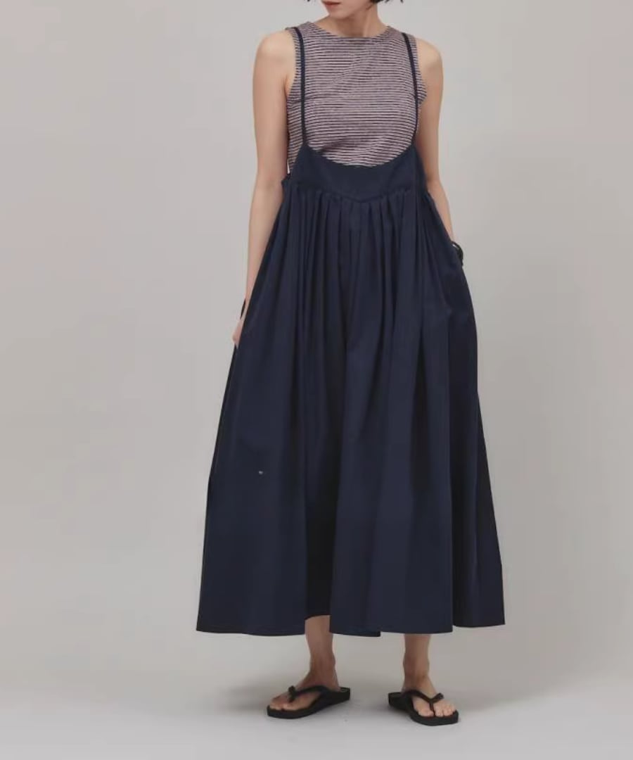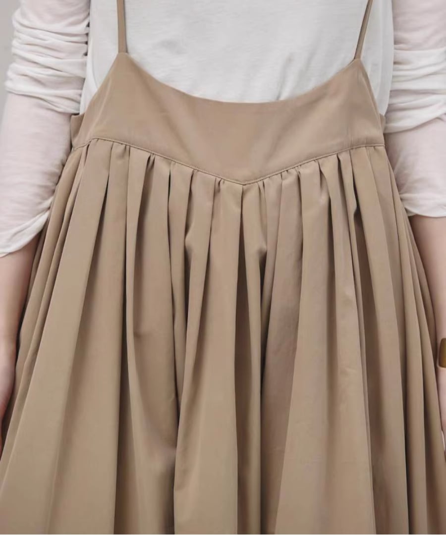 柔らかな生地感と優雅なシルエットが魅力のストラップスカート。