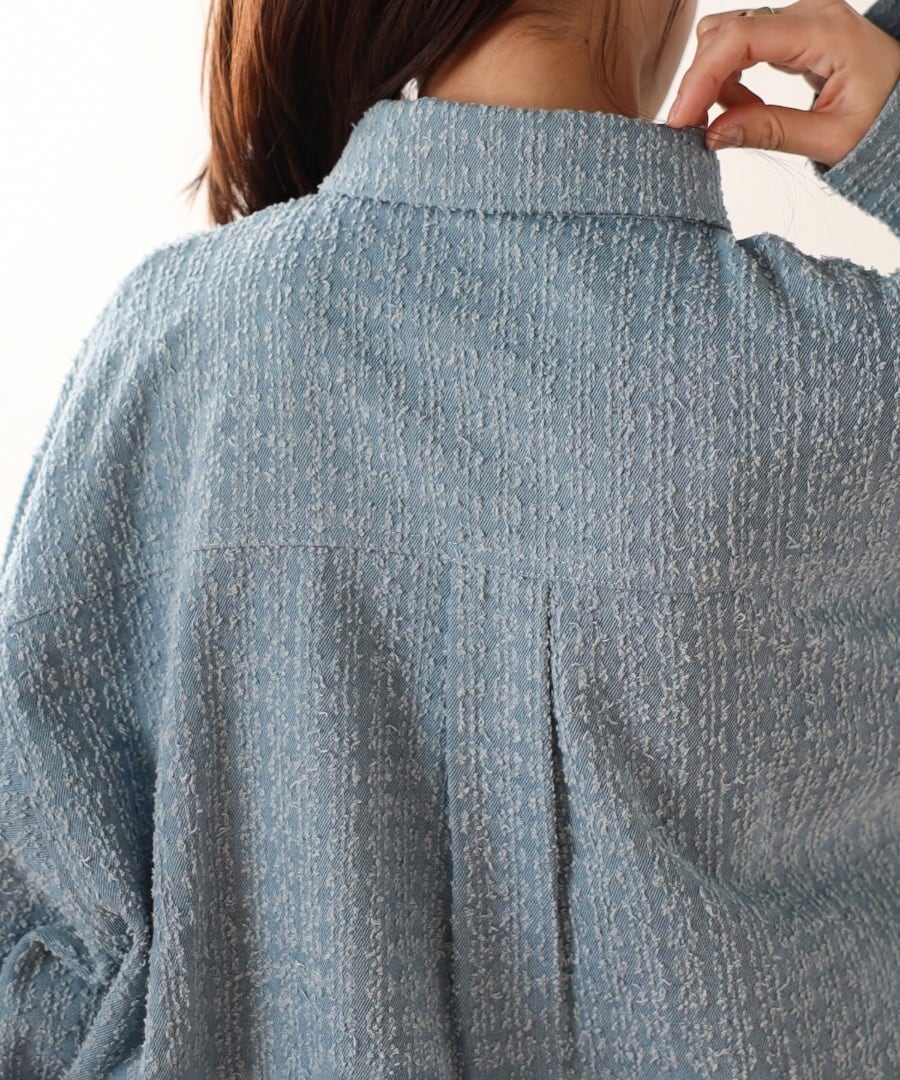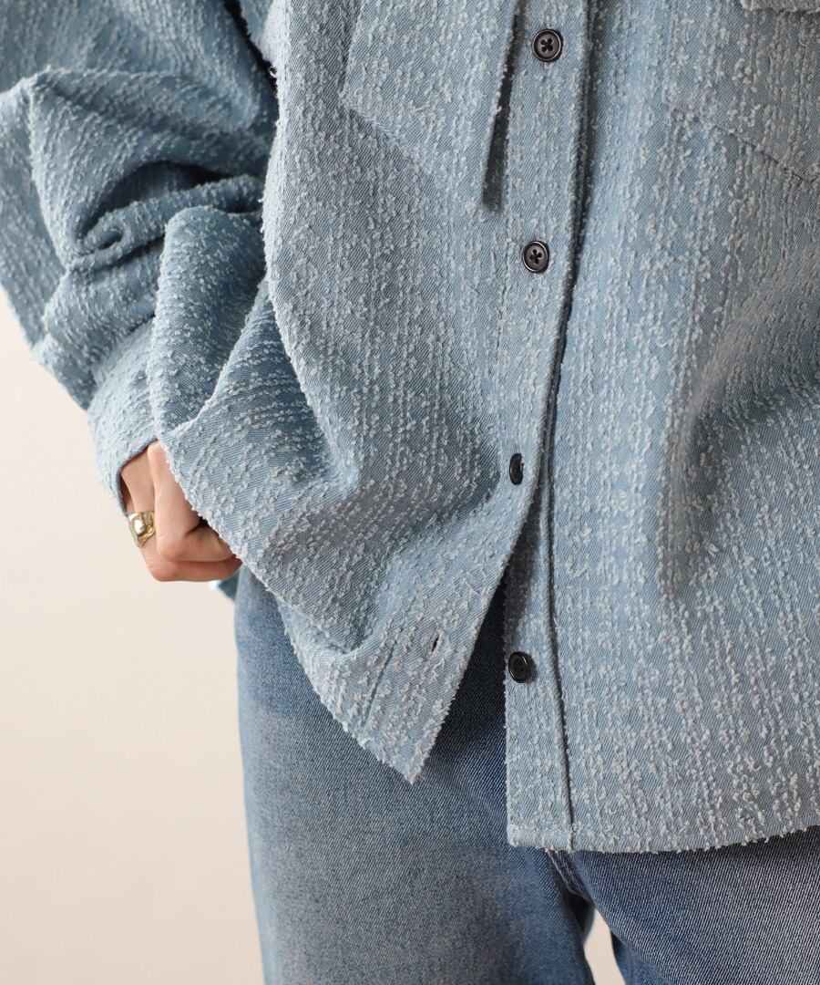 クラッシュデニムの独特な風合いが魅力のデザインシャツ。