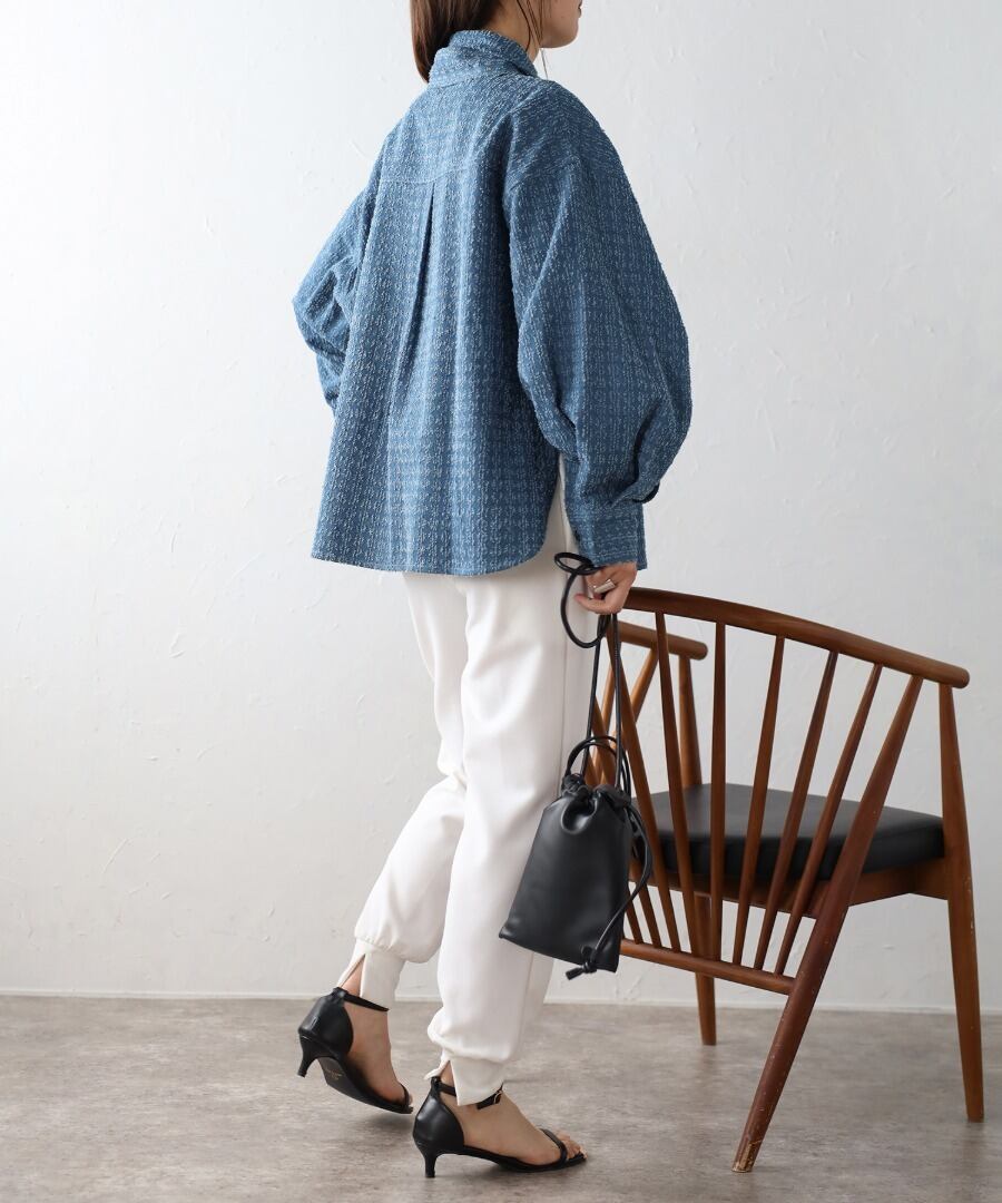 クラッシュデニムボリュームスリーブ2WAYボウタイシャツ【t-10562】.