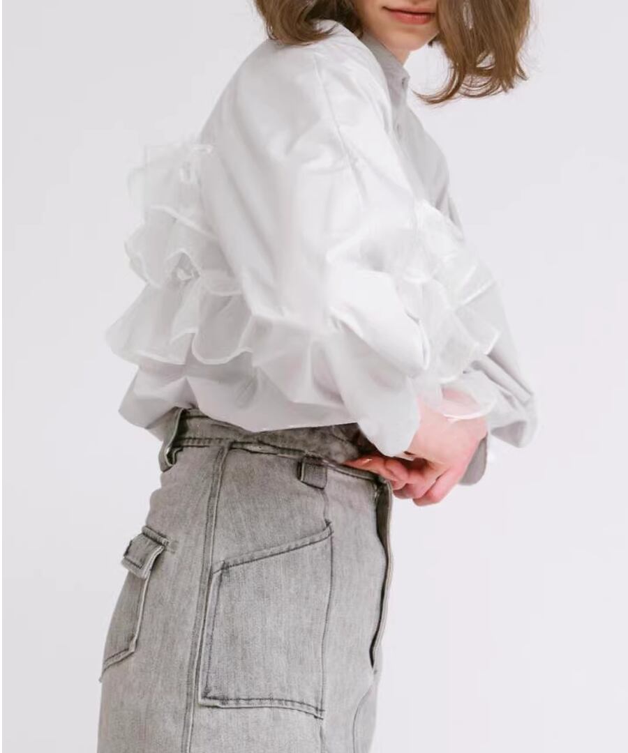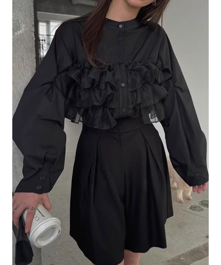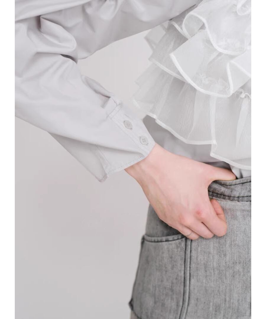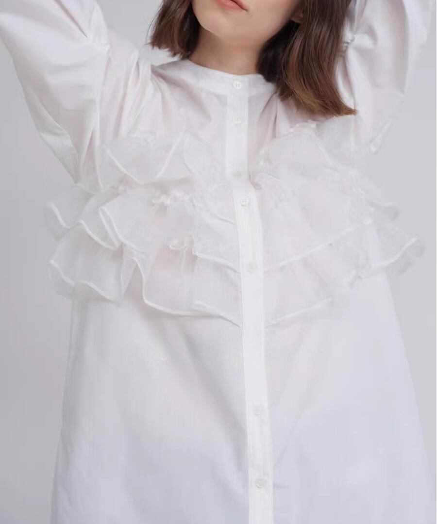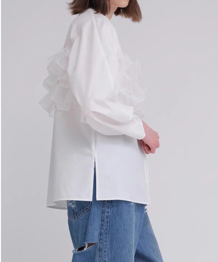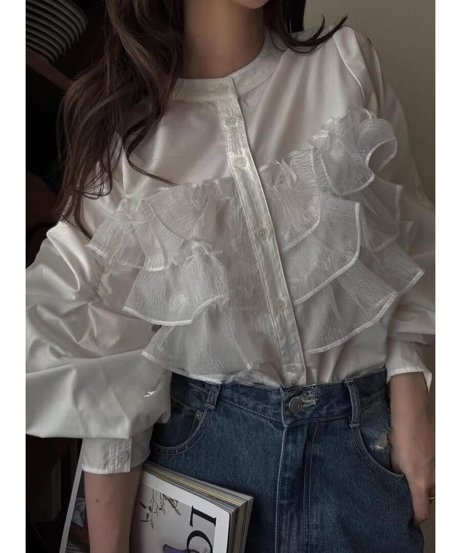 パフスリーブ◆フリルレースシャツ【t-10380】