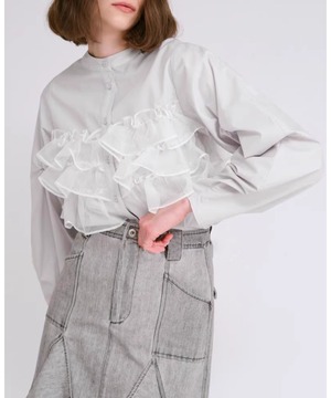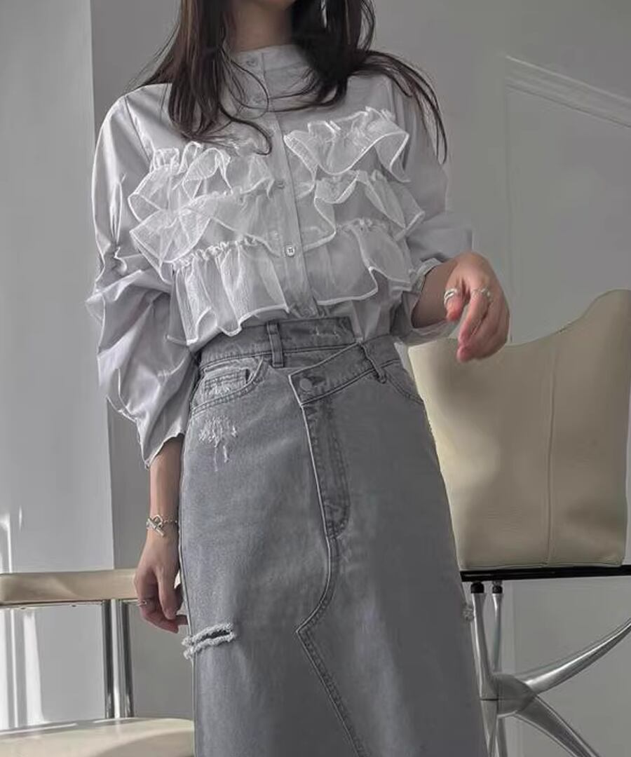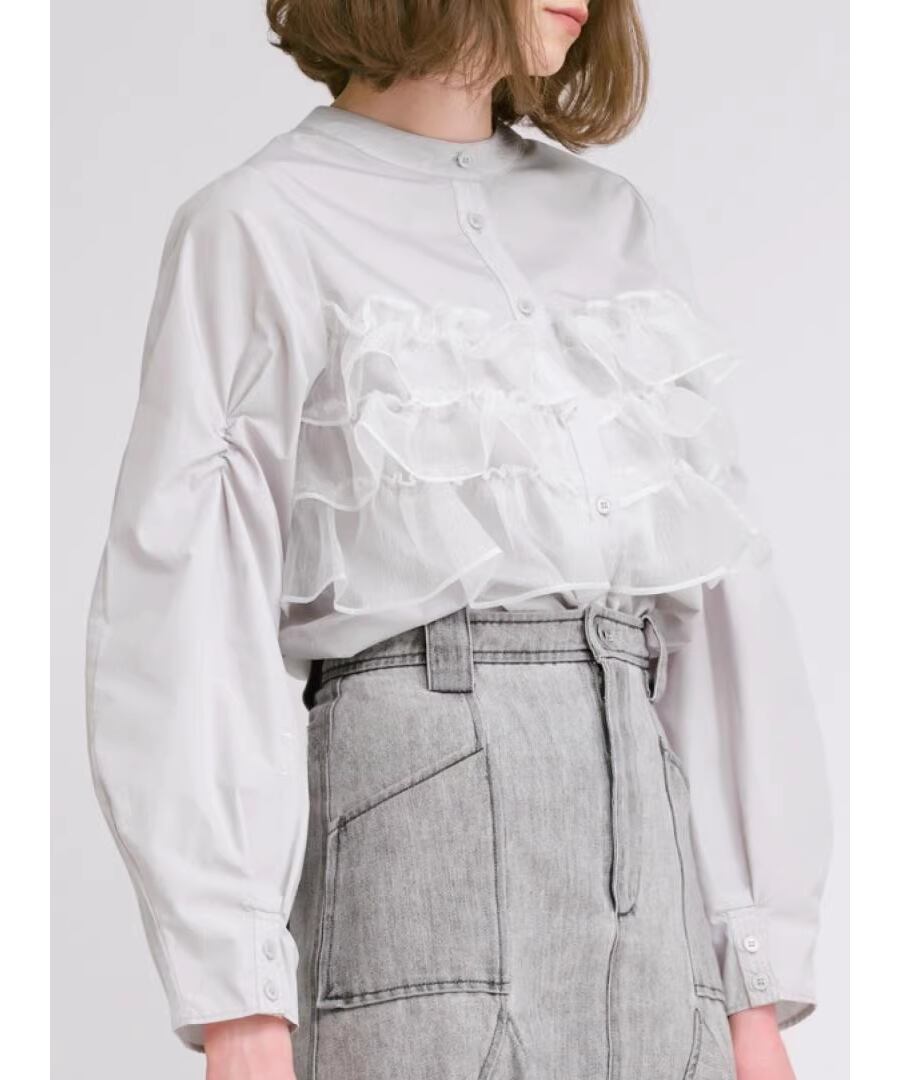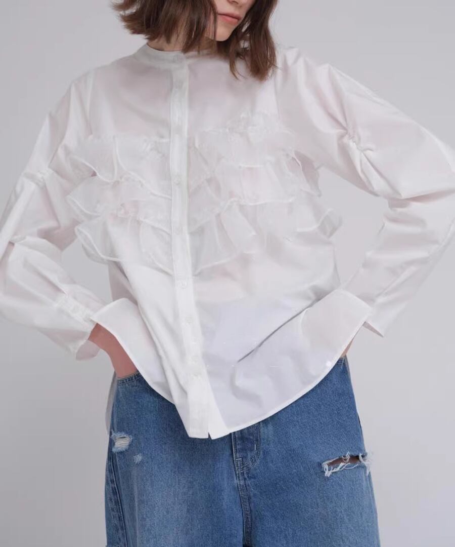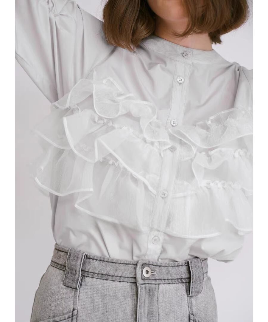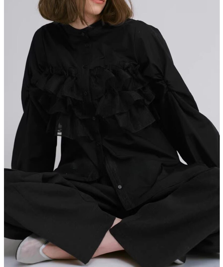 パフスリーブ◆フリルレースシャツ【t-10380】