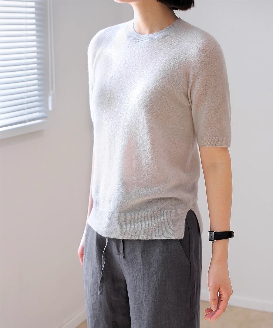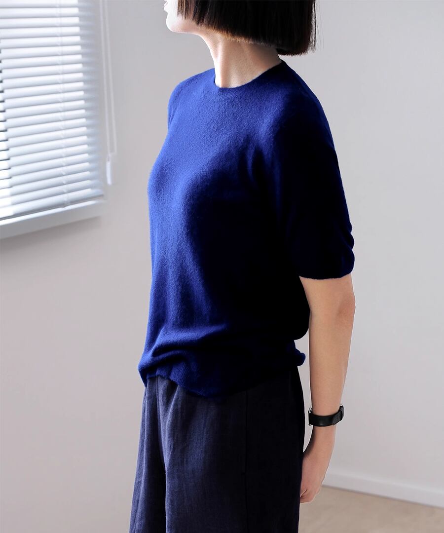 ミニマルなデザインで一年中着用できる半袖クルーネックシャツ。