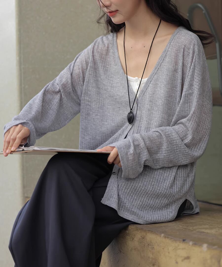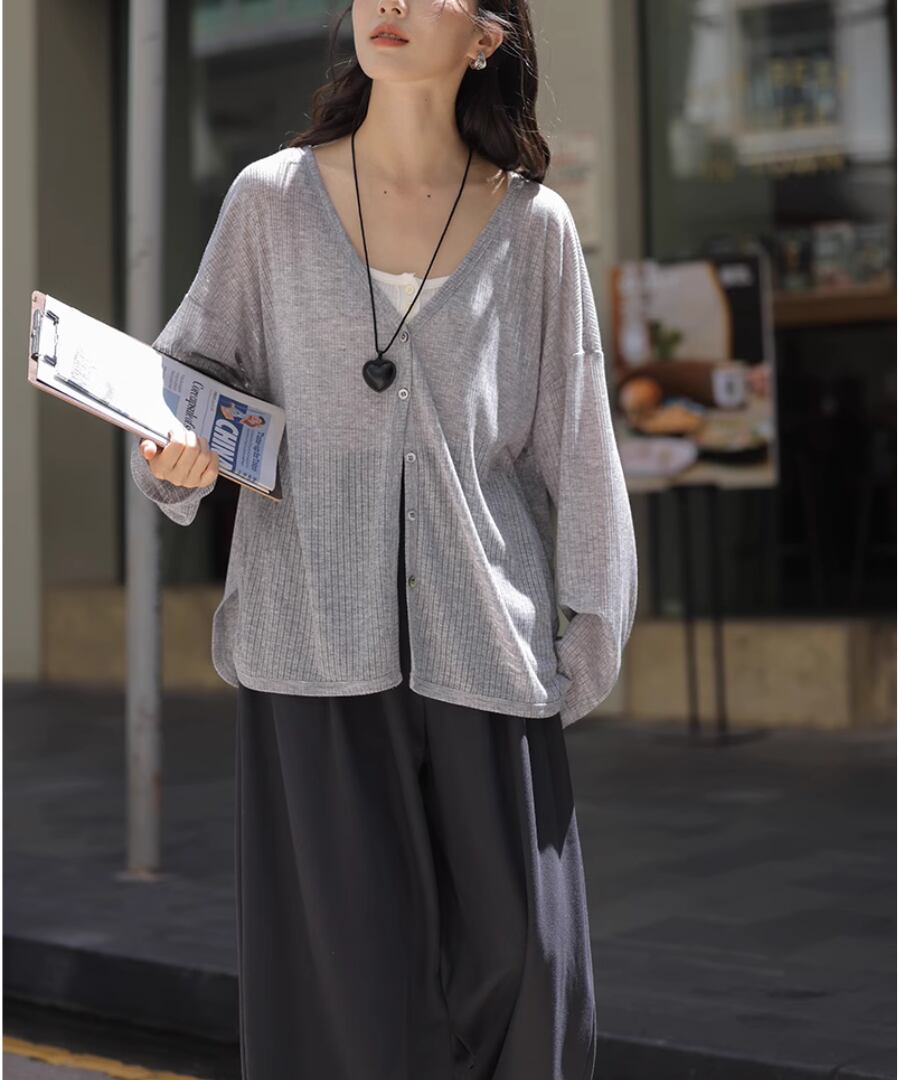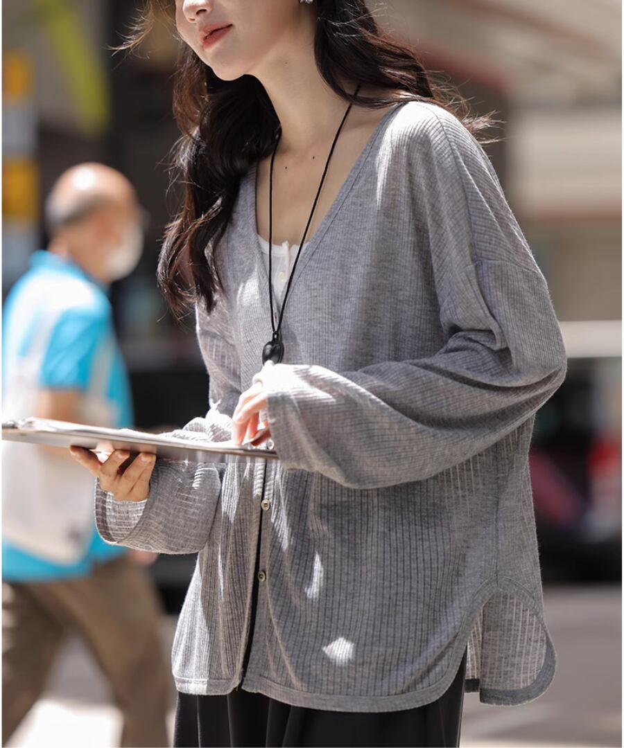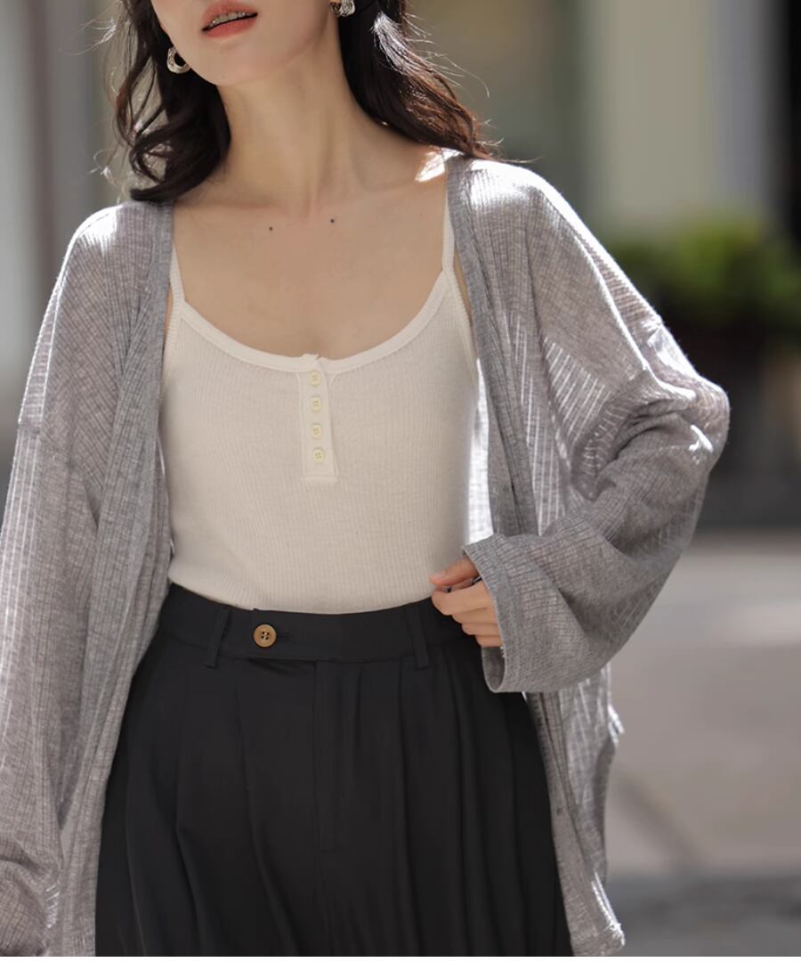 薄手の素材が涼しげな印象を与え、これからの日差しが強くなる季節にぴったりなアイテムです。