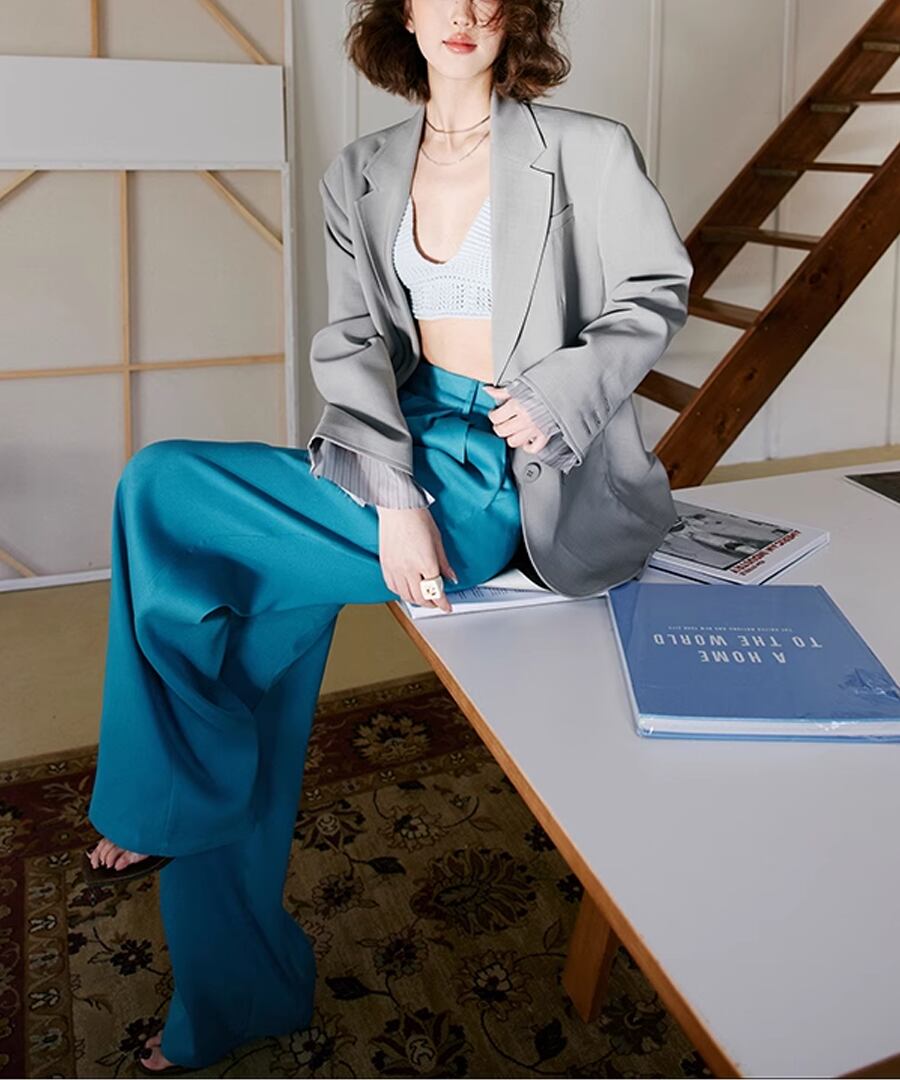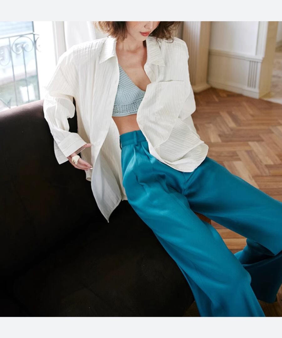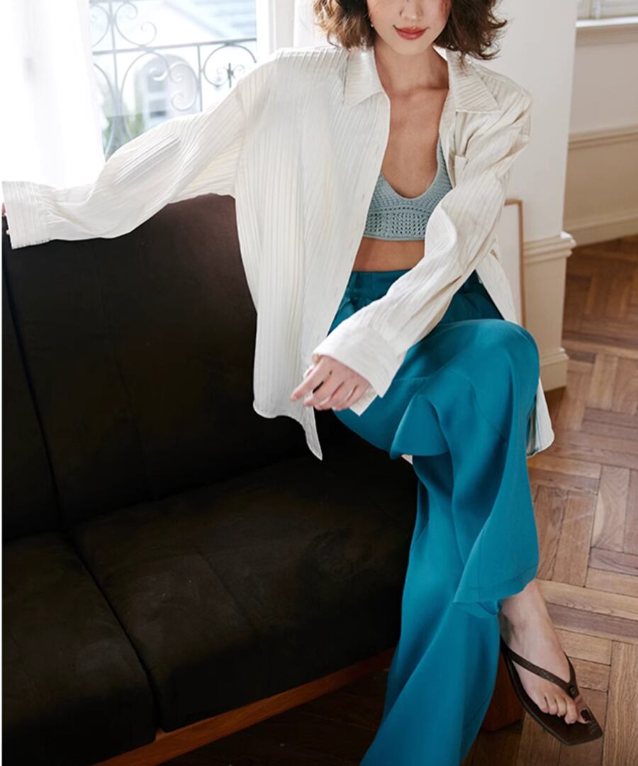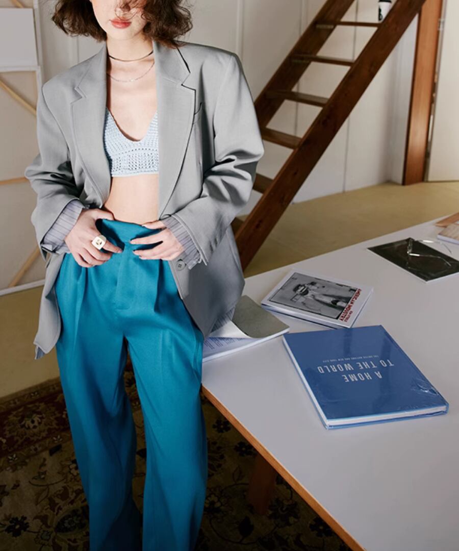 鮮やかなピーコックブルーが、スタイリッシュなコーディネートを実現します。