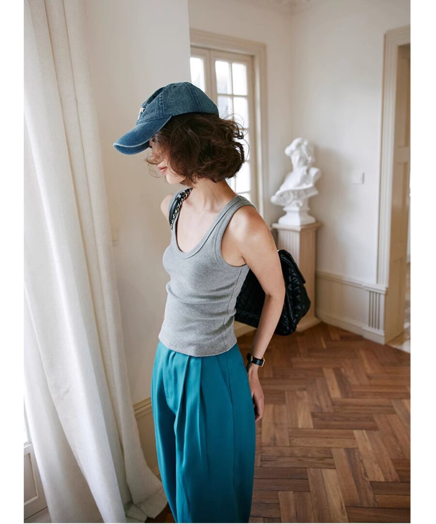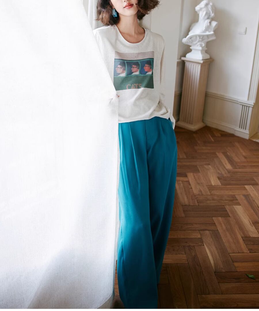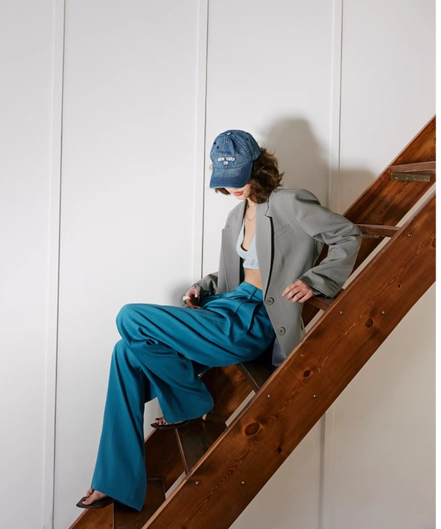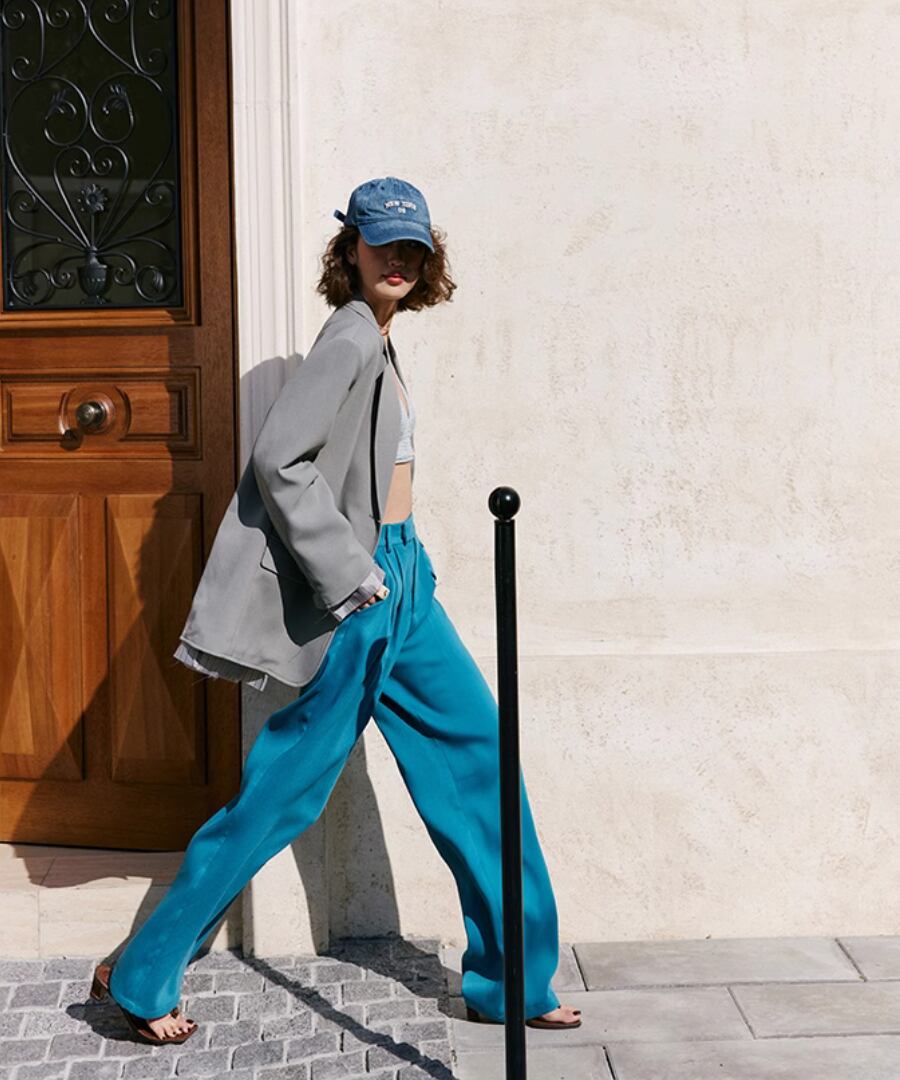 鮮やかなピーコックブルーが、スタイリッシュなコーディネートを実現します。