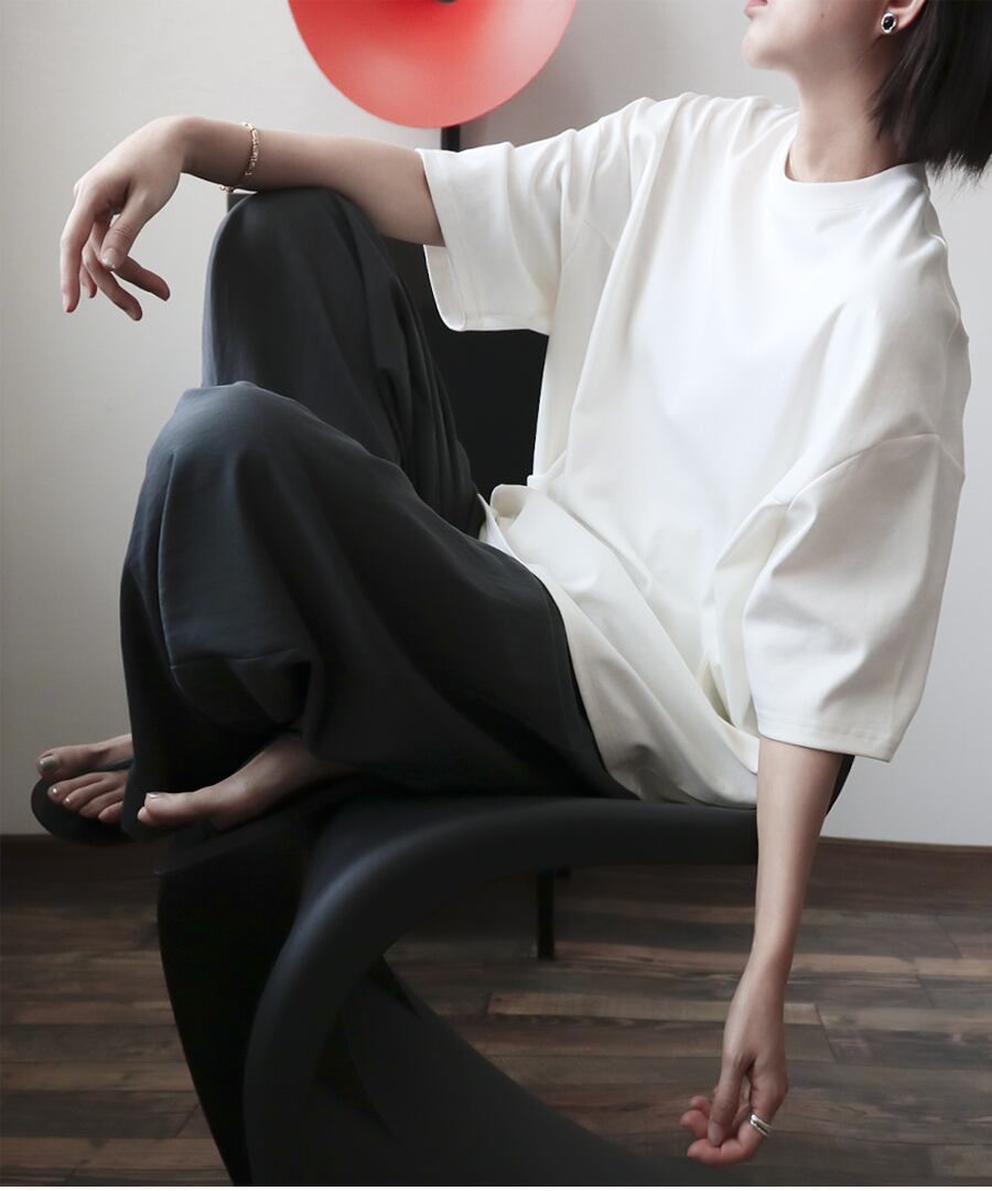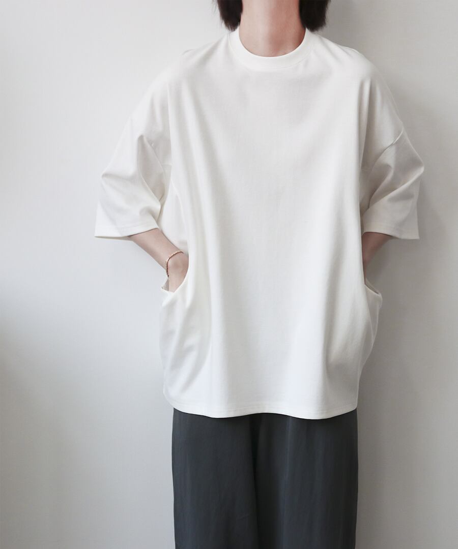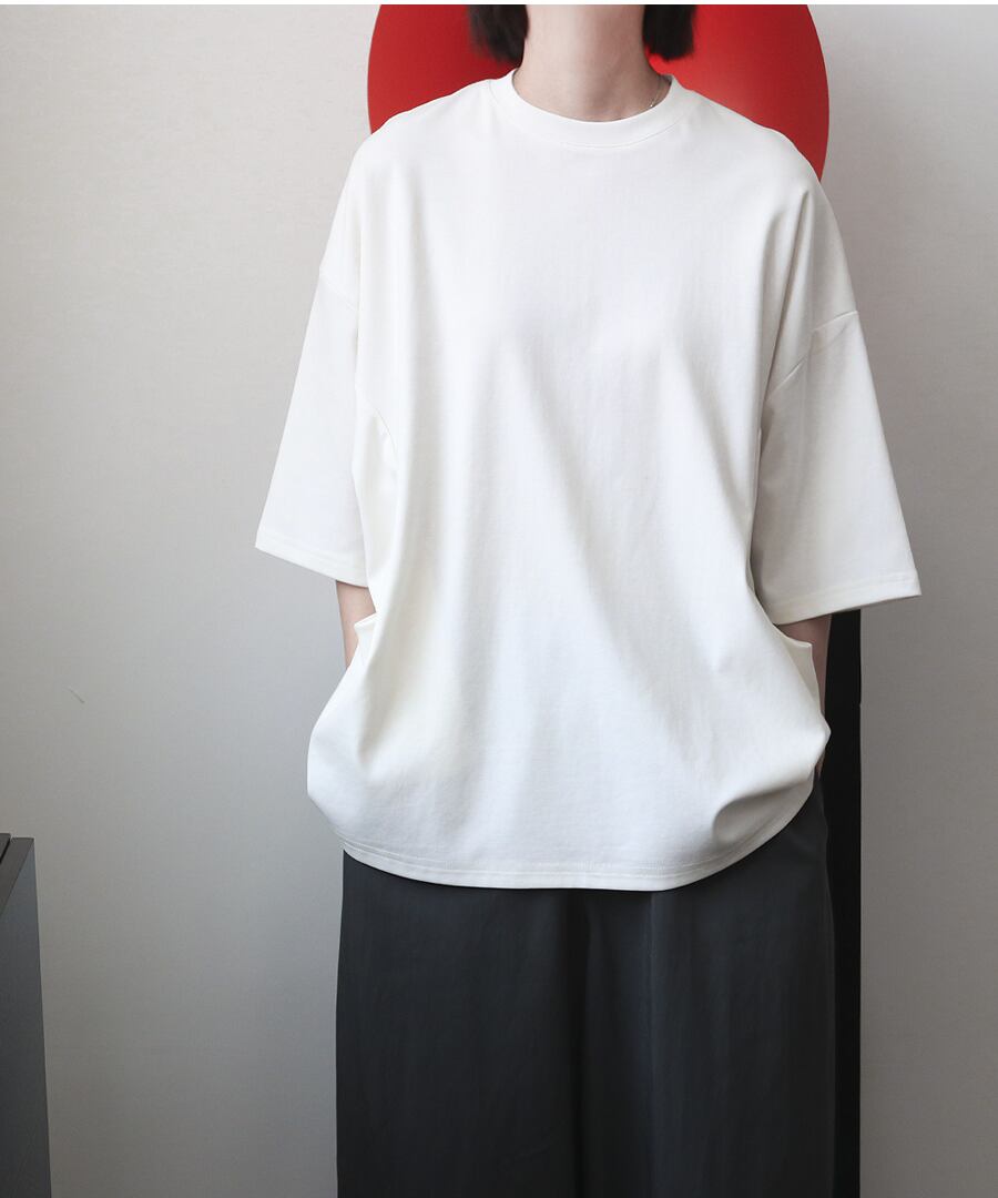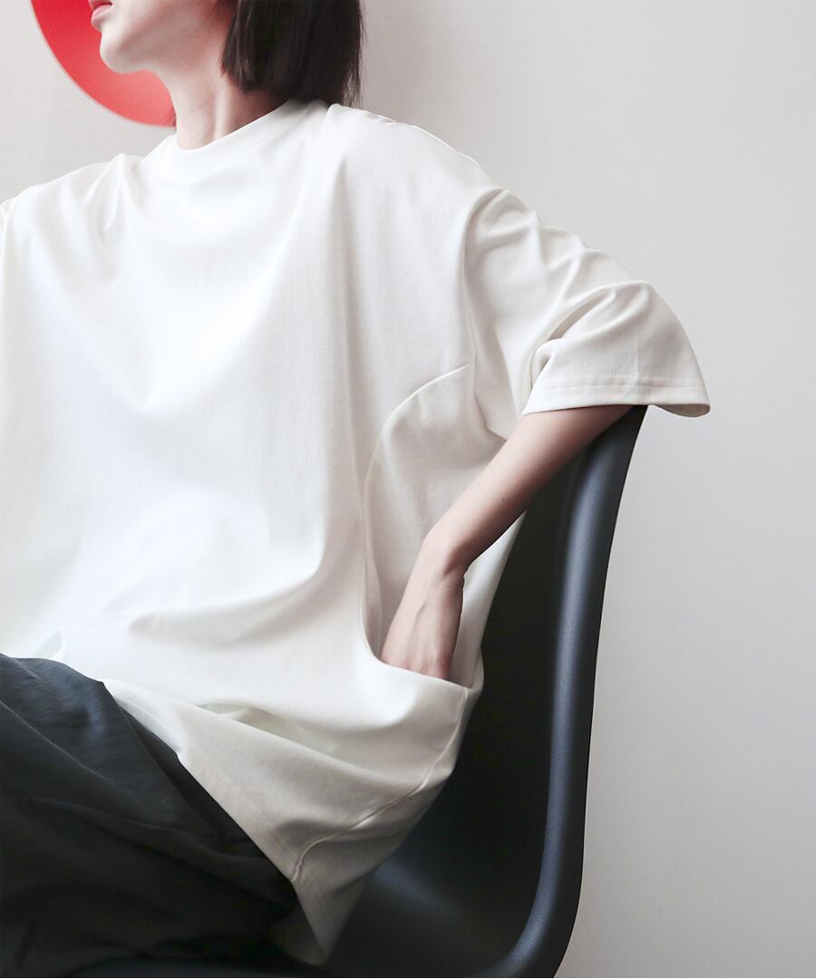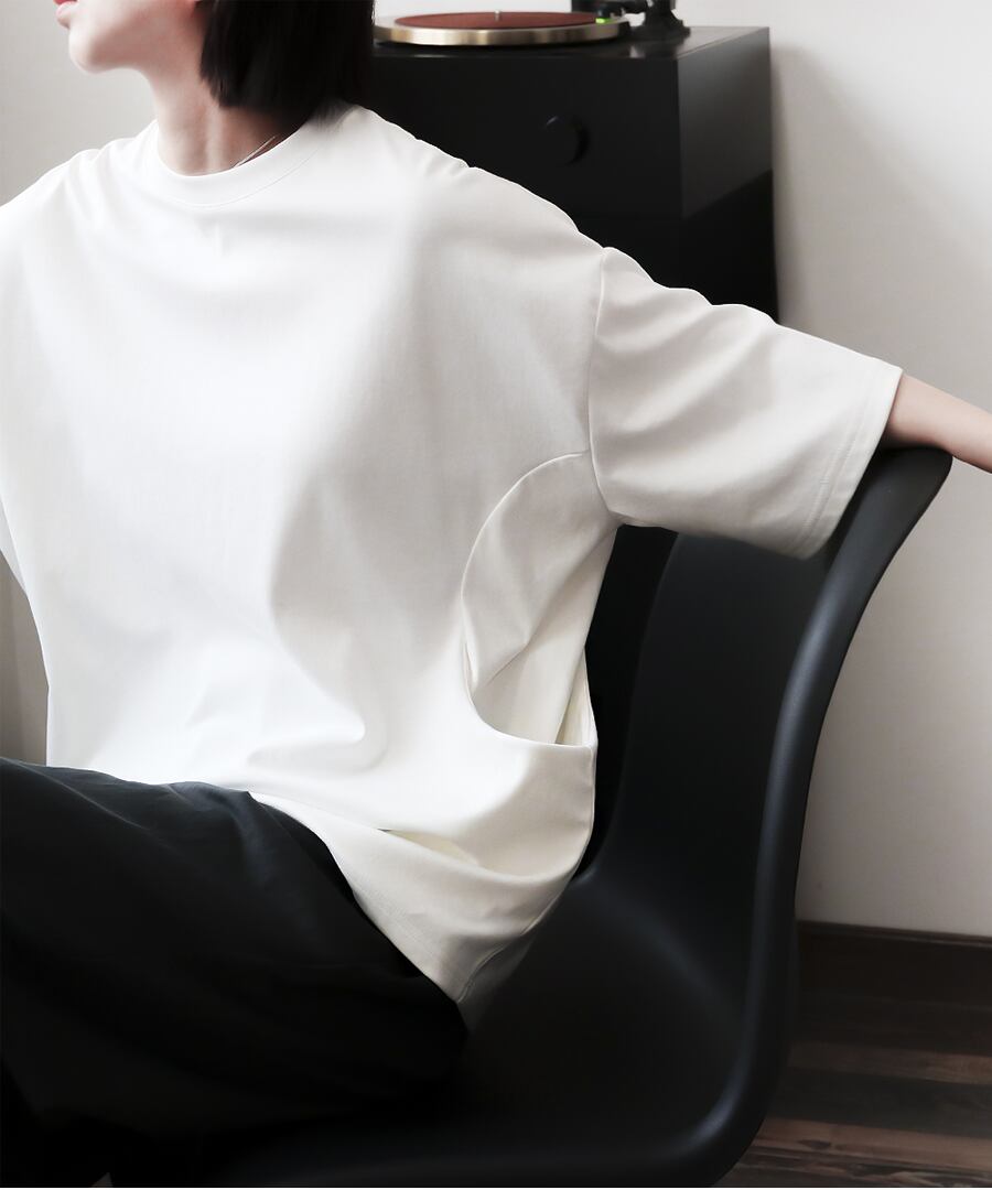 素材感とリブ編みデザインが、シンプルながらも洗練された印象を与えるTシャツ。