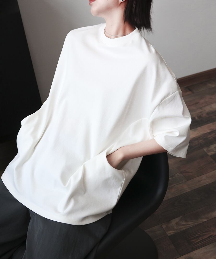 なめらかな肌触りが魅力のリブカラーTシャツ。