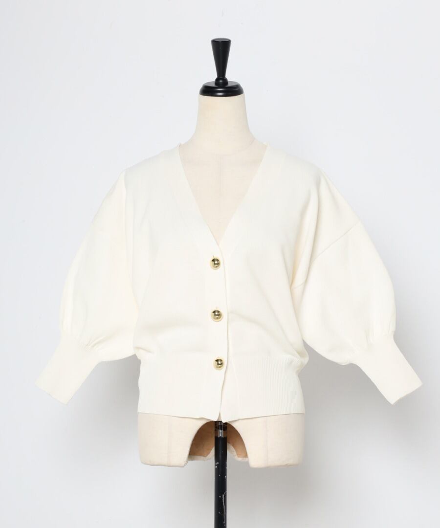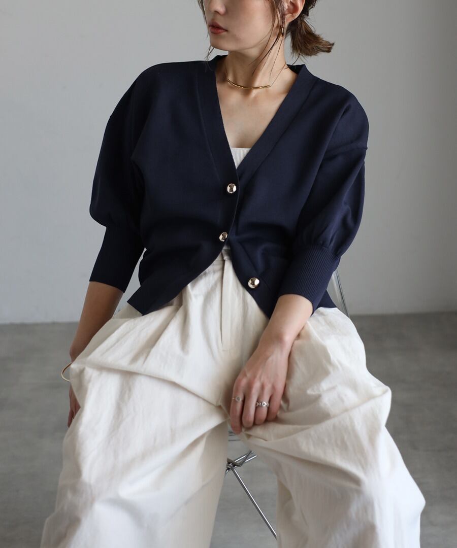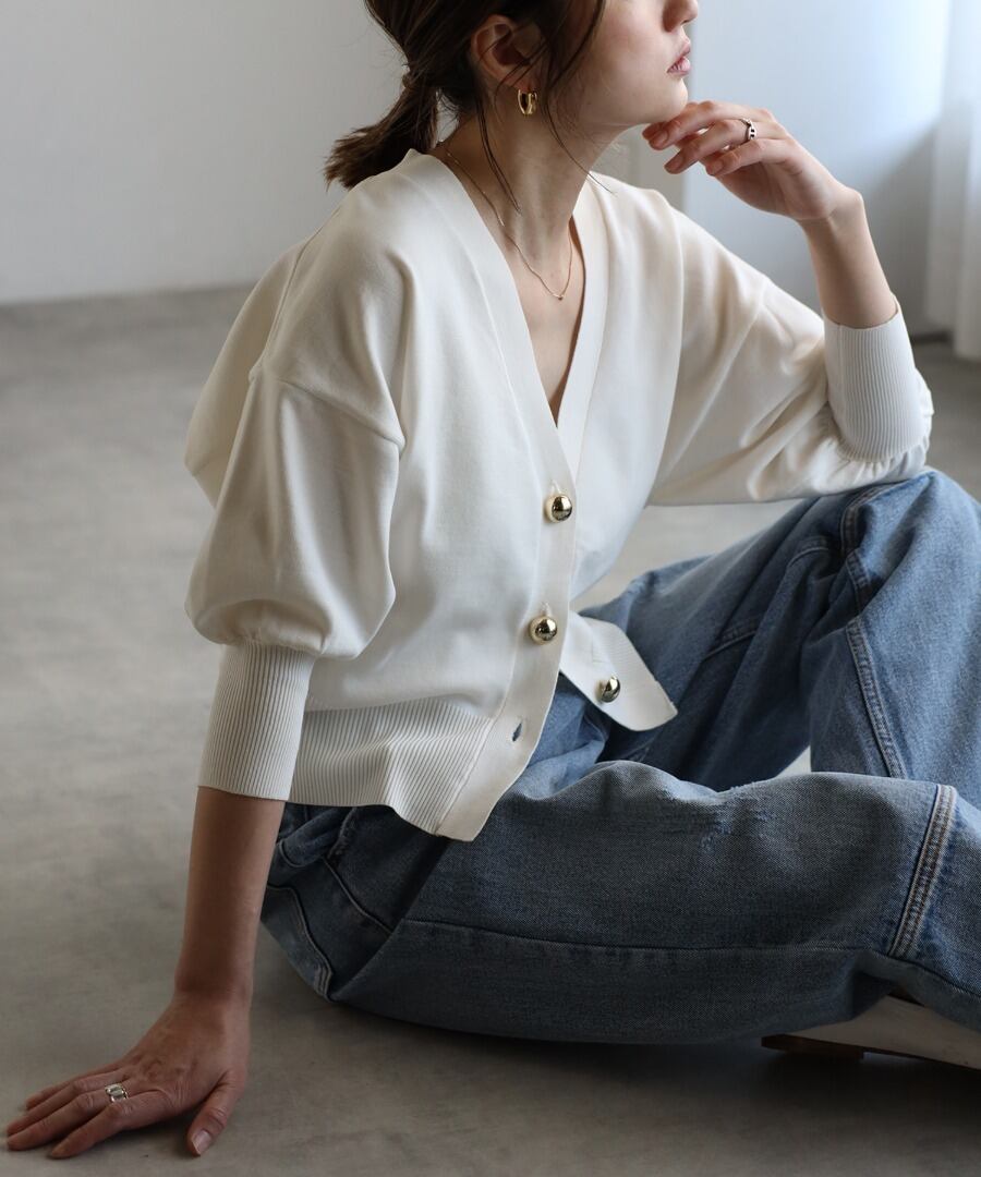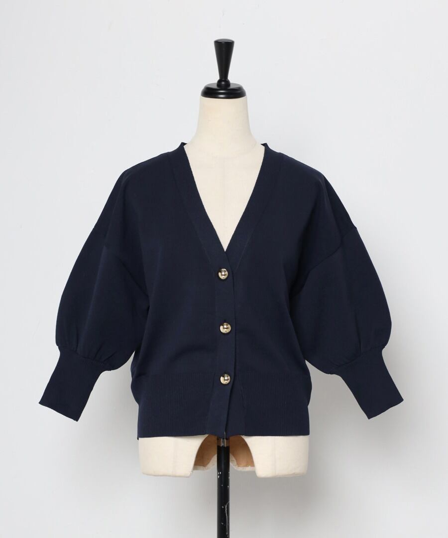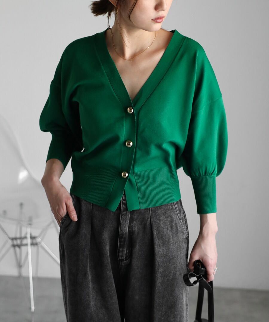 ゴールドボタンパフスリーブVネックニットカーディガン【a-50340】.