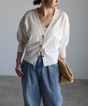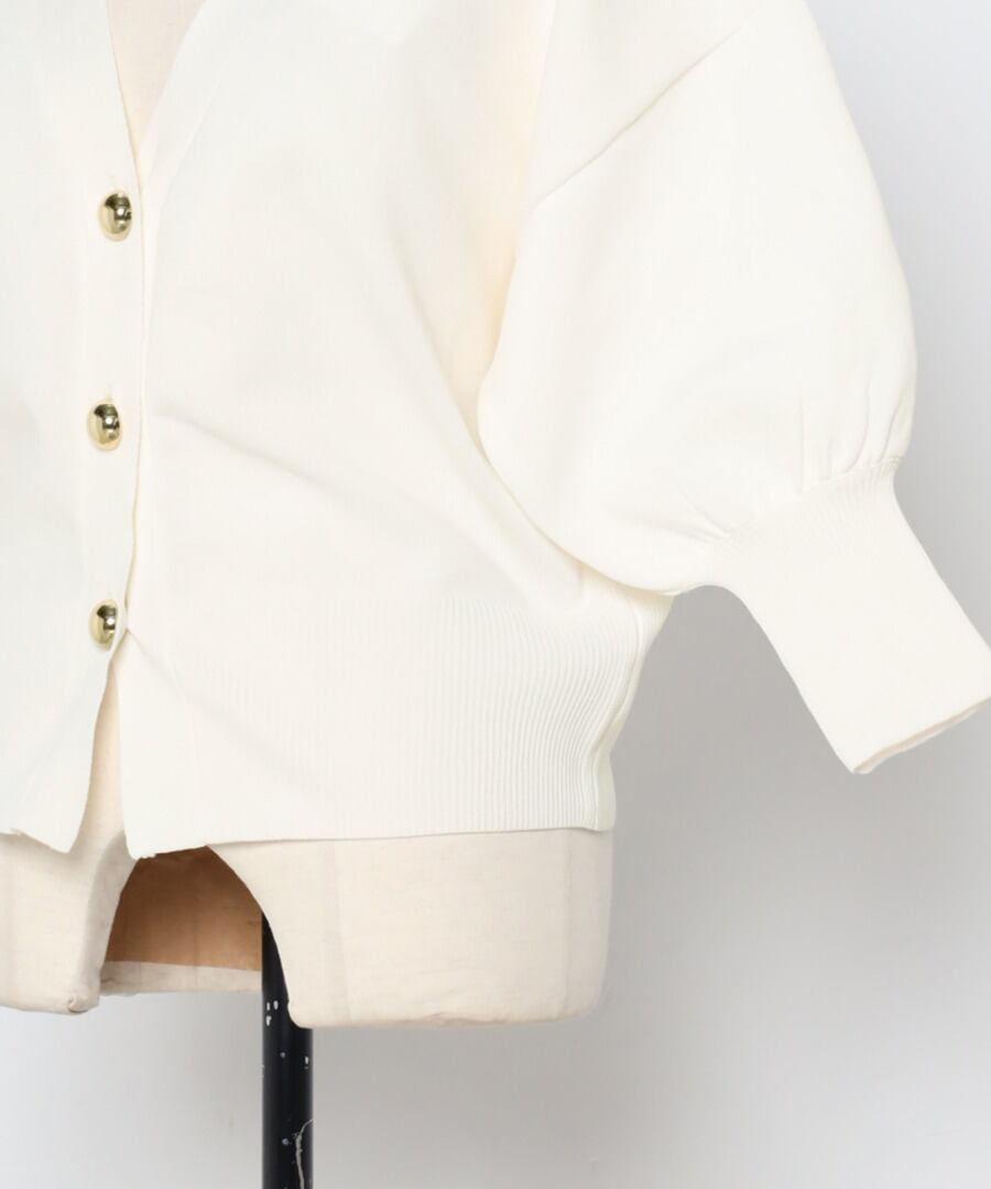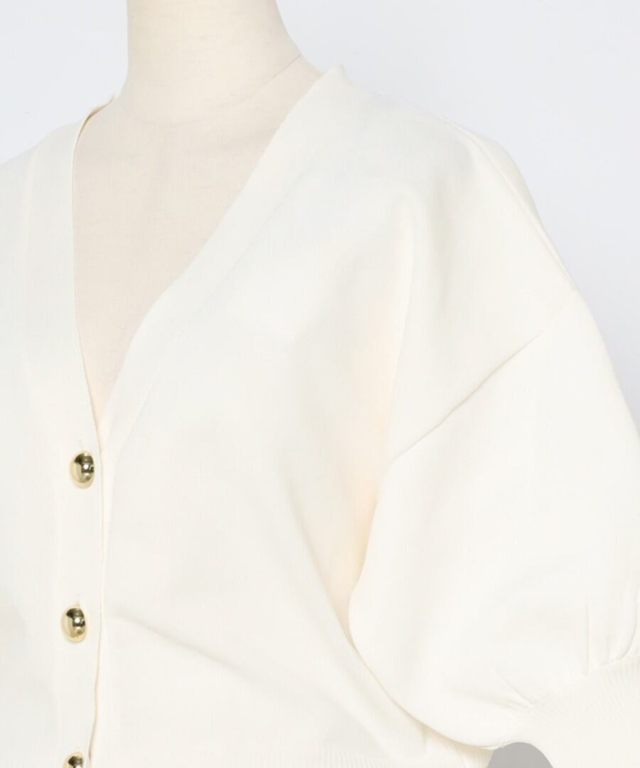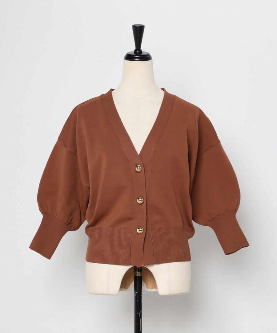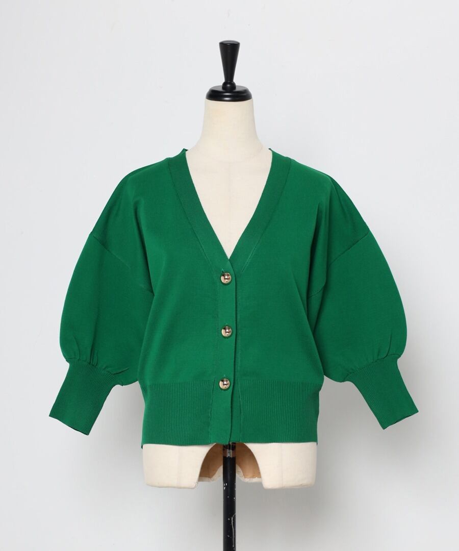 ゴールドボタンパフスリーブVネックニットカーディガン【a-50340】.