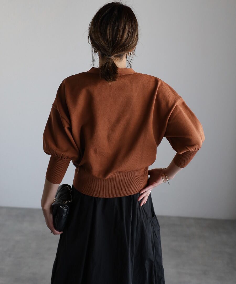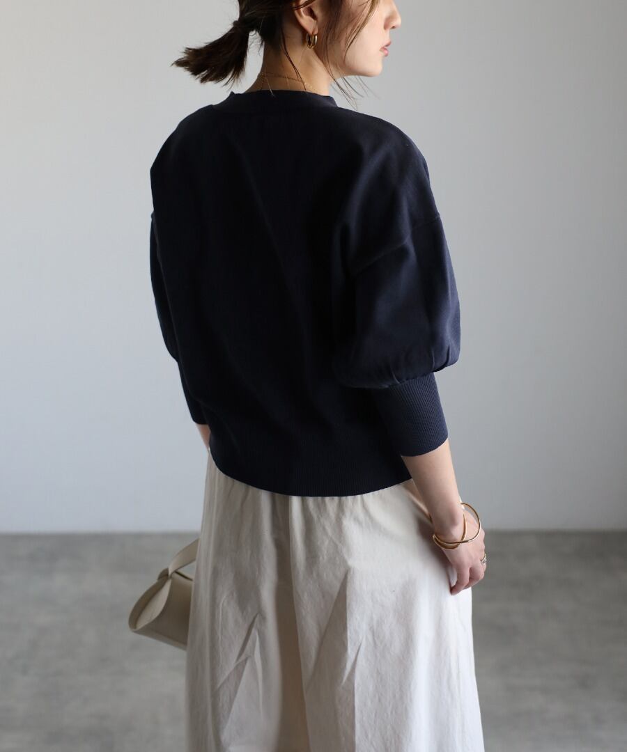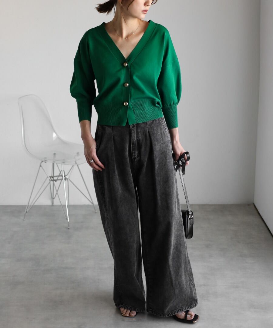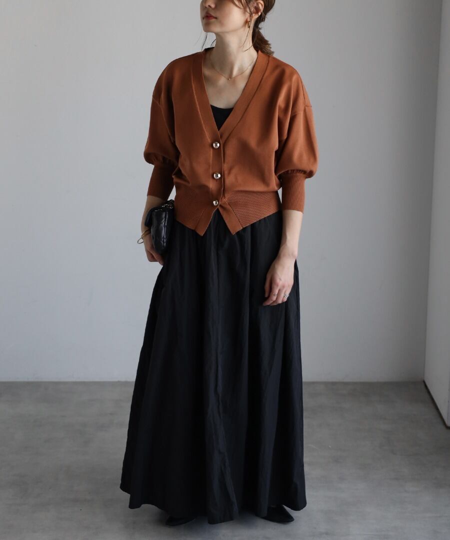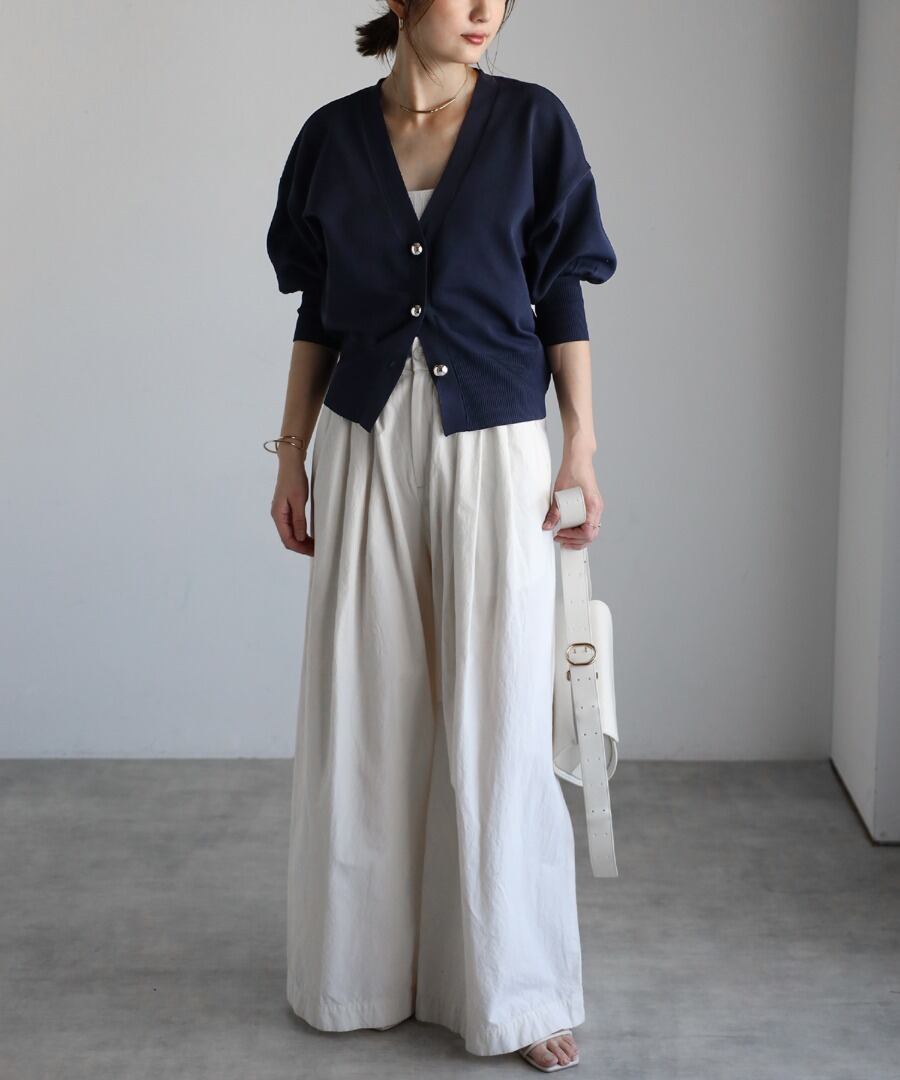 ゴールドボタンパフスリーブVネックニットカーディガン【a-50340】.