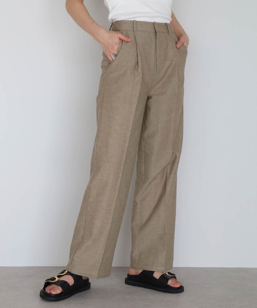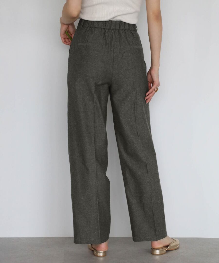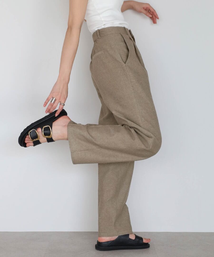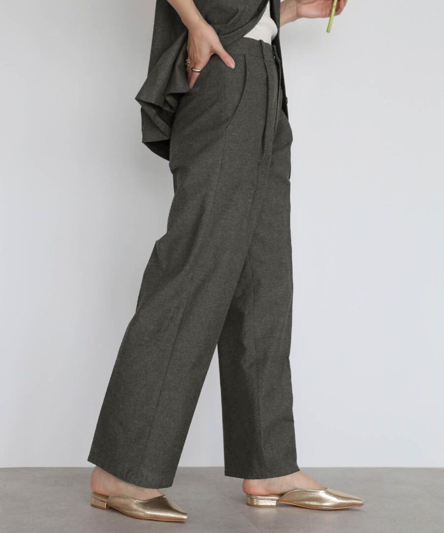 リネンブレンドのナチュラルな風合いに、ツイード調の上品さを加えたセットアップ。