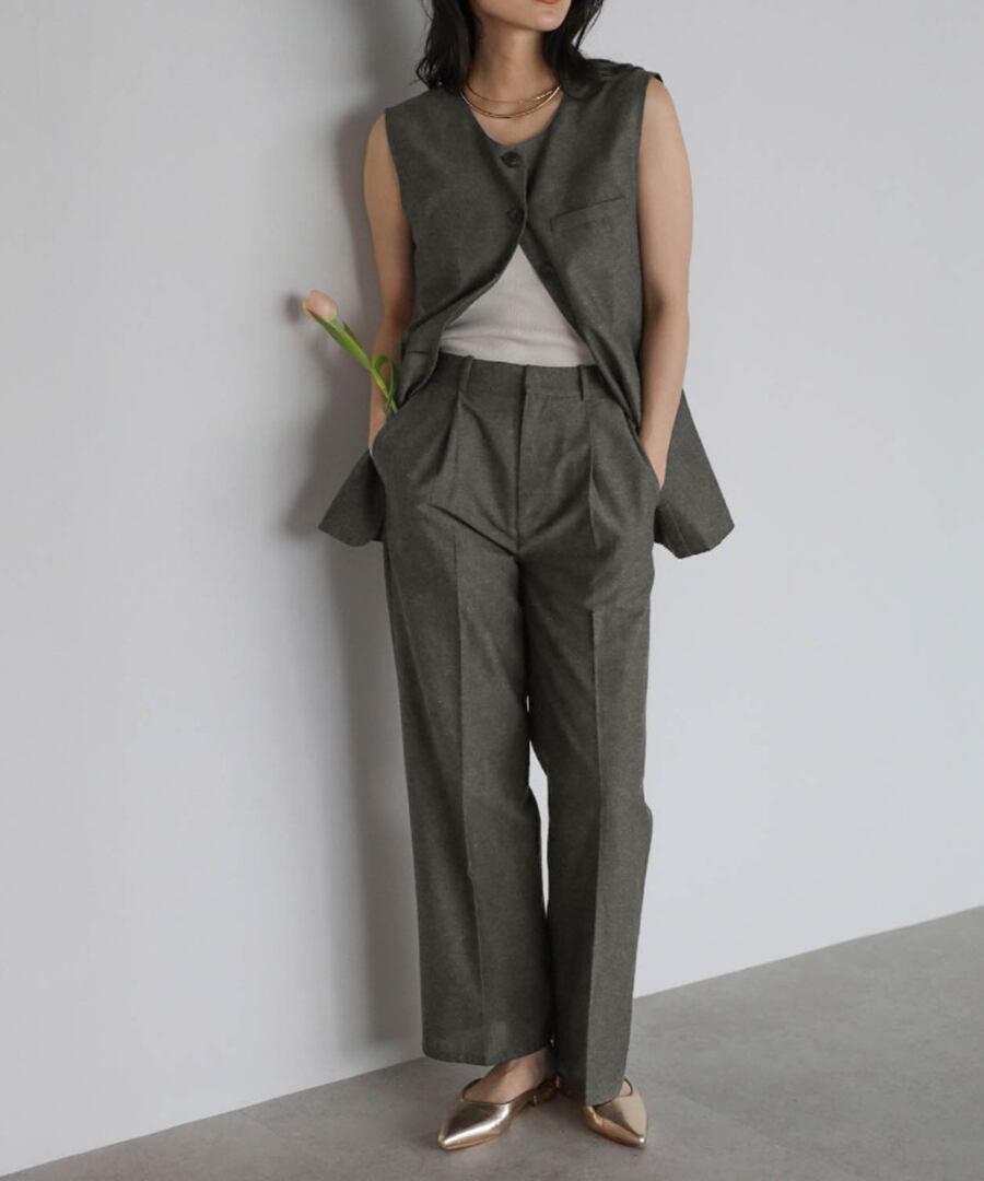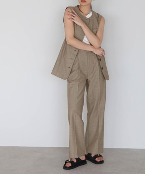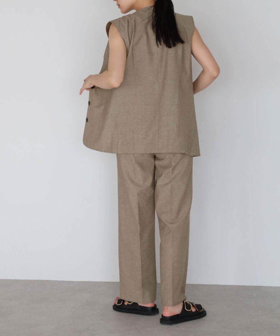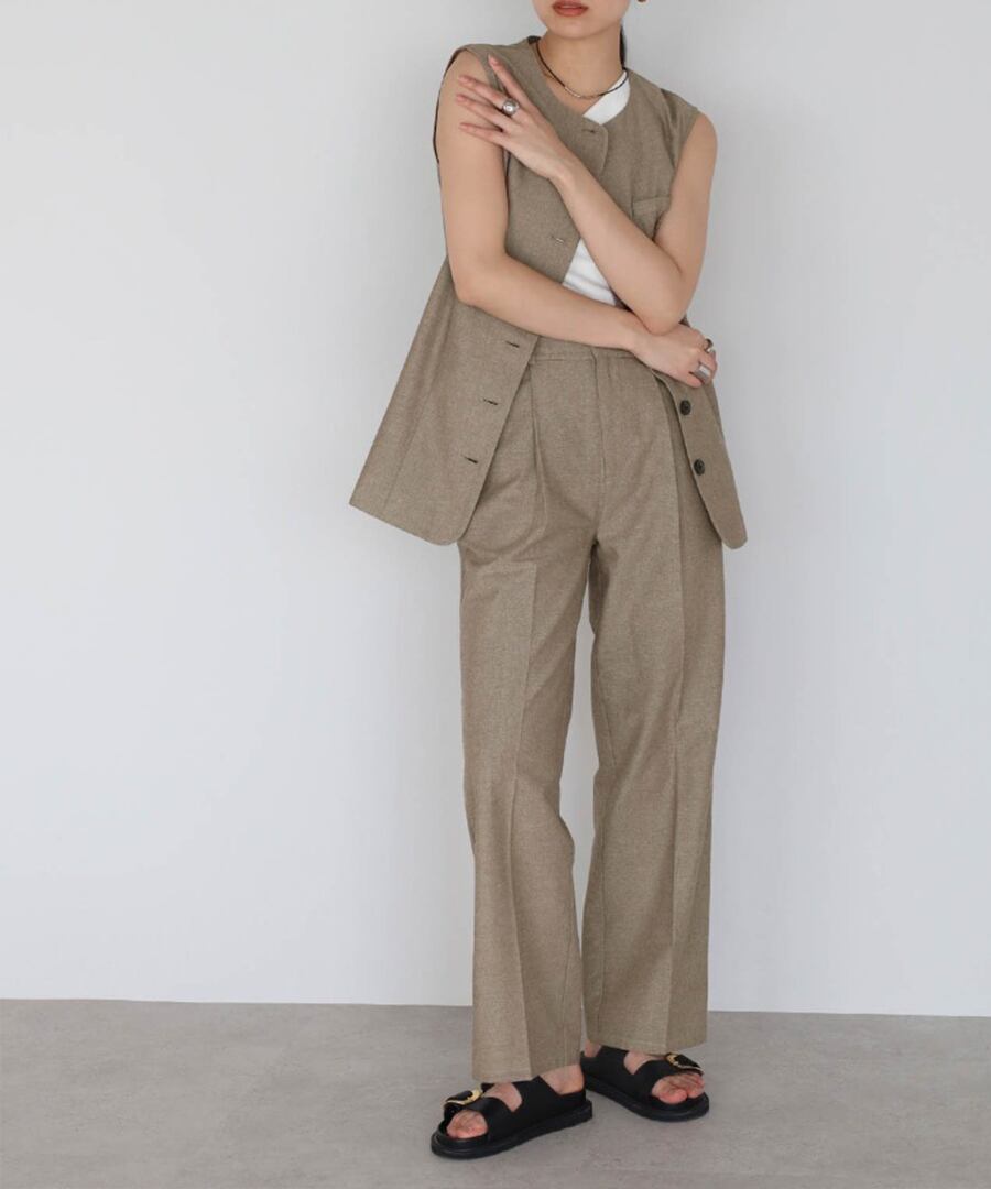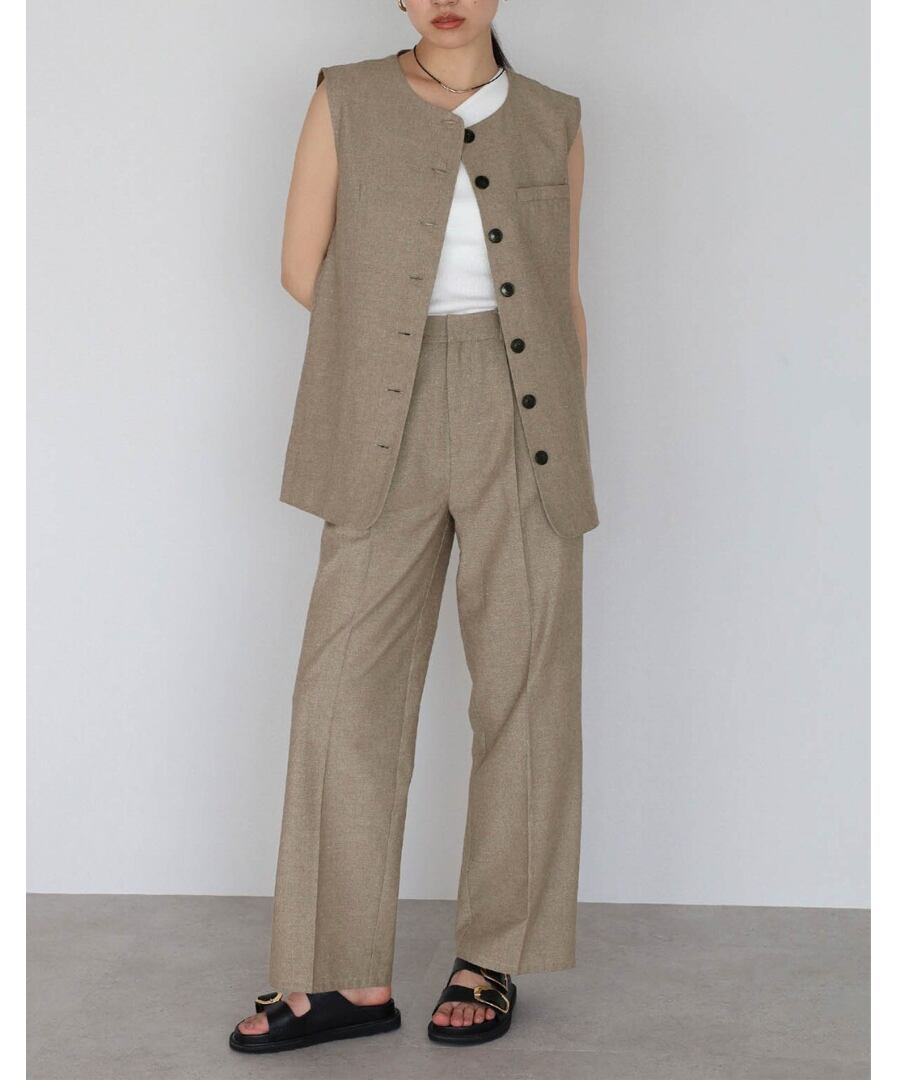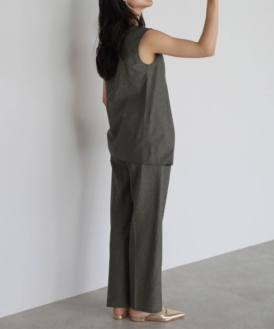 リネン混ロングベスト×パンツセットアップ【s-40138】.