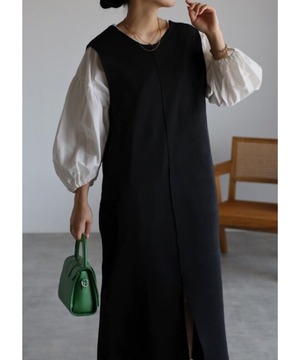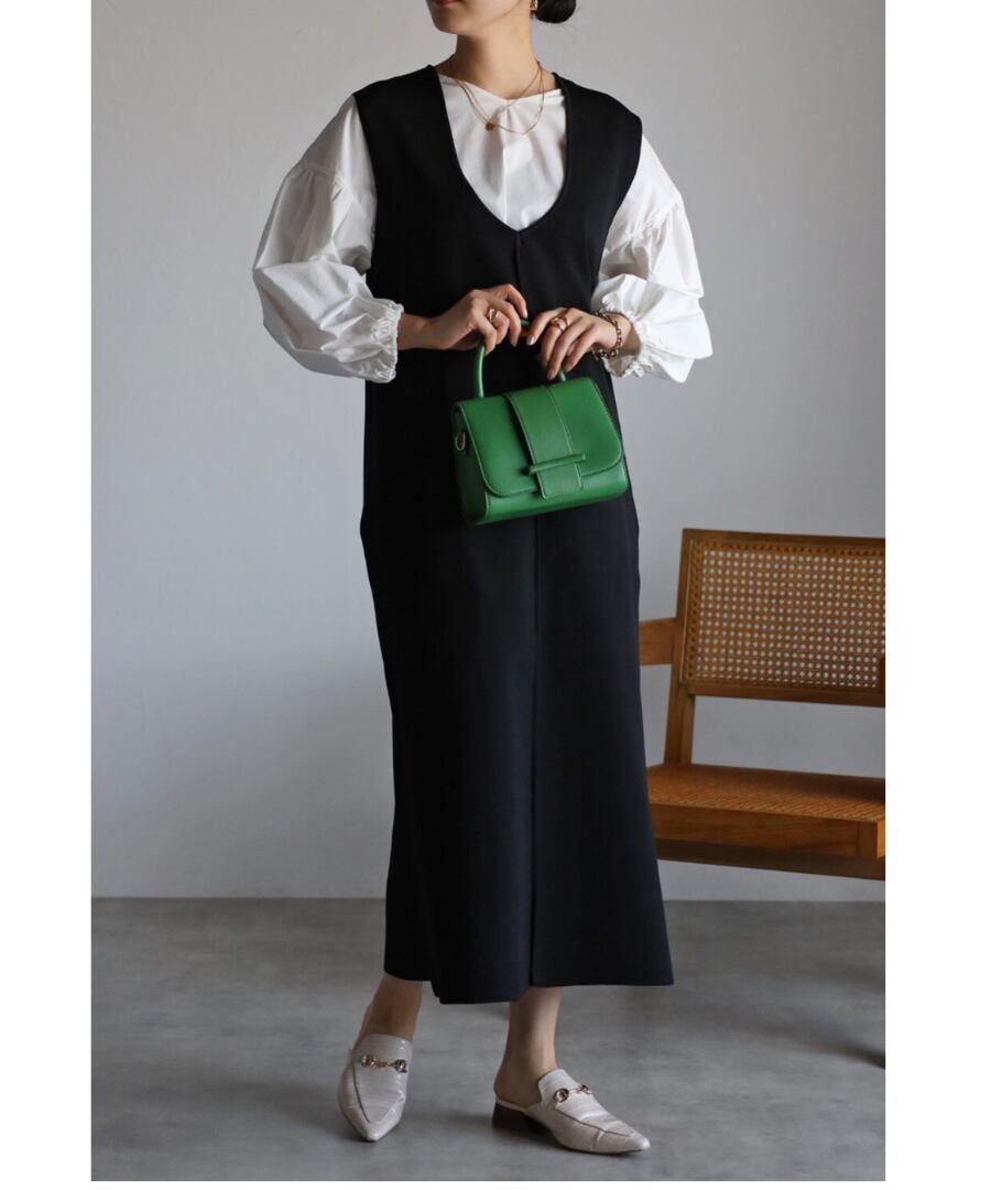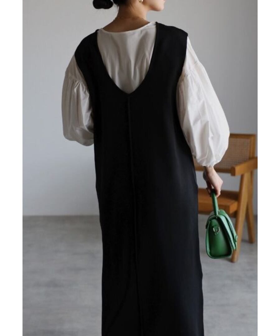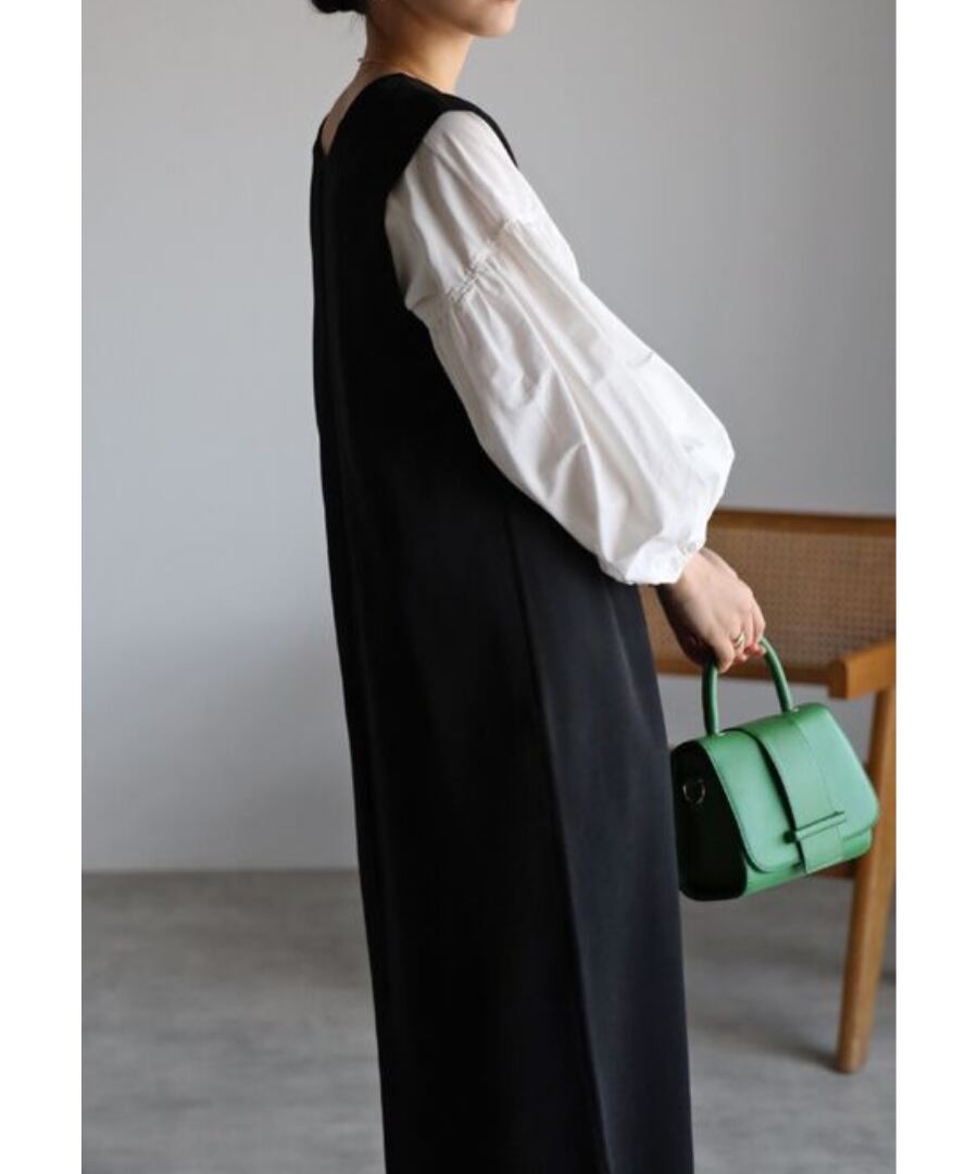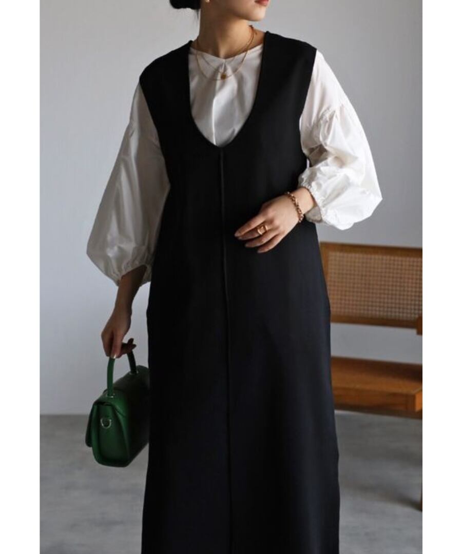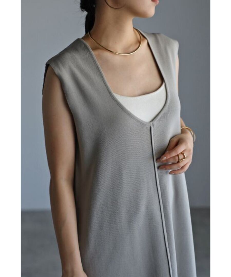 クルーネックと深Vネックの2通りのネックラインが楽しめるワンピース。