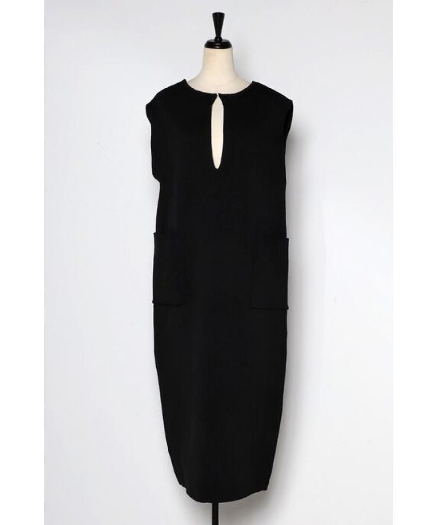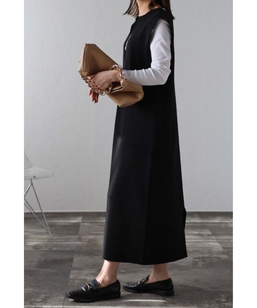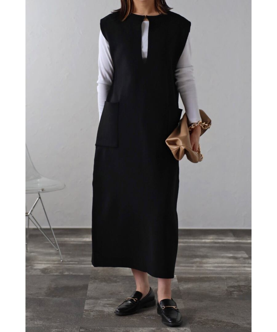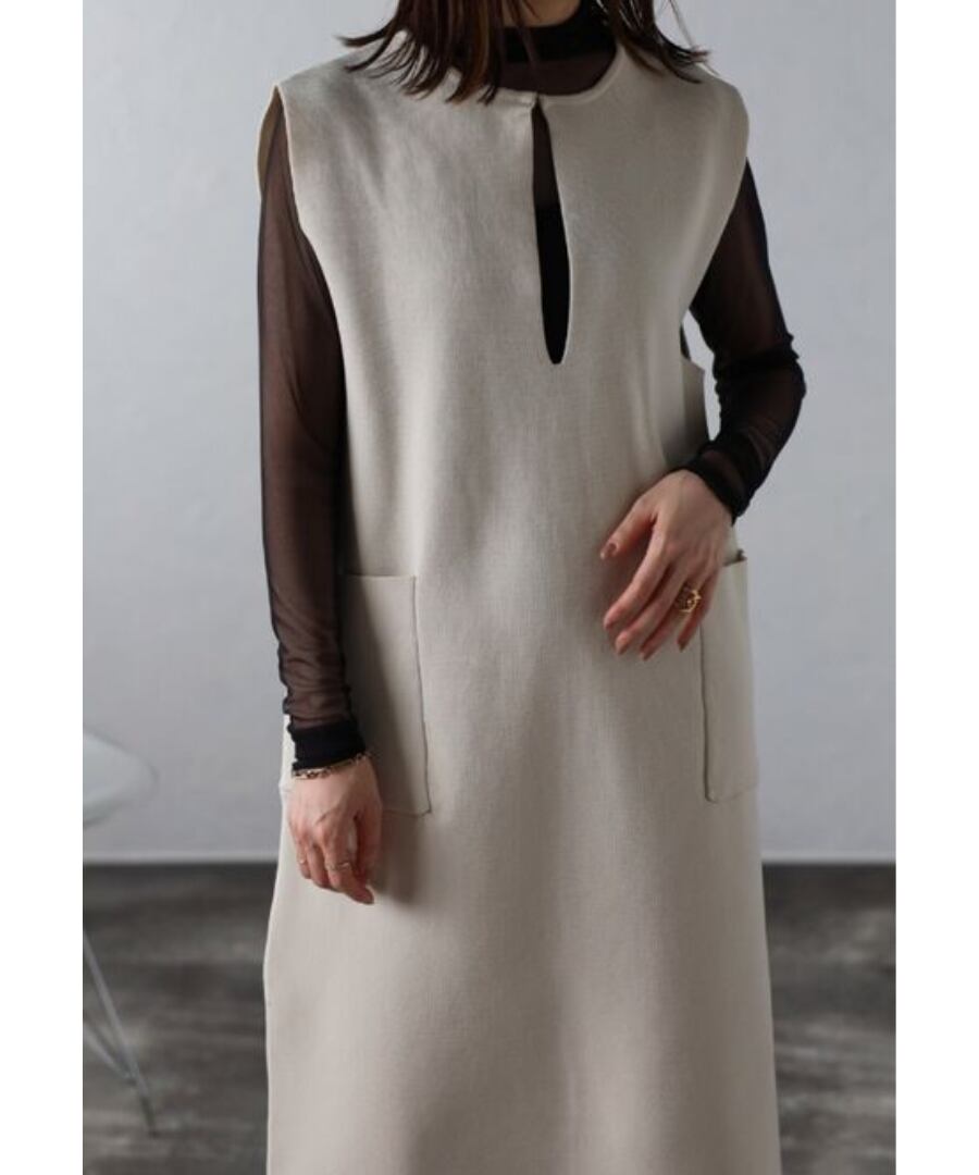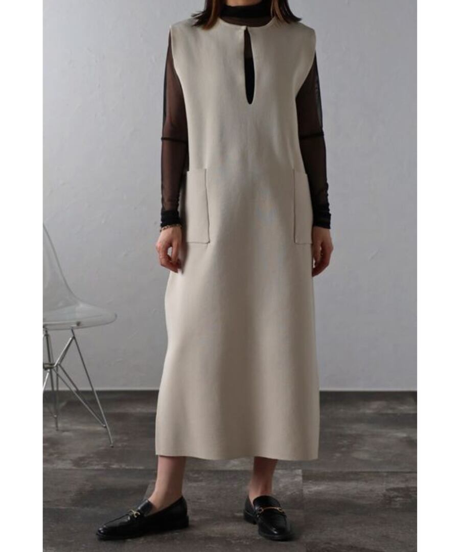旬なレイヤードスタイルに最適な、キーネックデザインのニットワンピース。