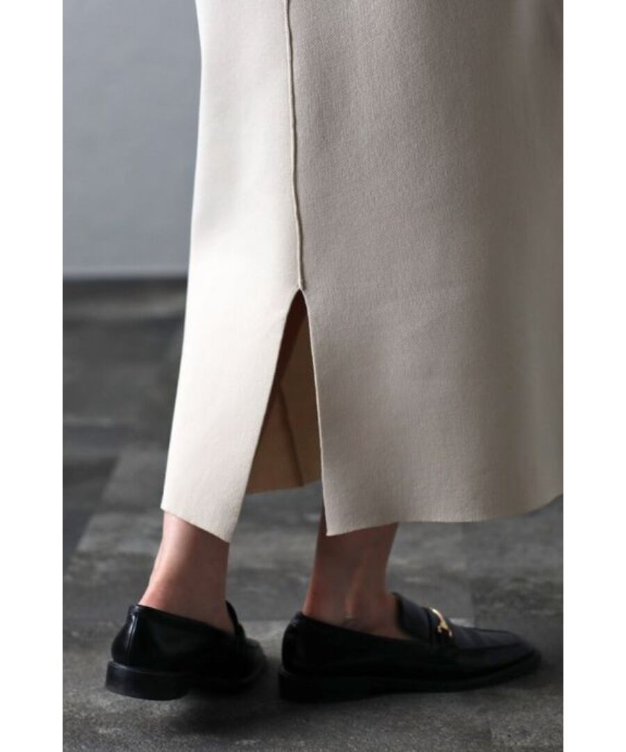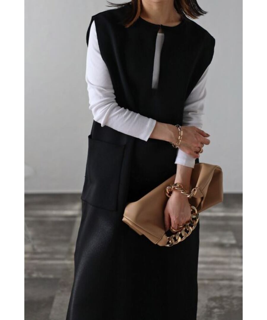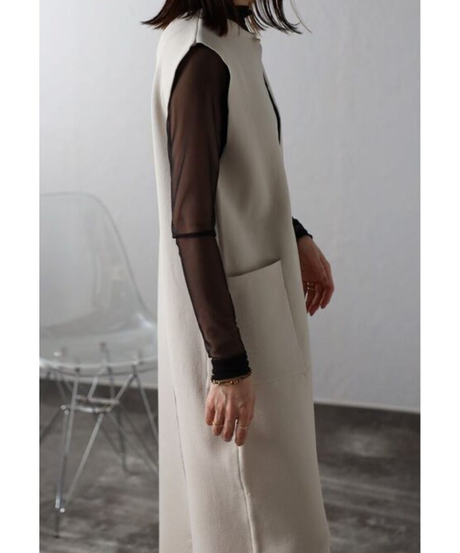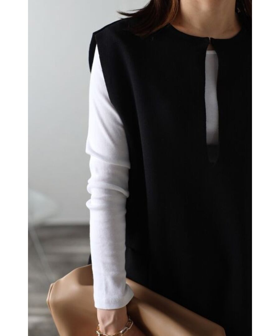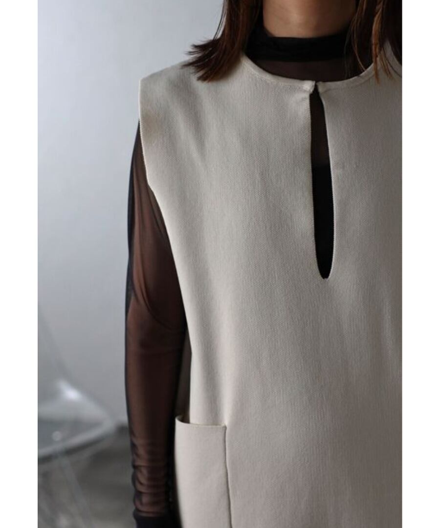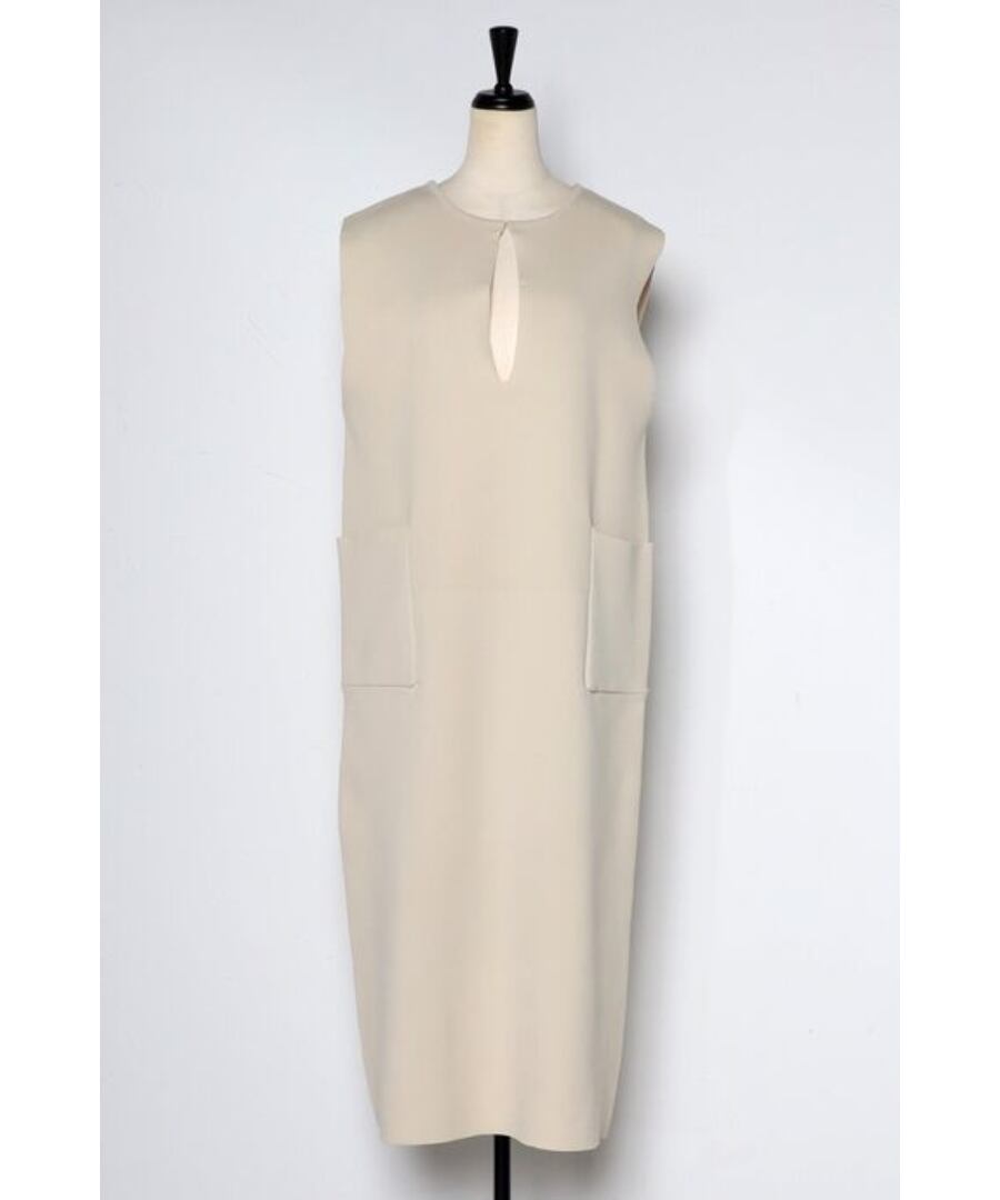 旬なレイヤードスタイルに最適な、キーネックデザインのニットワンピース。