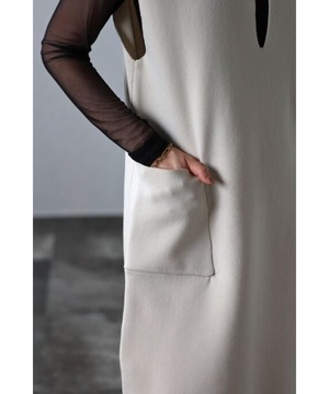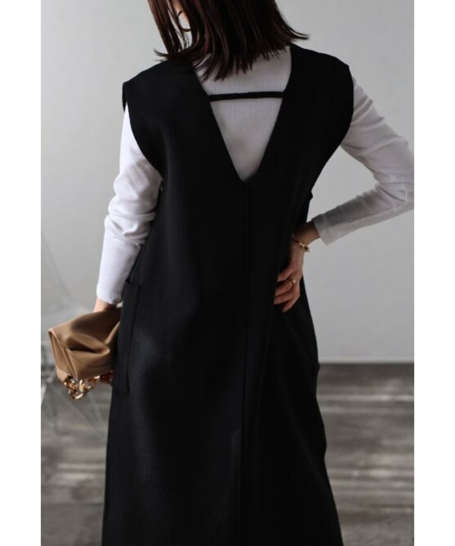 フロントのスキッパーネックにはホックがあり、バックのオープンデザインもトレンドライクなディテール。