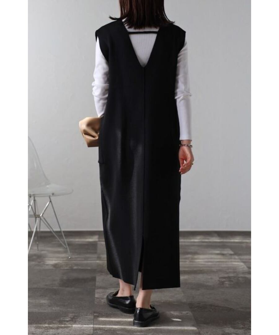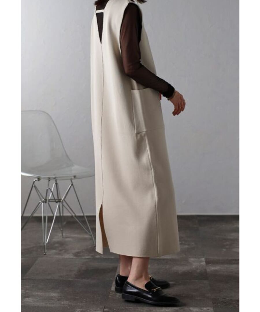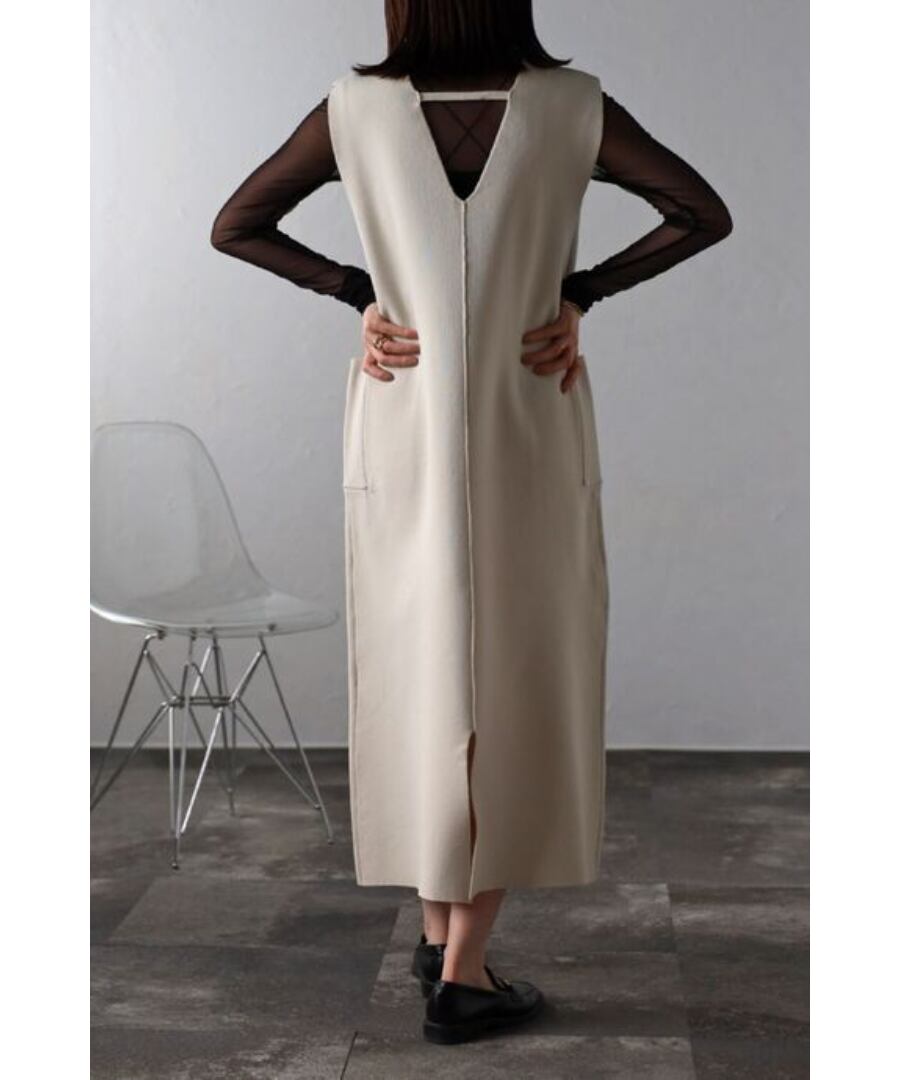 ディープキーネックが大人なこなれた雰囲気のニットVネックワンピース
