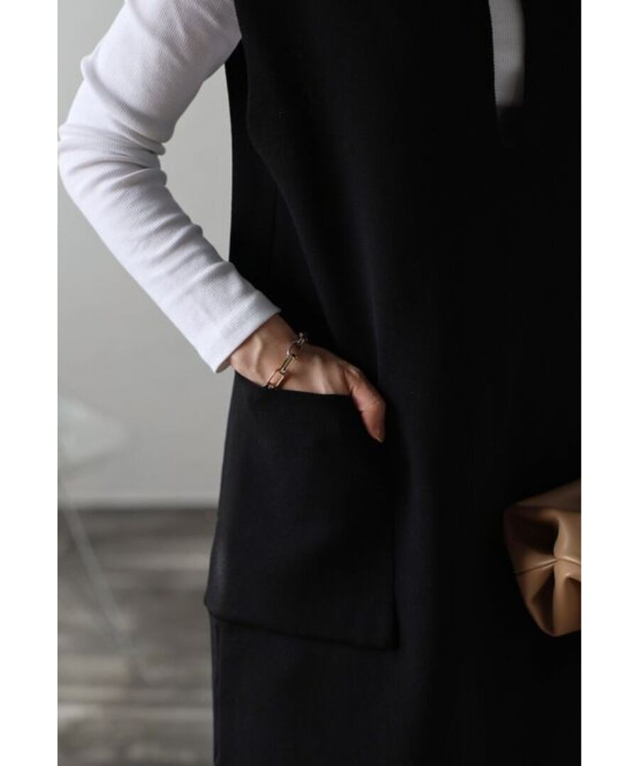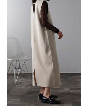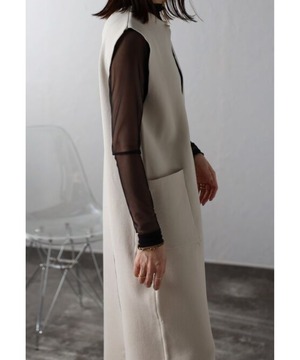 ディープキーネックダンボールニットロングベスト【w-30300】.