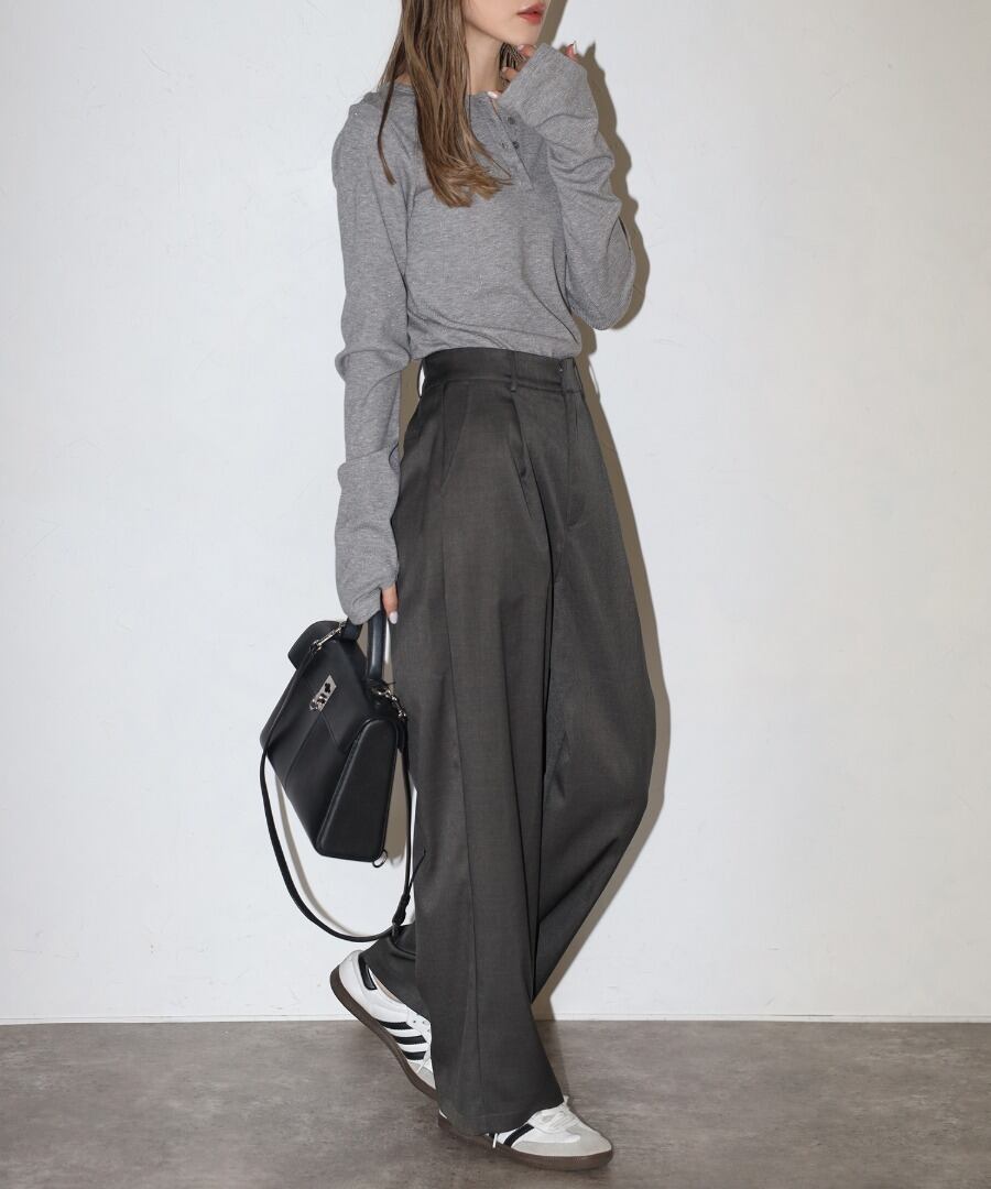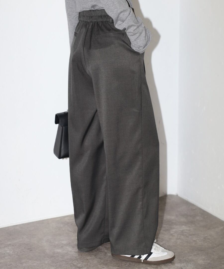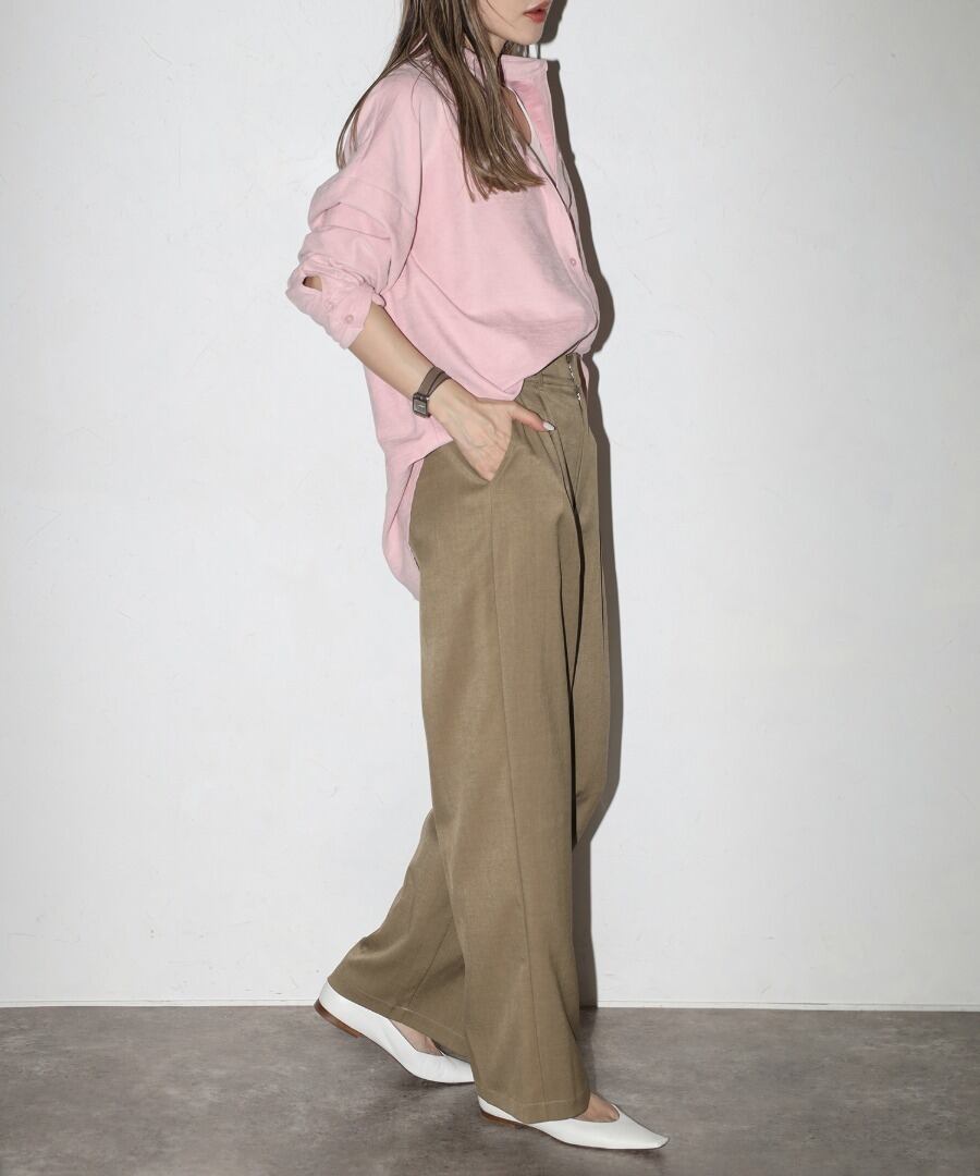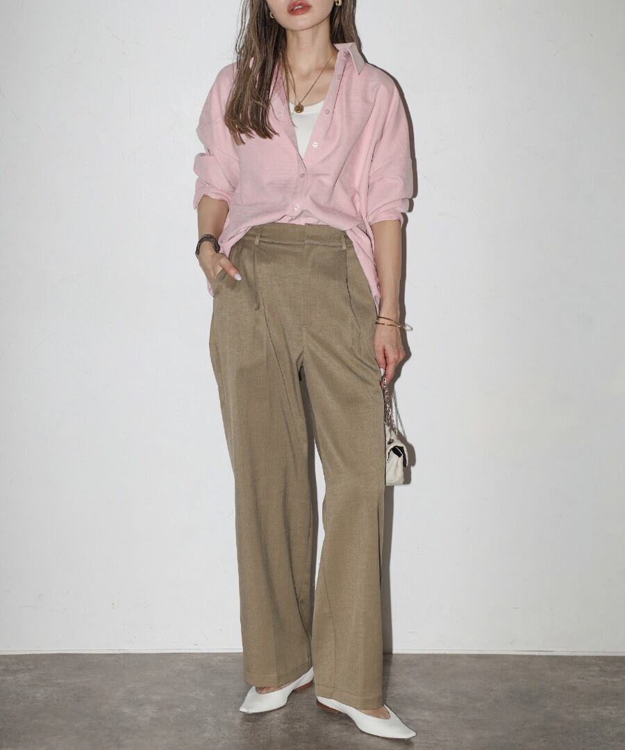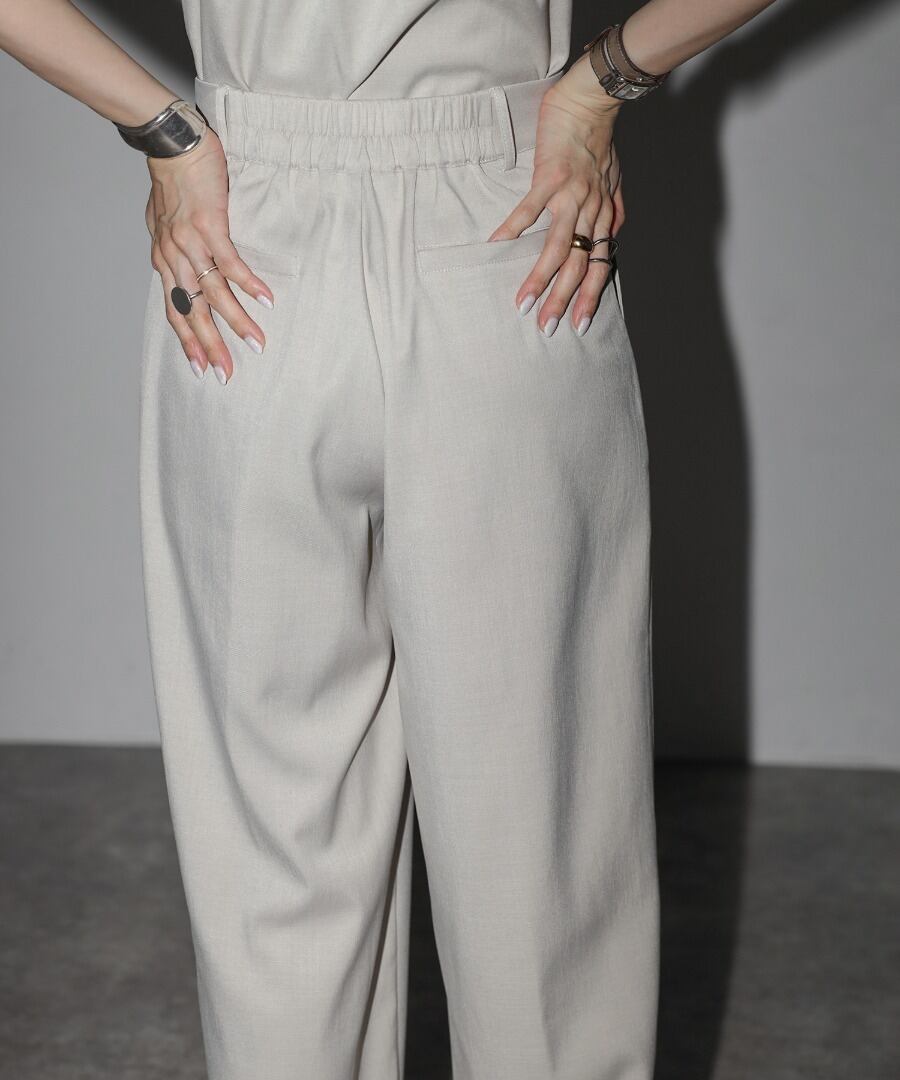 ウエスト部分にはタックを施し、リラックス感と上品さを兼ね備えた一枚です。