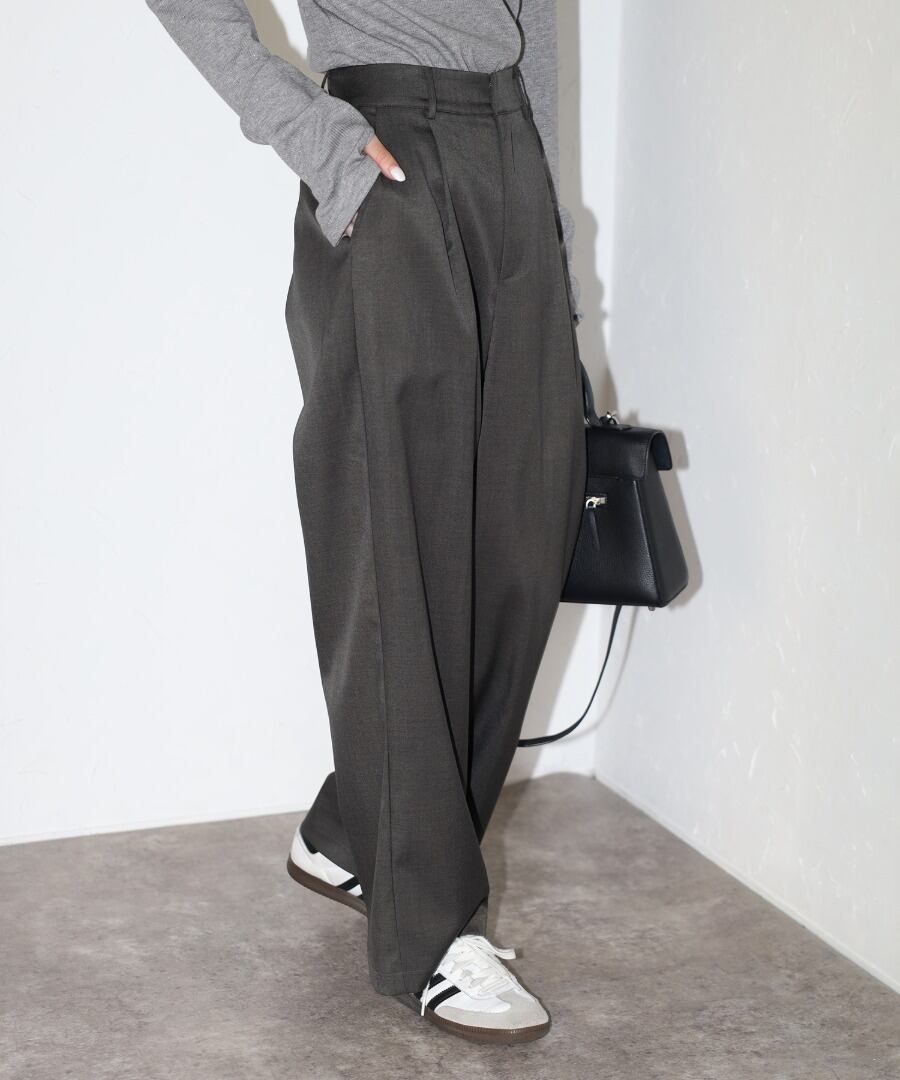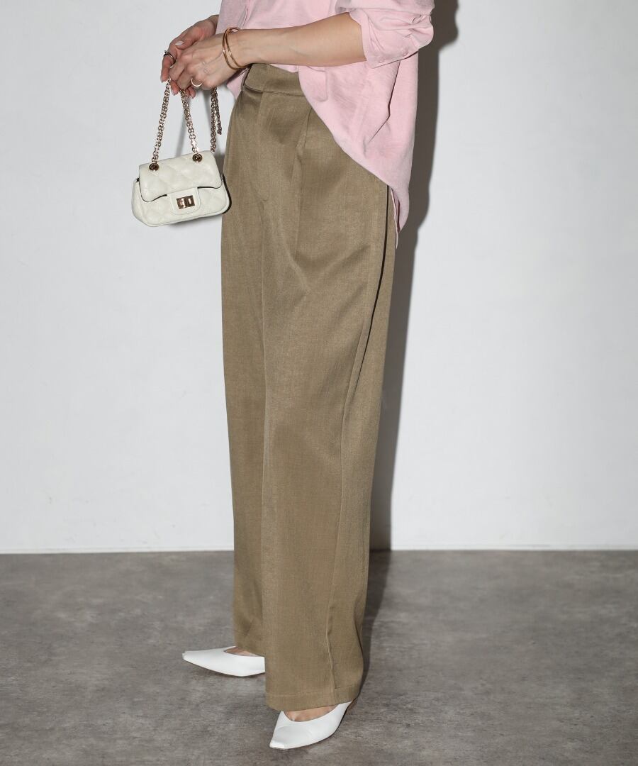 エレガントなシルエットが特徴のワイドスラックス。