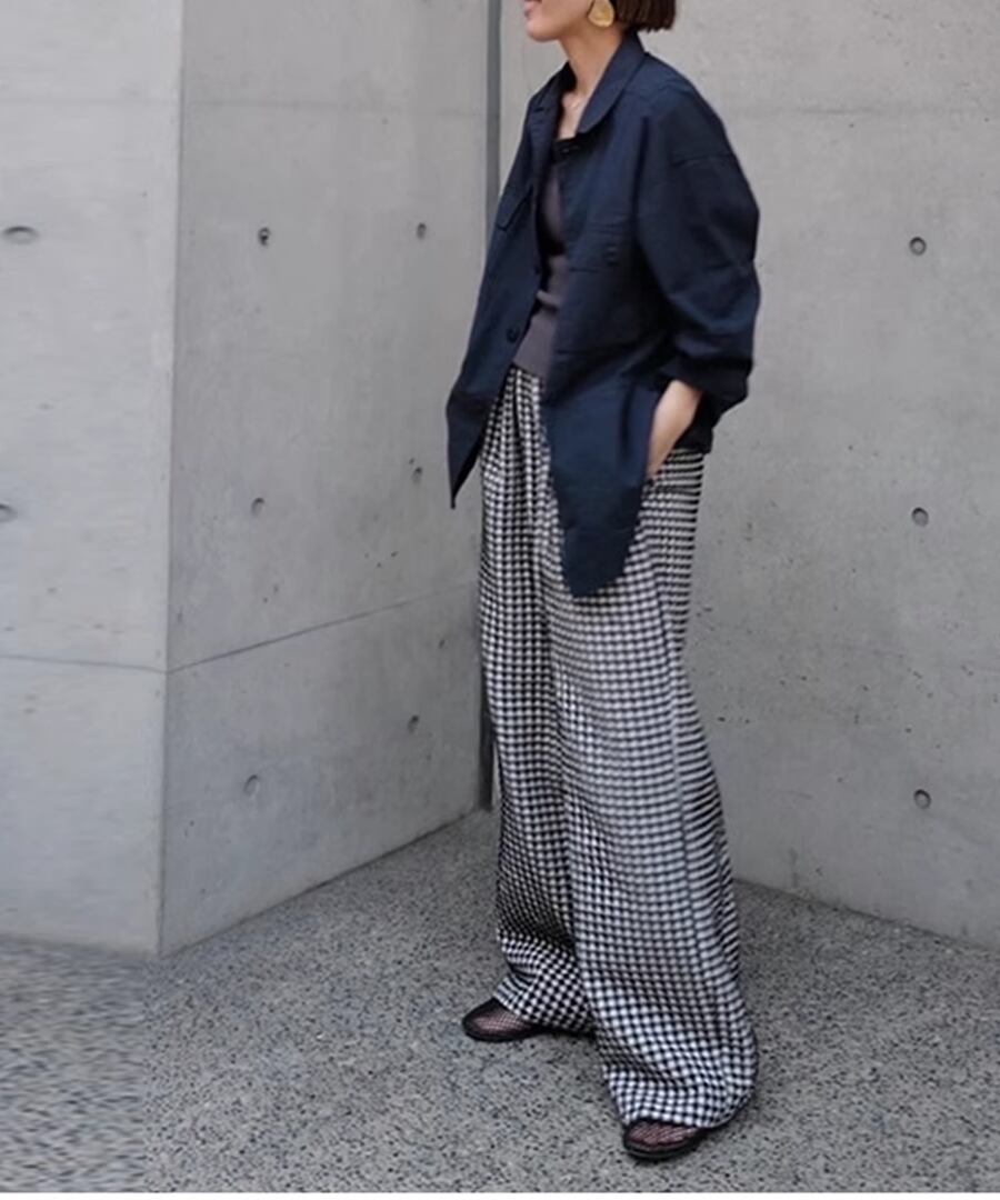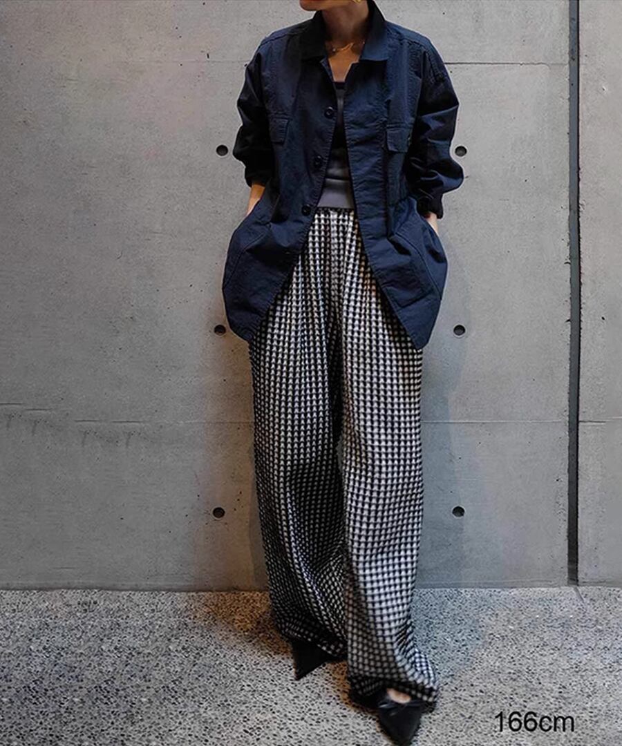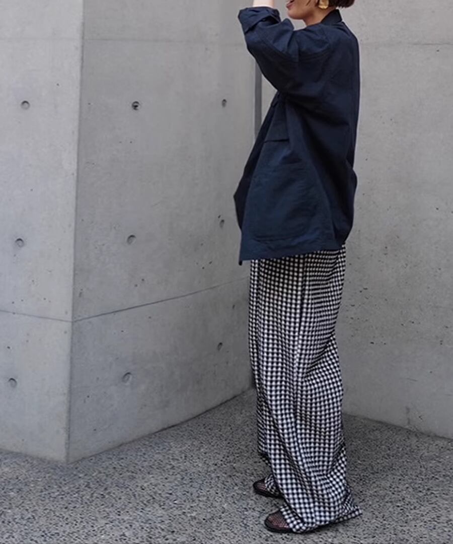 ワイドレッグのシルエットが流行を押さえつつ、リラックス感も併せ持つデザインです。