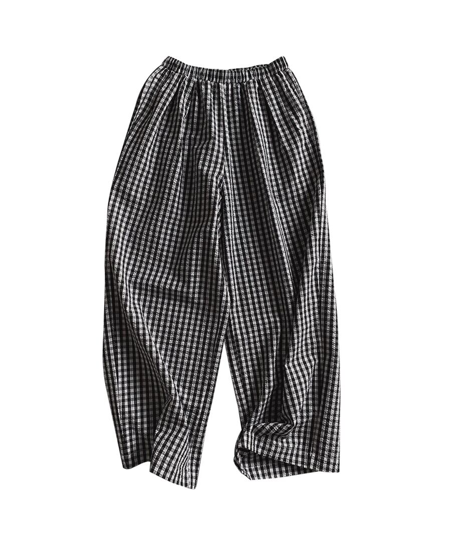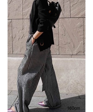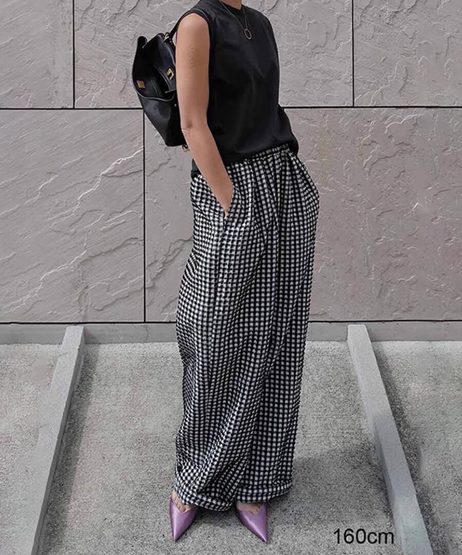 チェック柄◆ハイウエストワイドレッグパンツ【p-20071】