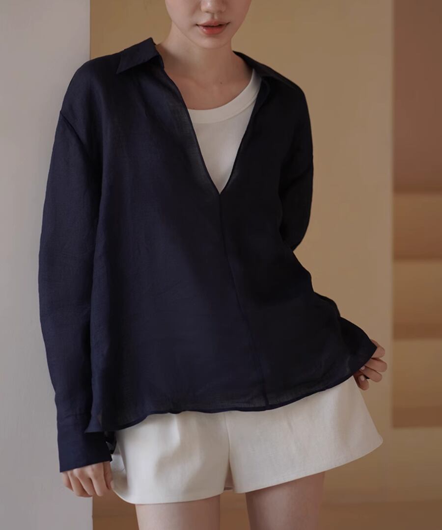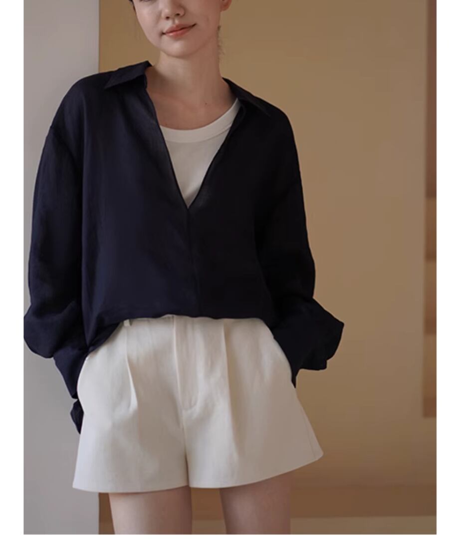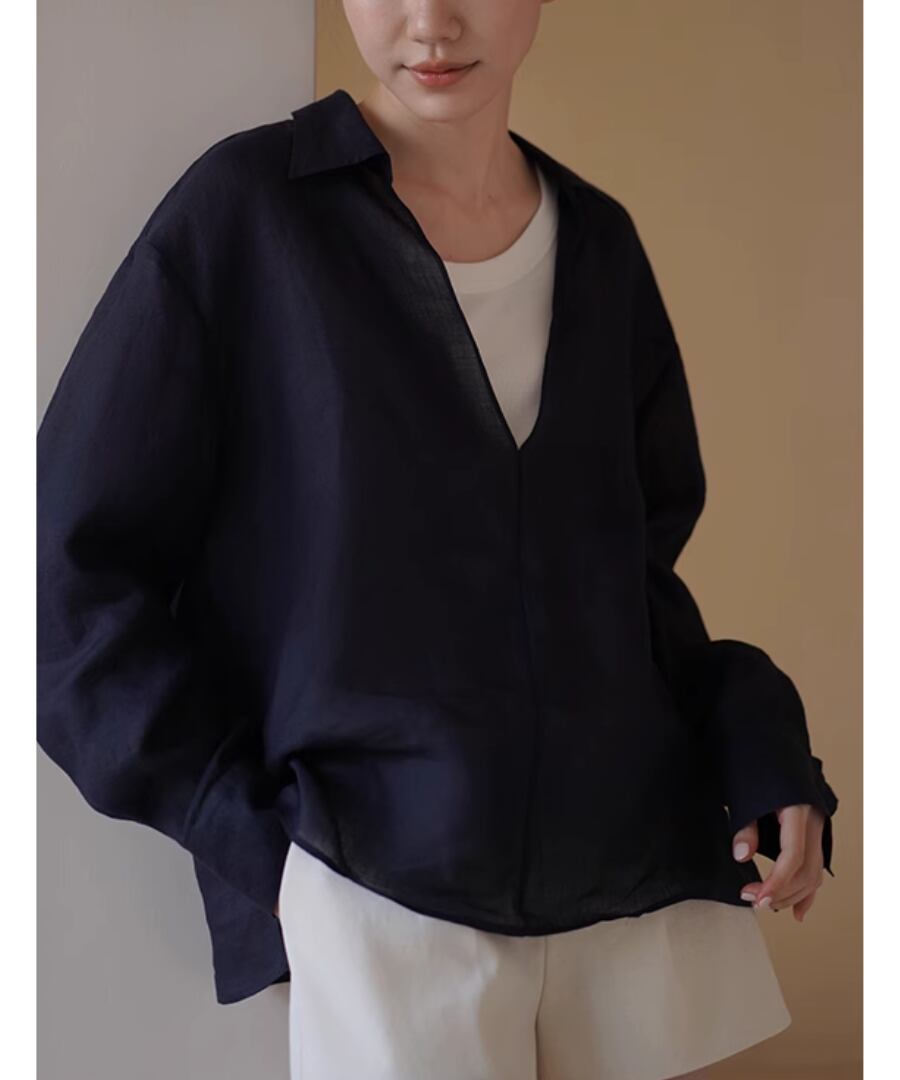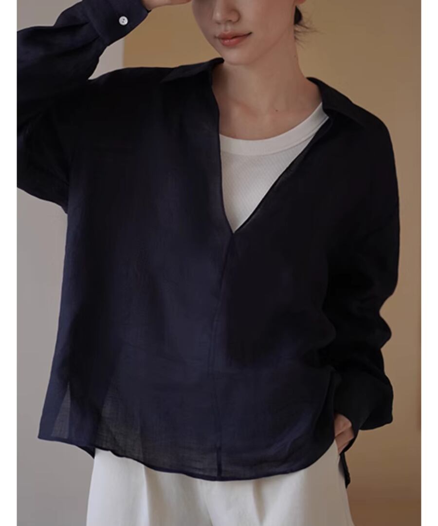 ラミー100%◆ゆったりプルオーバーシャツ【t-10311】