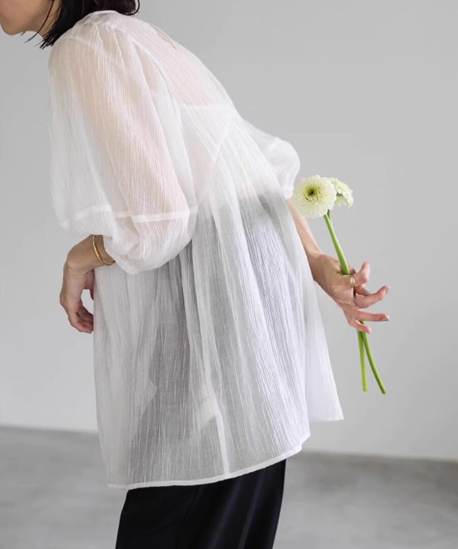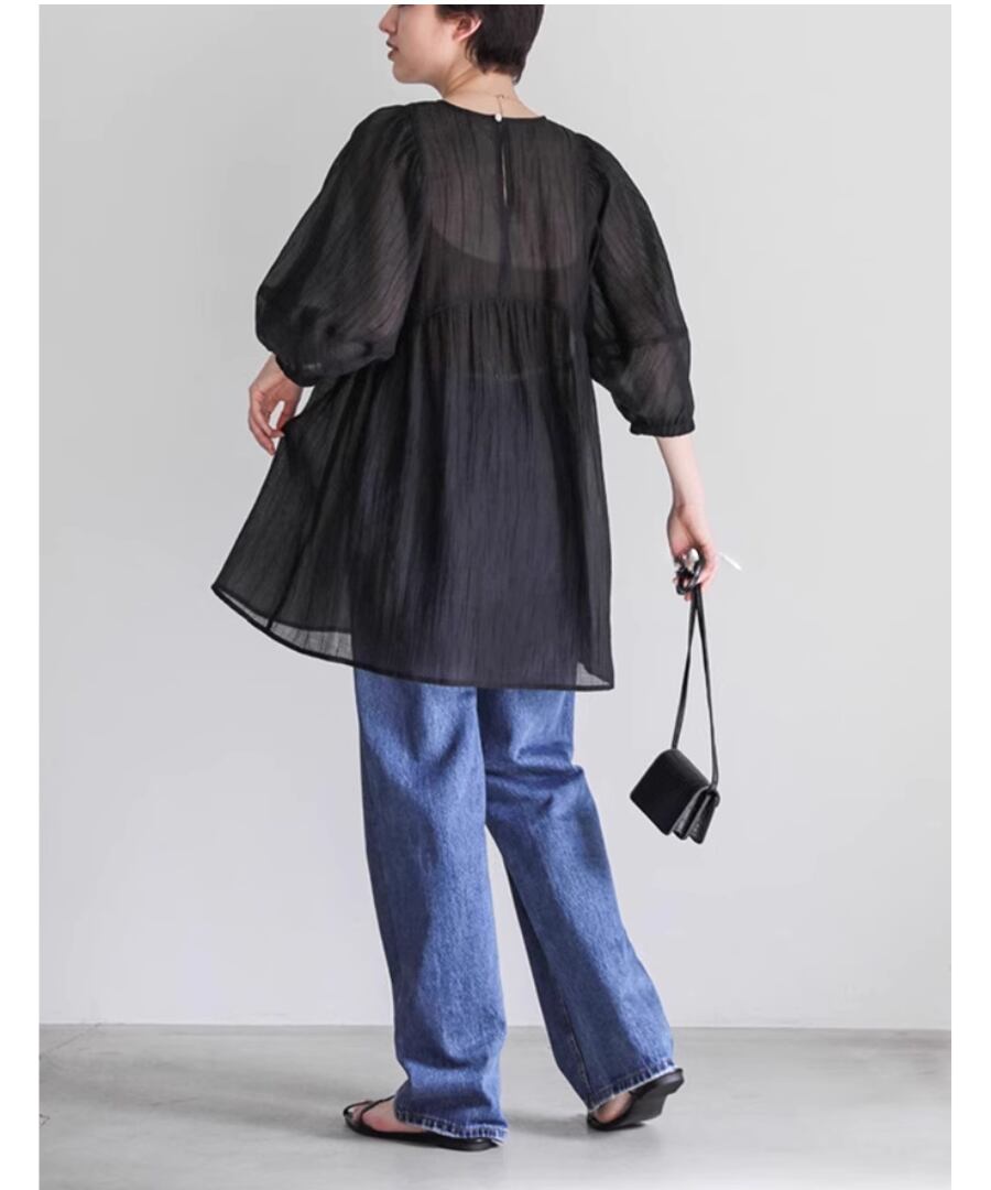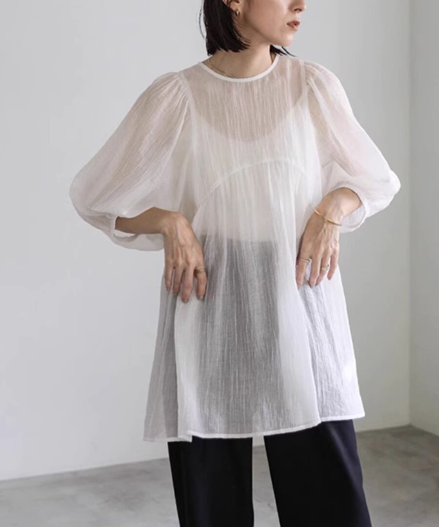 ランタンスリーブ◆シアーブラウス【t-10539】